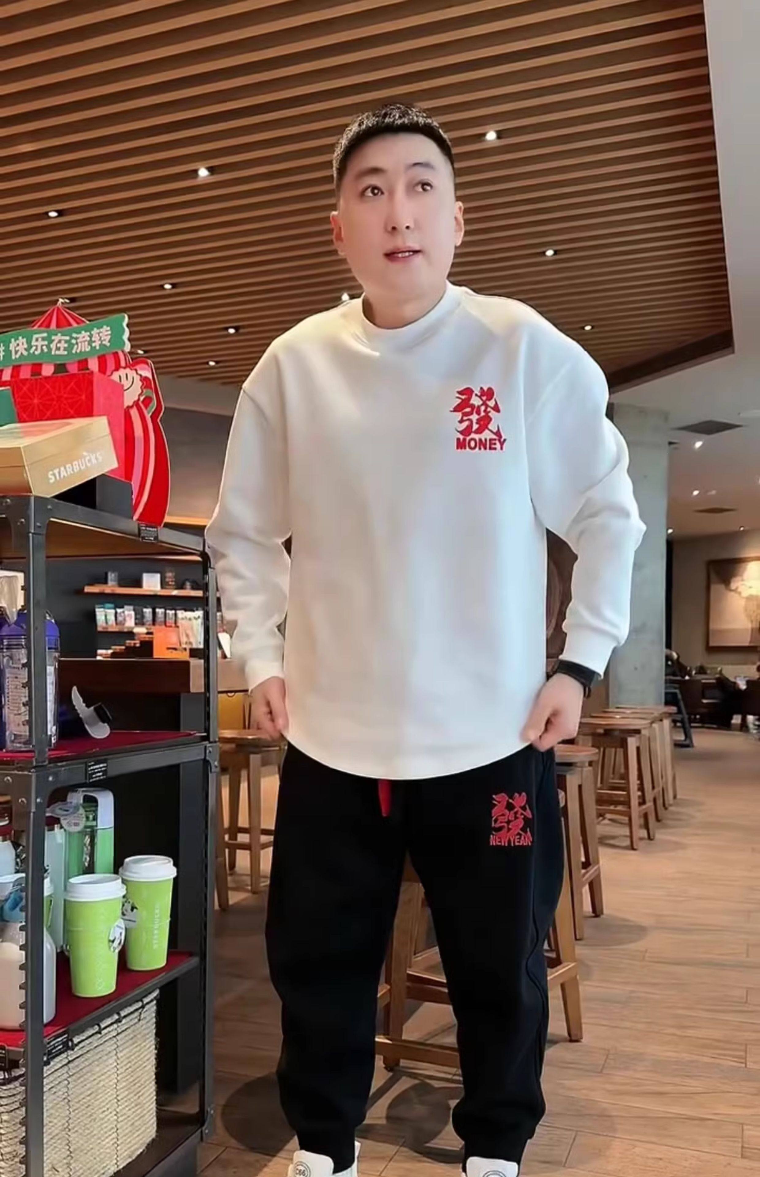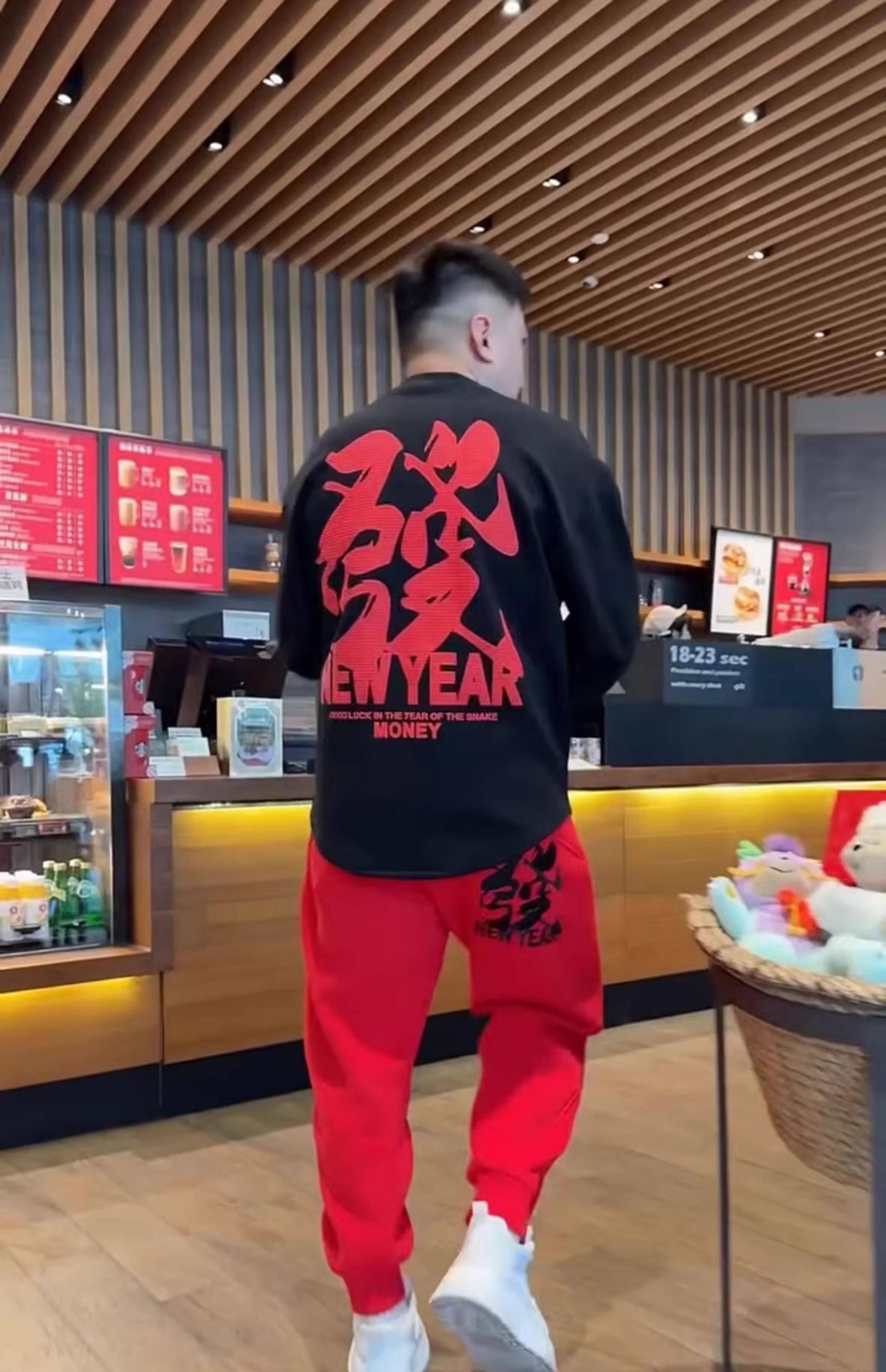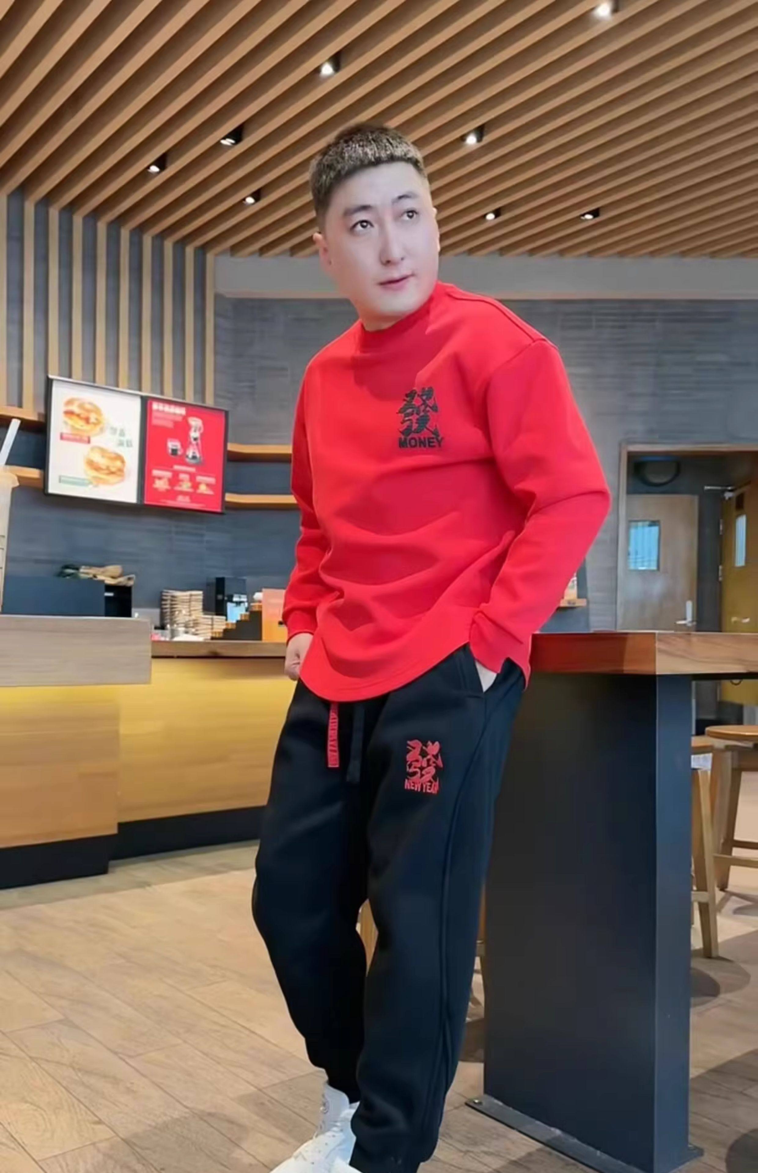 冬季國潮新年發財刺綉休閒套裝男高級帥氣情侶衛衣衛褲運動兩件套