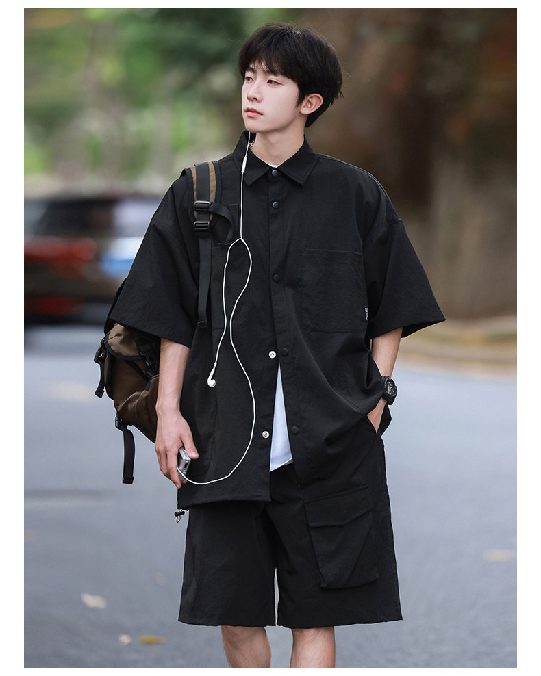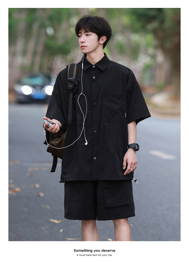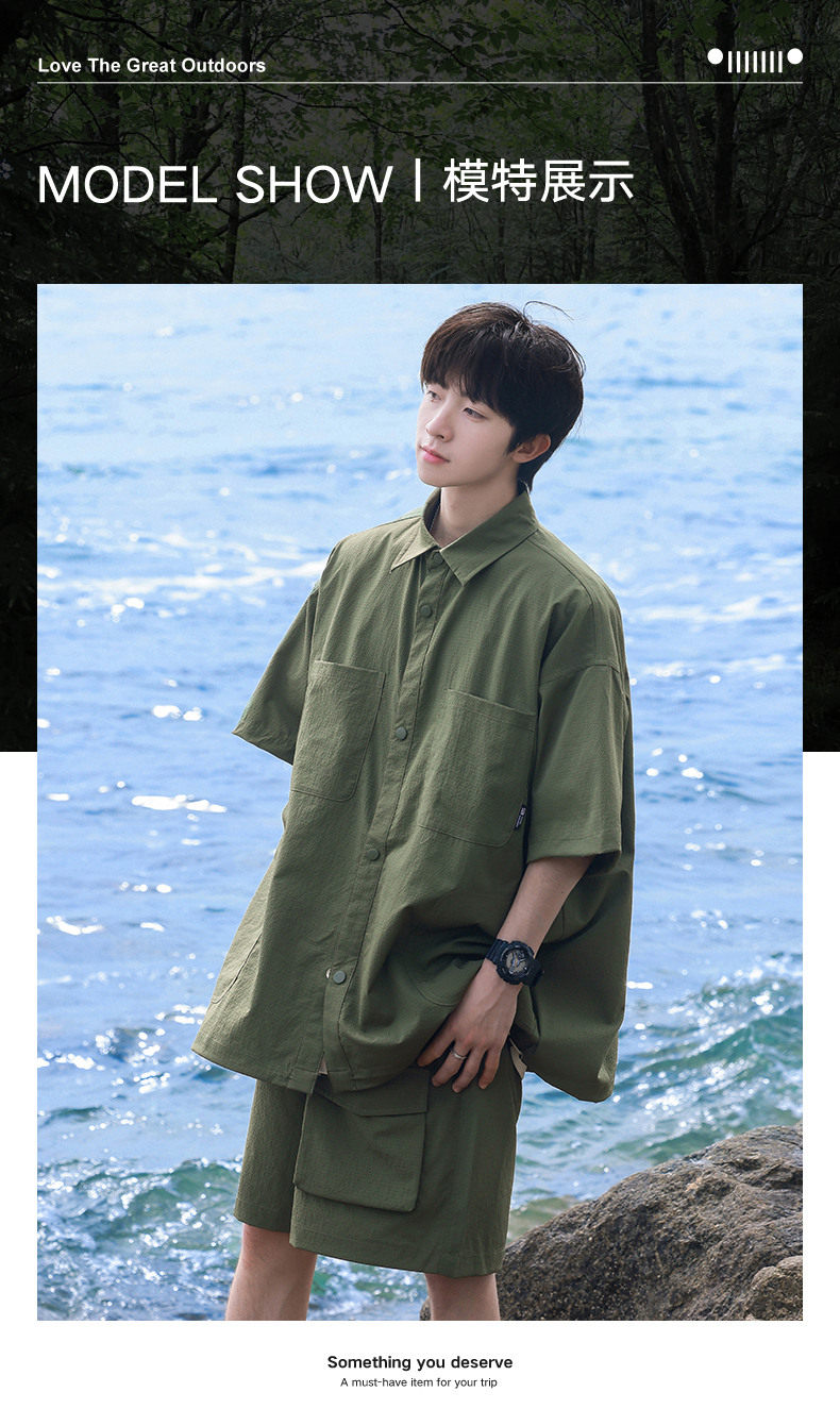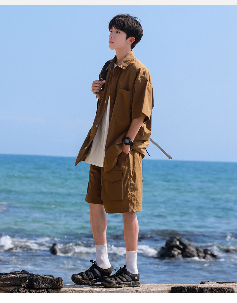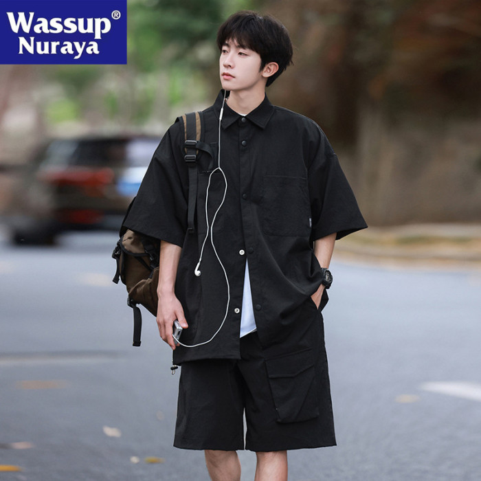 WASSUP NURAYA短袖工裝襯衫男日系夏季寬鬆短褲休閒襯衣兩件套裝
