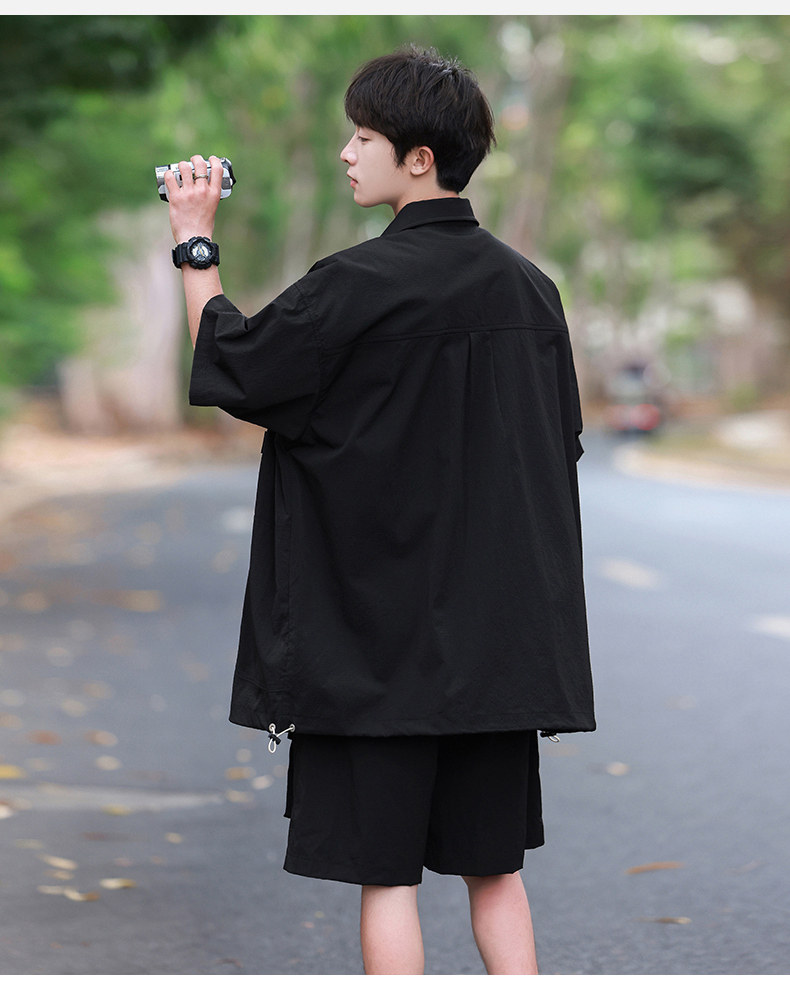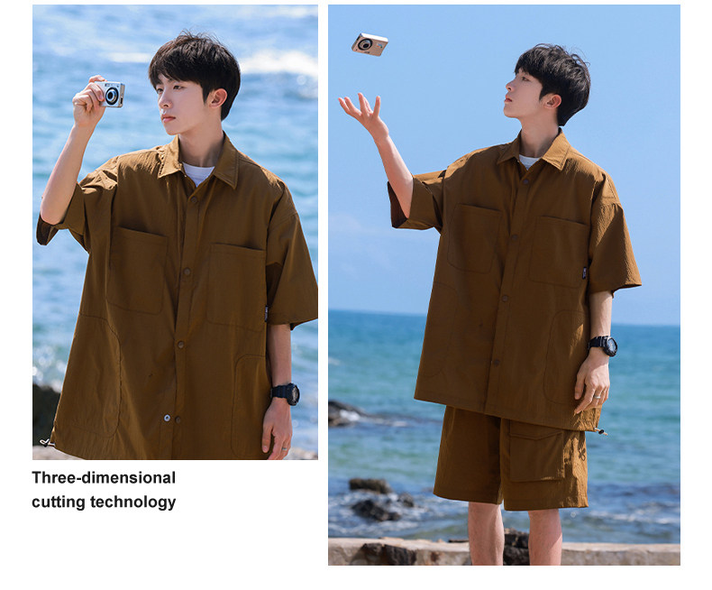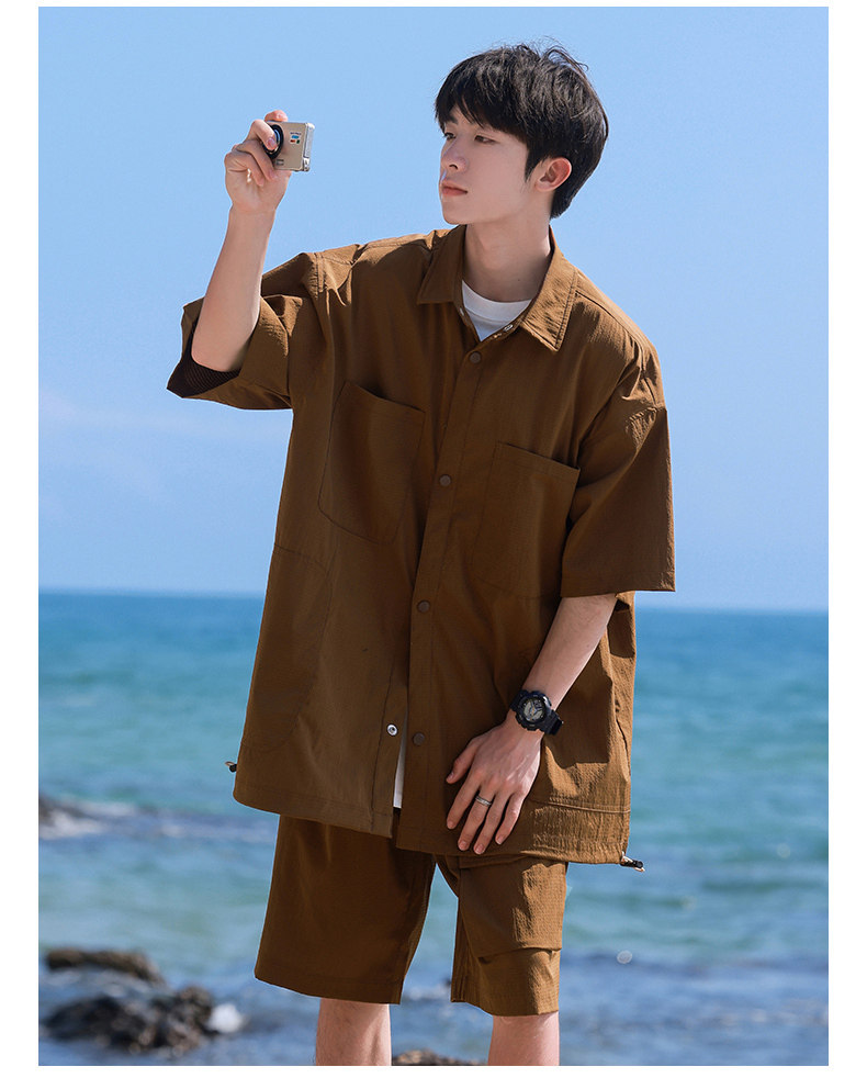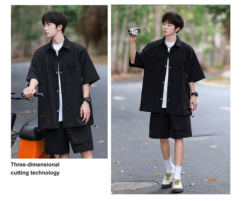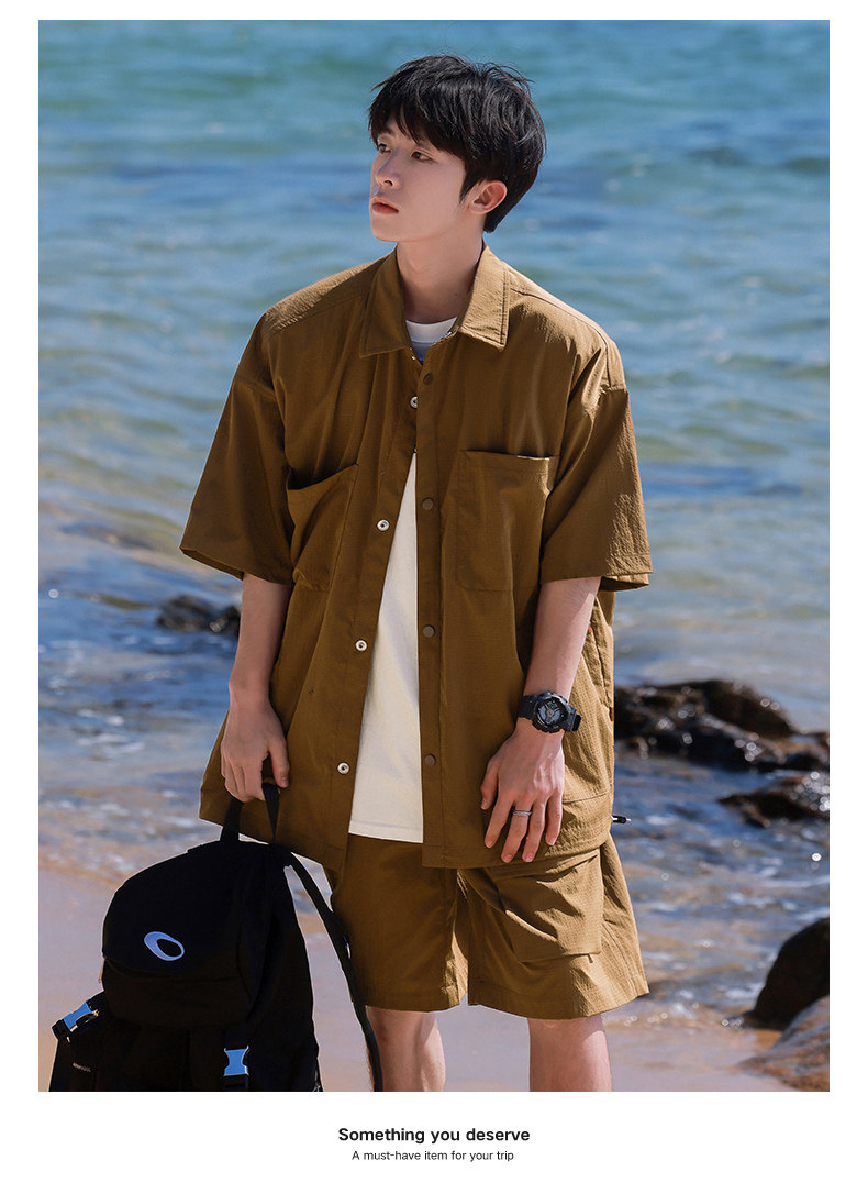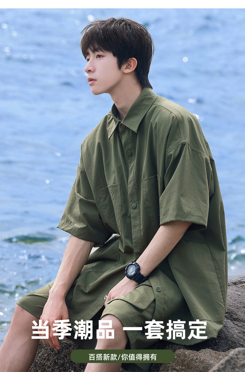 WASSUP NURAYA短袖工裝襯衫男日系夏季寬鬆短褲休閒襯衣兩件套裝