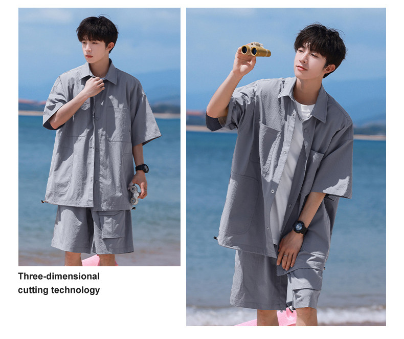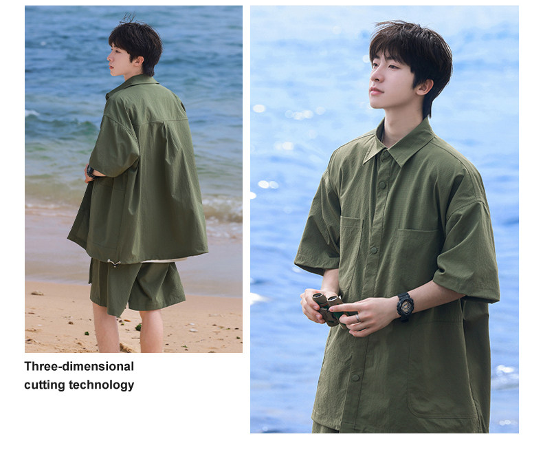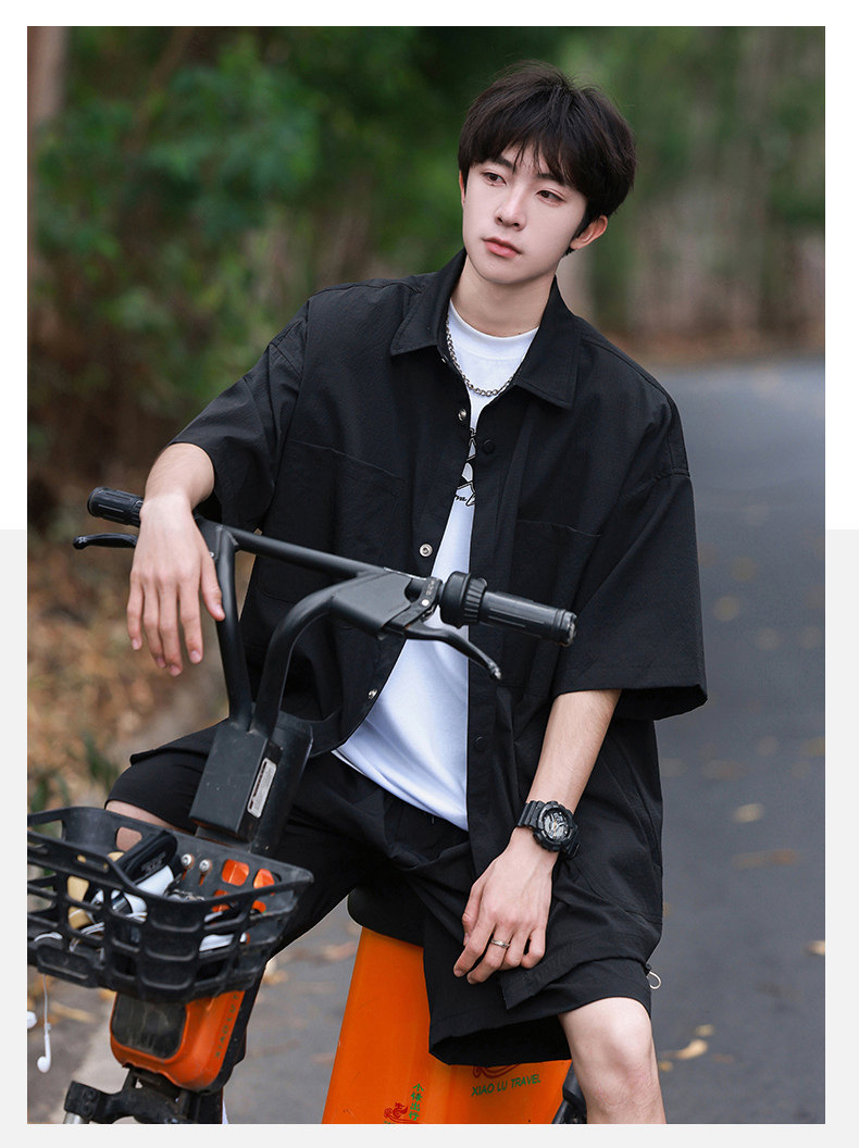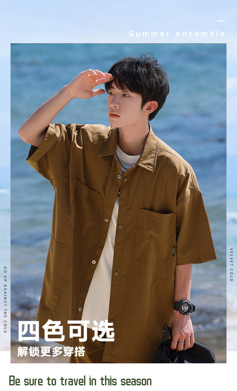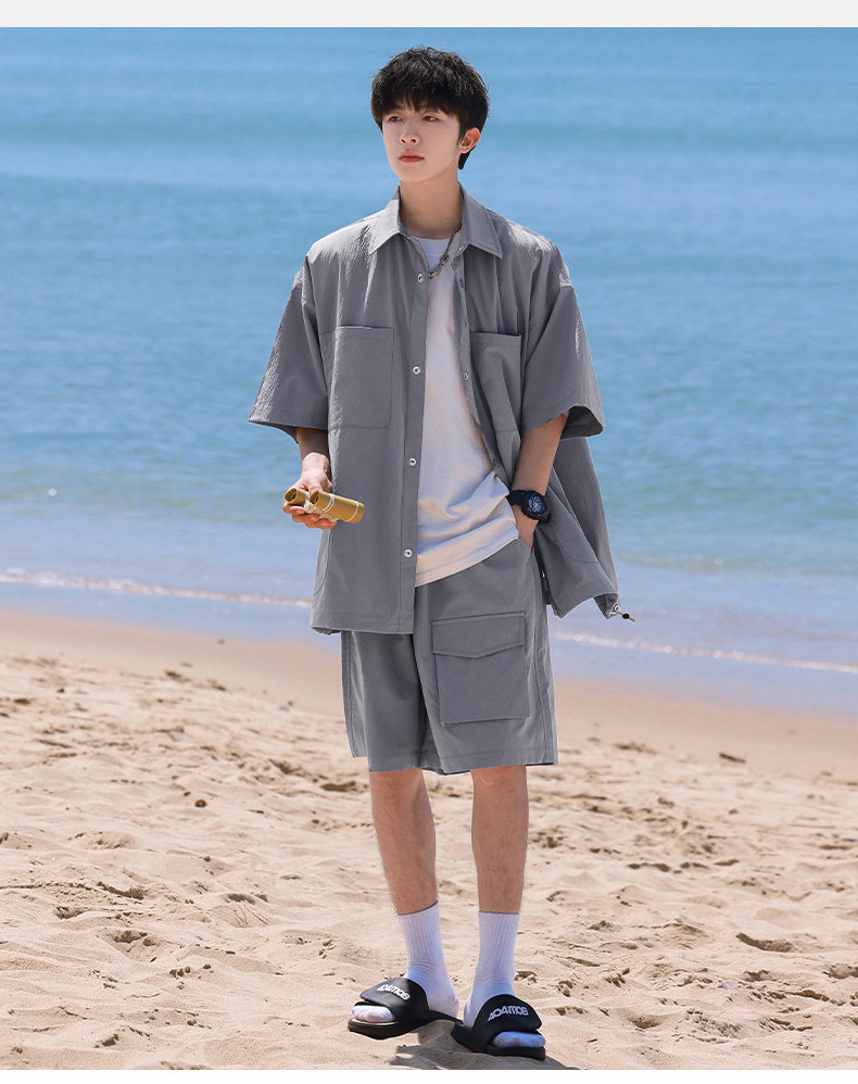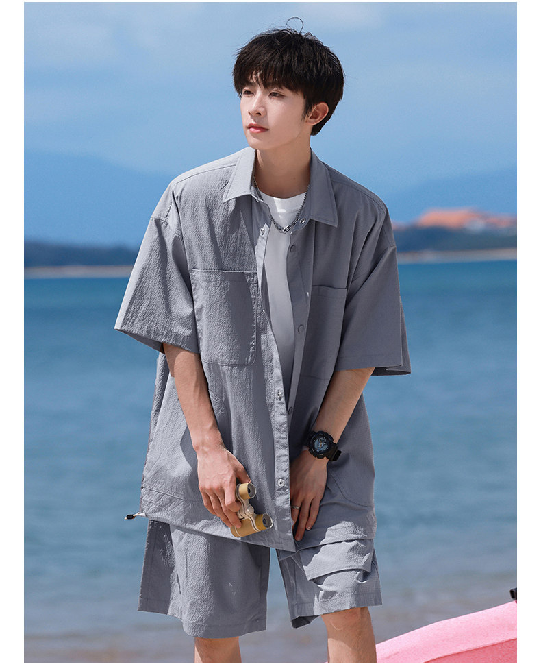 WASSUP NURAYA短袖工裝襯衫男日系夏季寬鬆短褲休閒襯衣兩件套裝