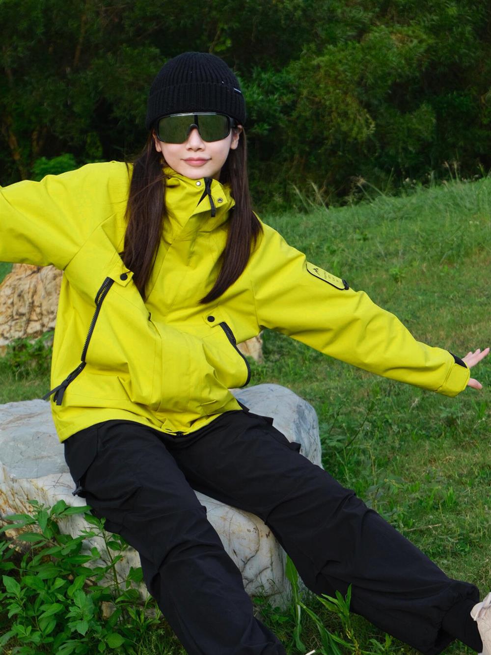 稻草人戶外螢光綠沖鋒衣女款薄款外套三合一可拆卸防風防水登山服