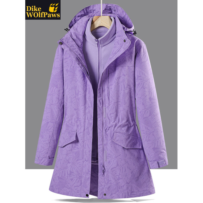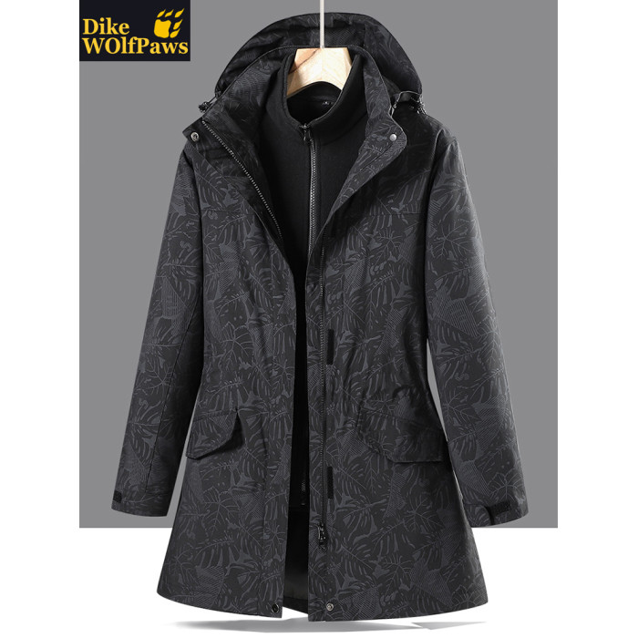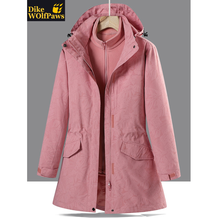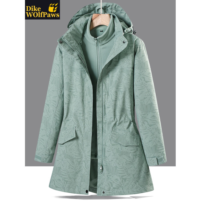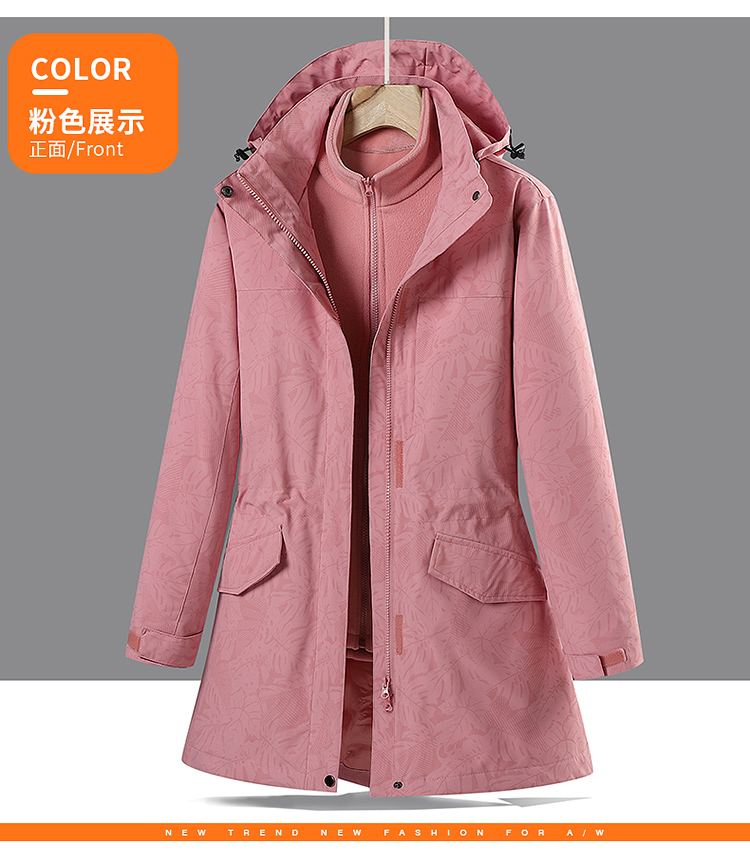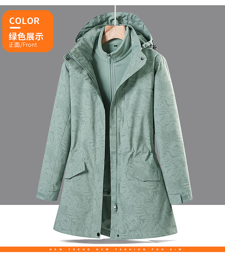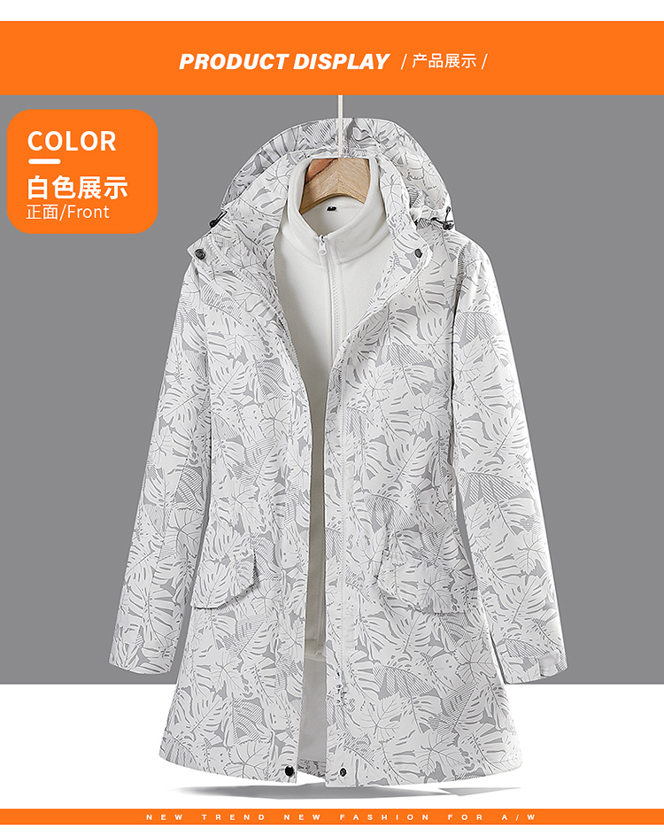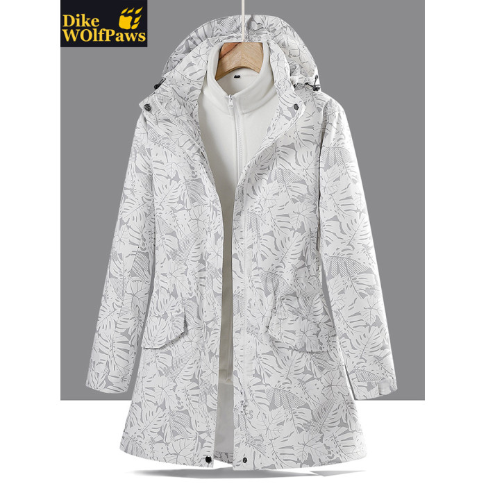 戶外中長款沖鋒衣女潮三合一可拆卸2025新款加絨加厚迷彩冬季外套