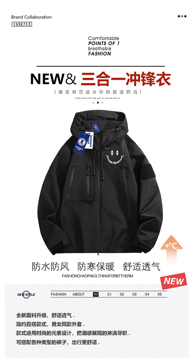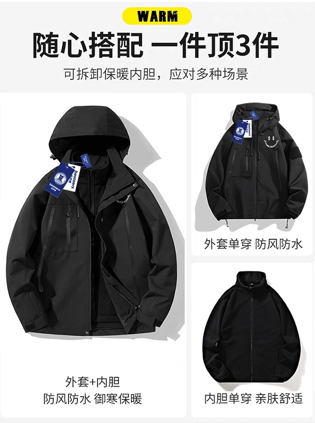 NASA聯名潮牌沖鋒衣男款秋冬季2025新款戶外三合一登山加厚外套女