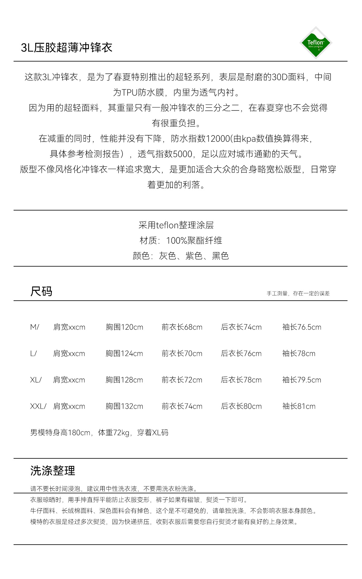 PRIMEWARE 超輕3L全壓膠防水硬殼三防面料防雨雪戶外沖鋒衣連帽