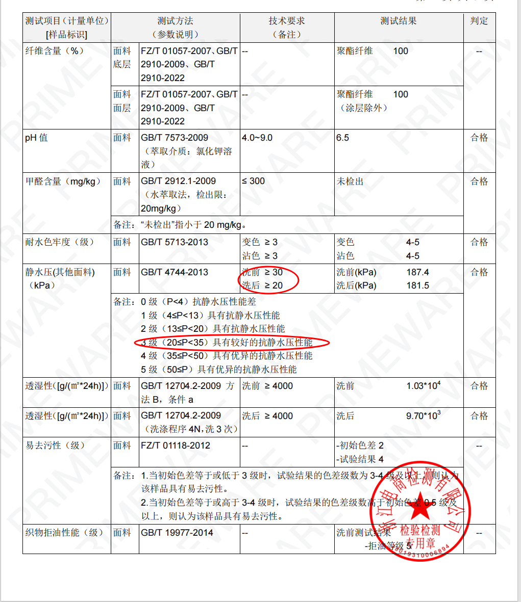 | 防水透氣指數 | 5001mm(含)-10000mm(含) |