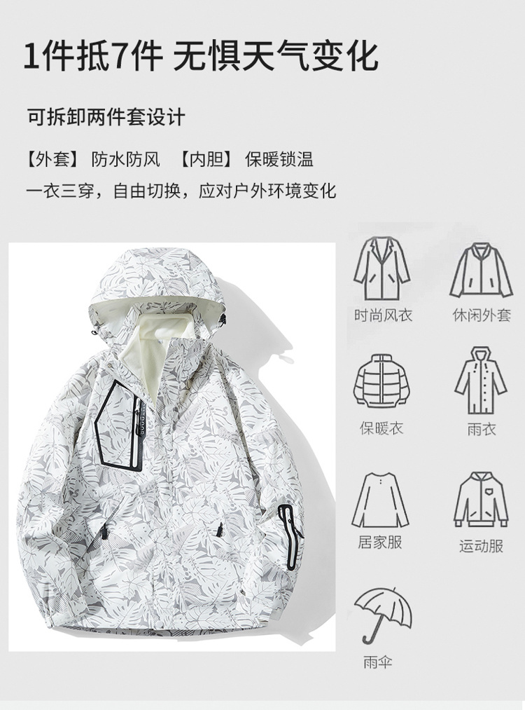 NASA男士沖鋒衣三合一加絨內膽可拆卸加肥加大碼男裝外套300斤8XL