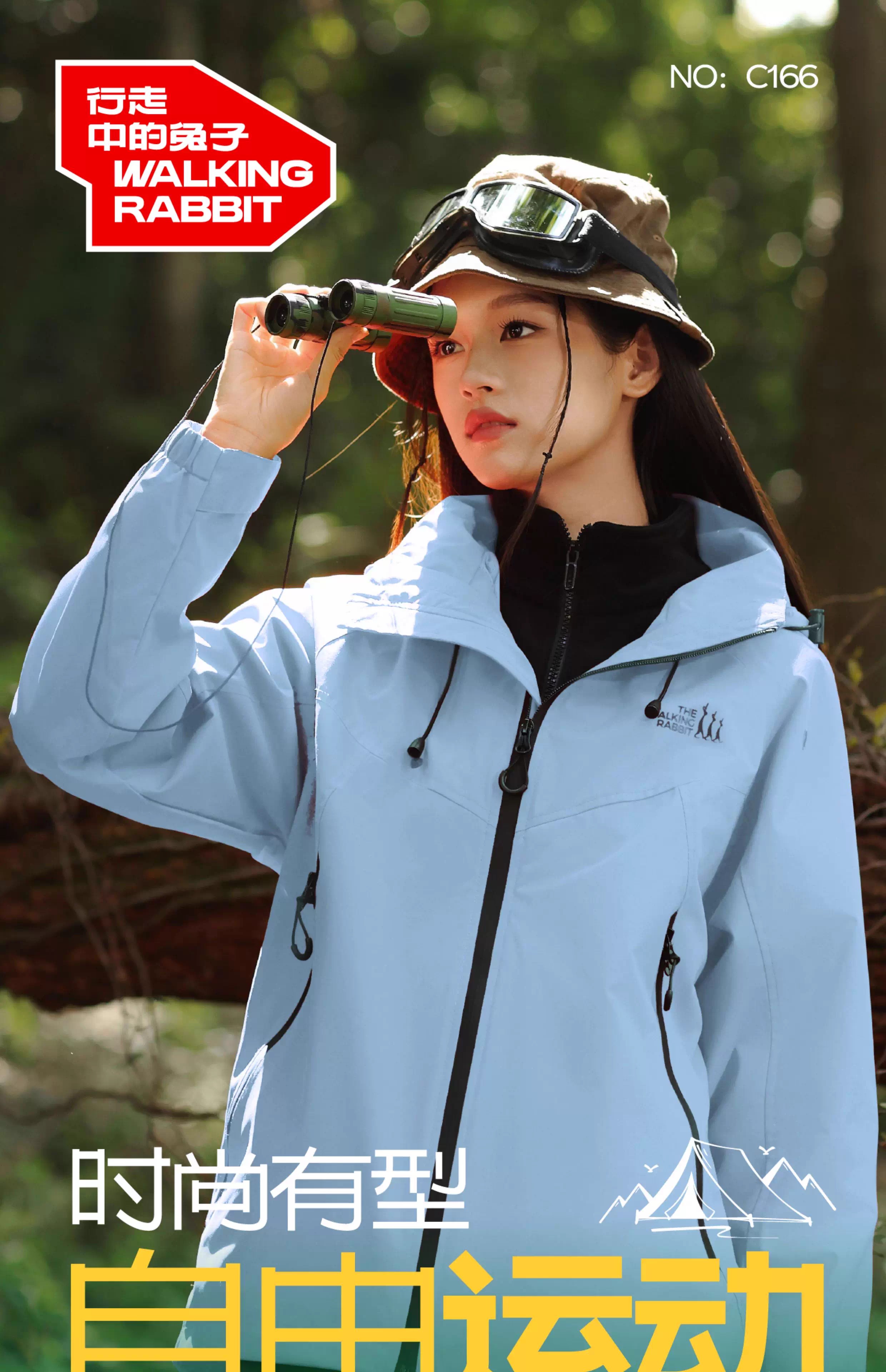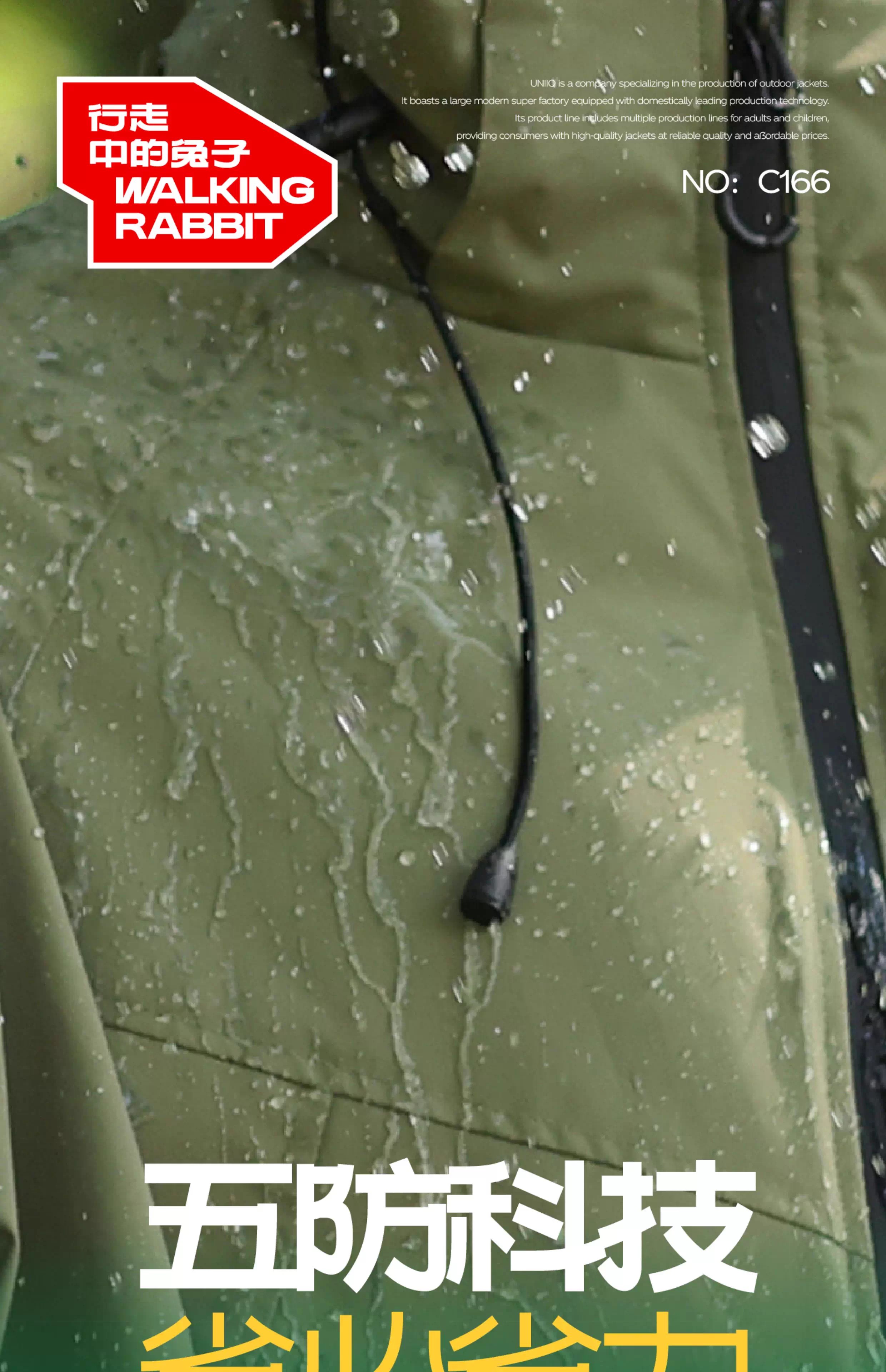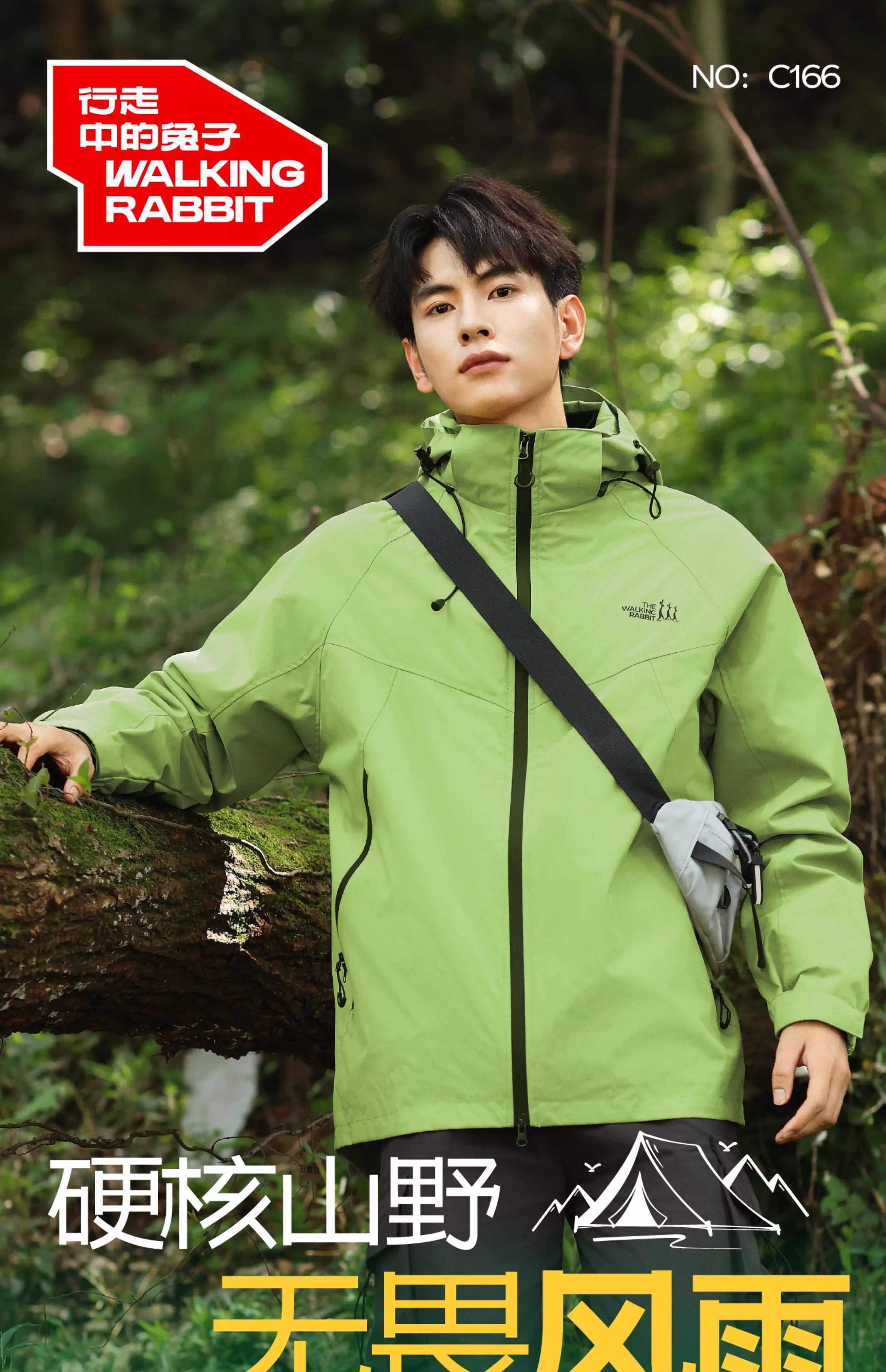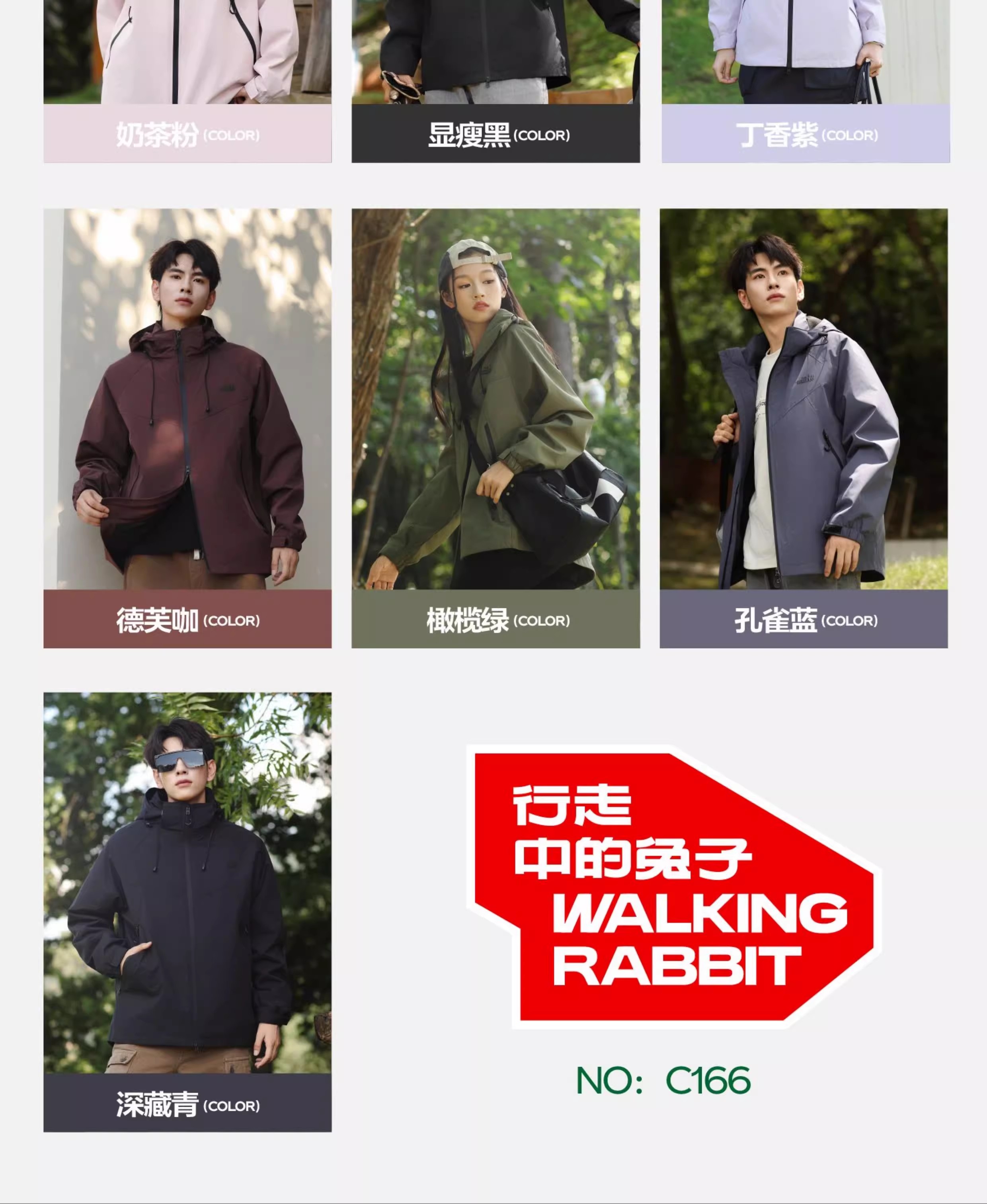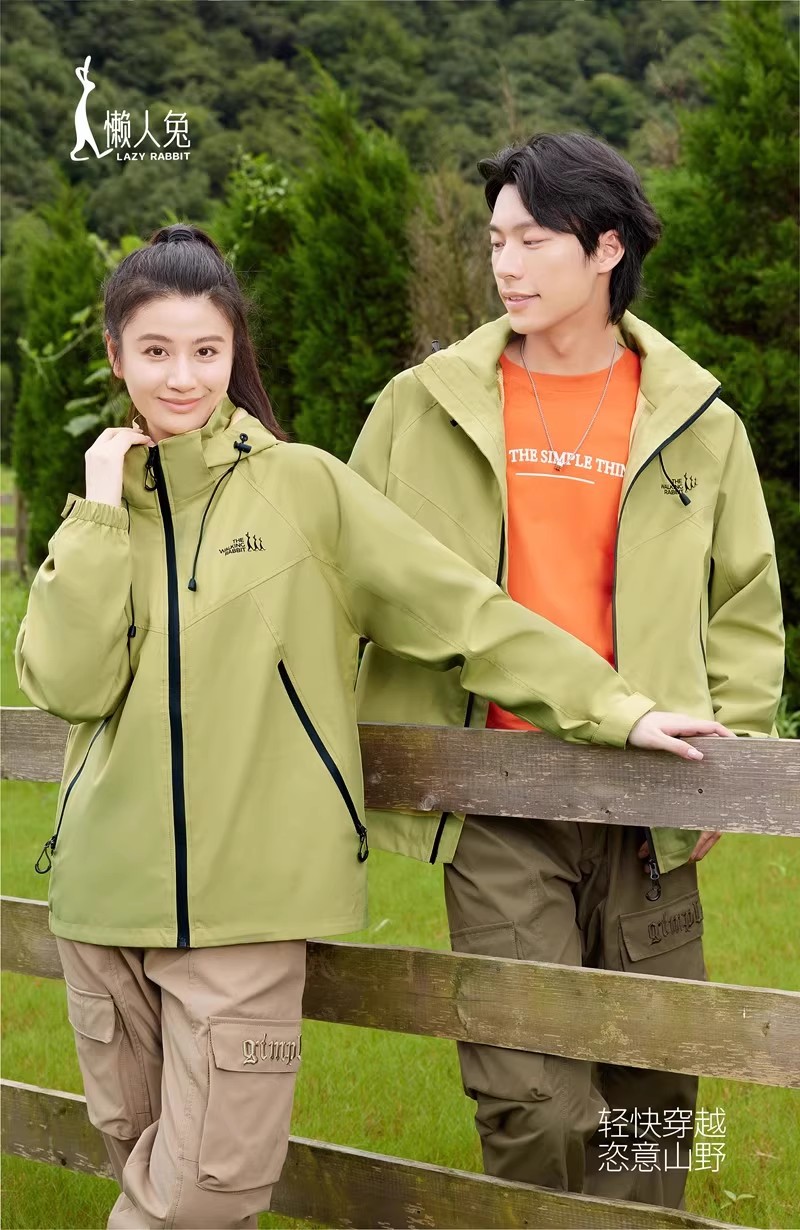 行走中的兔子沖鋒衣男女情侶款戶外單層可加羽絨內膽防風防水外套