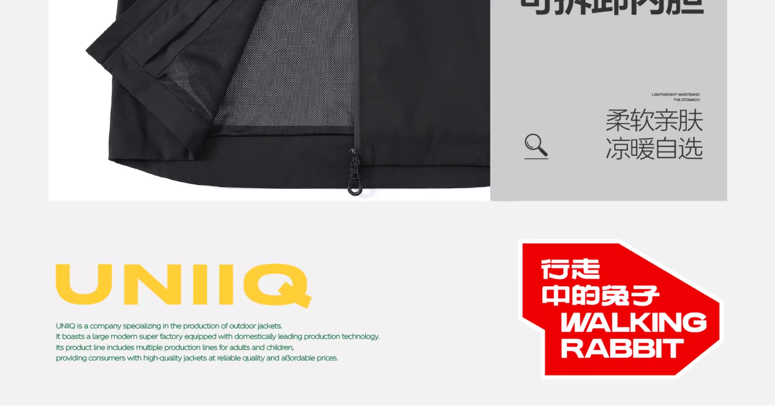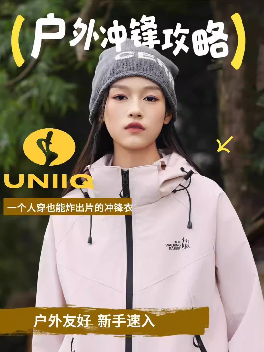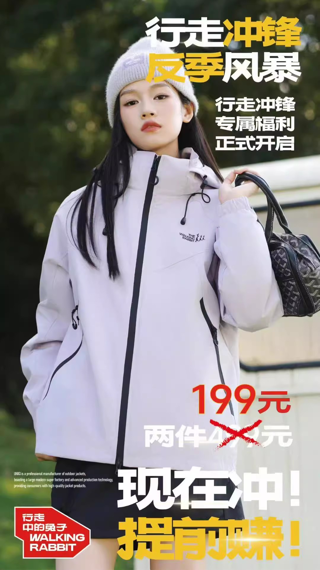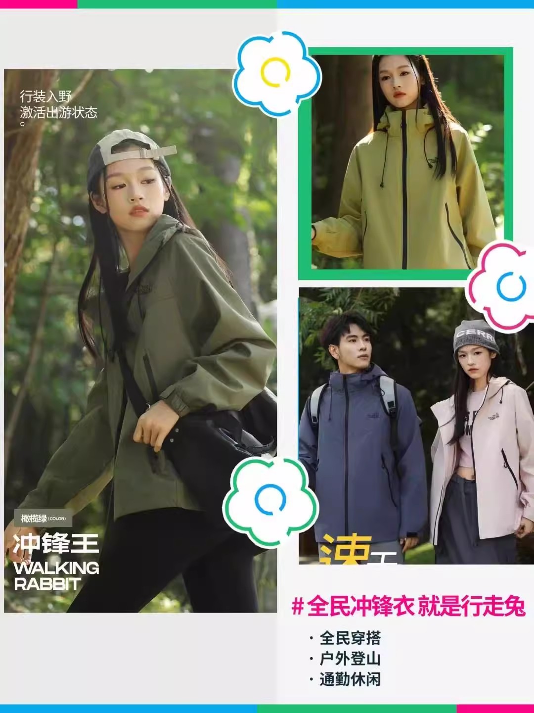 行走中的兔子沖鋒衣男女情侶款戶外單層可加羽絨內膽防風防水外套