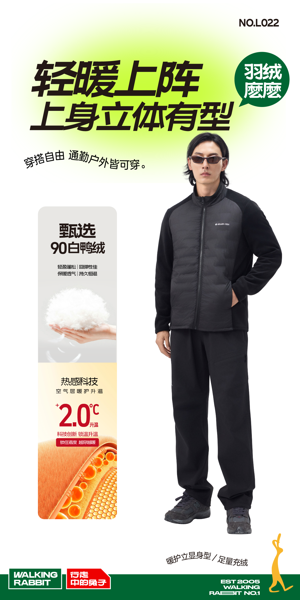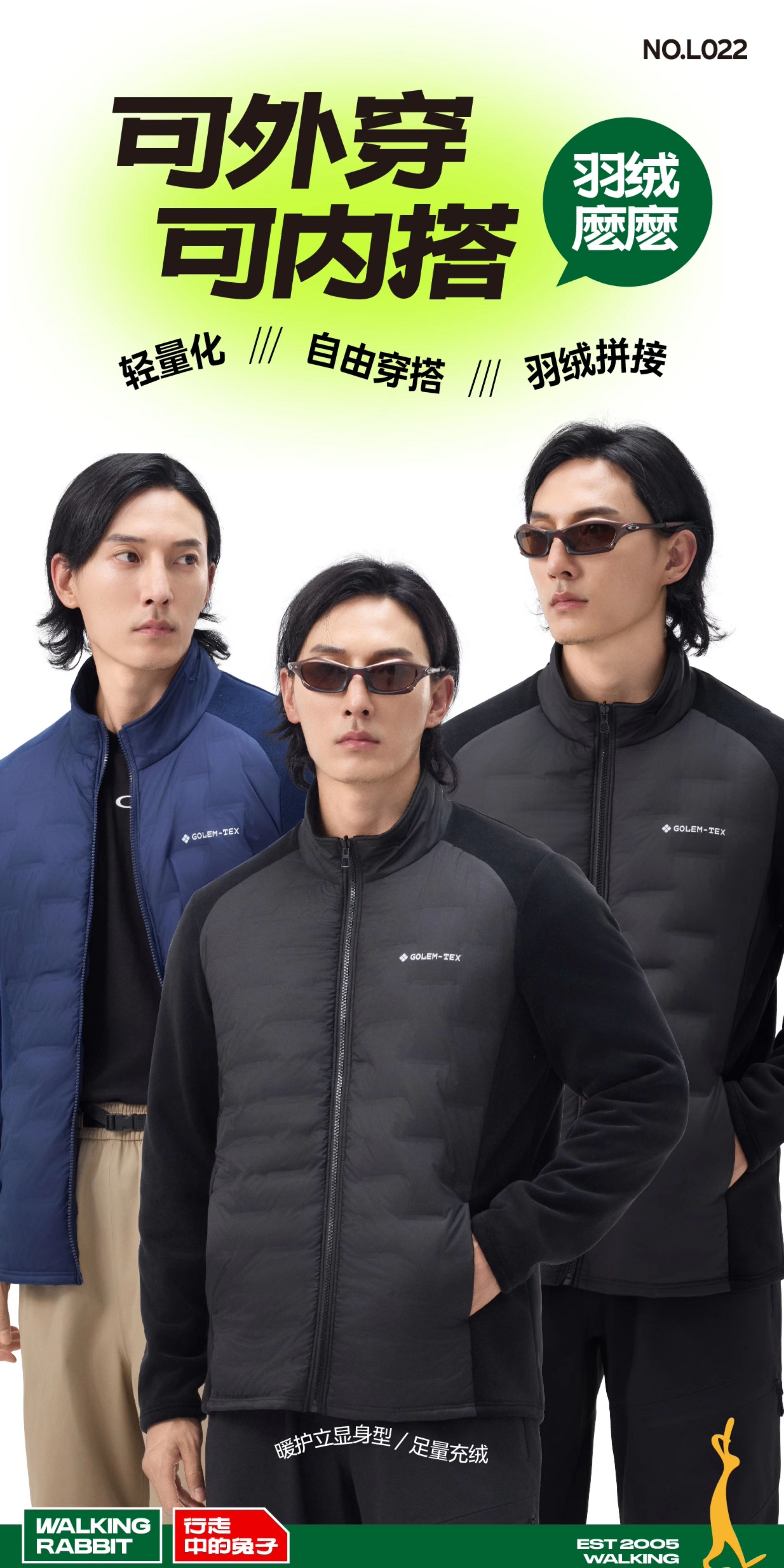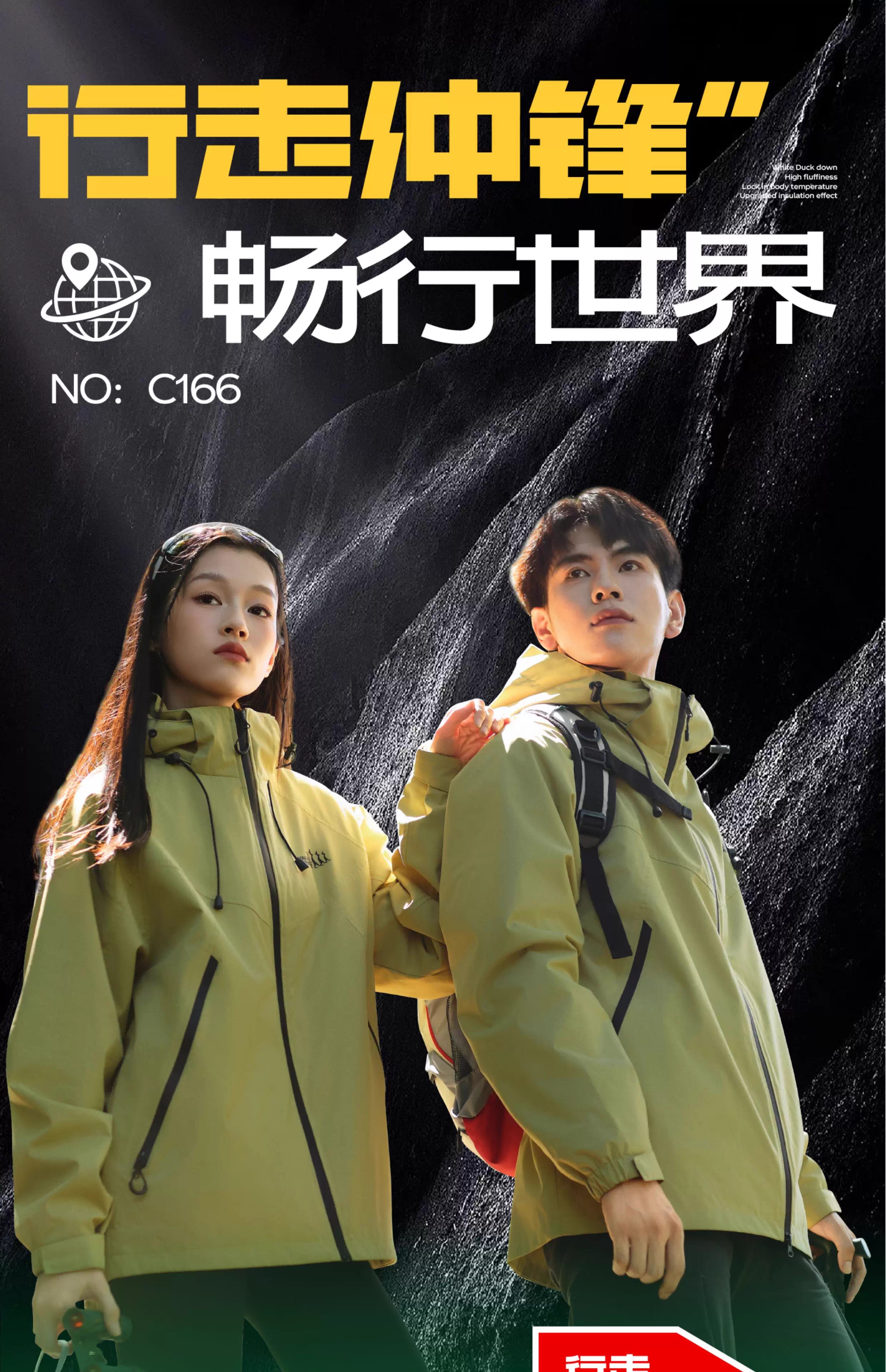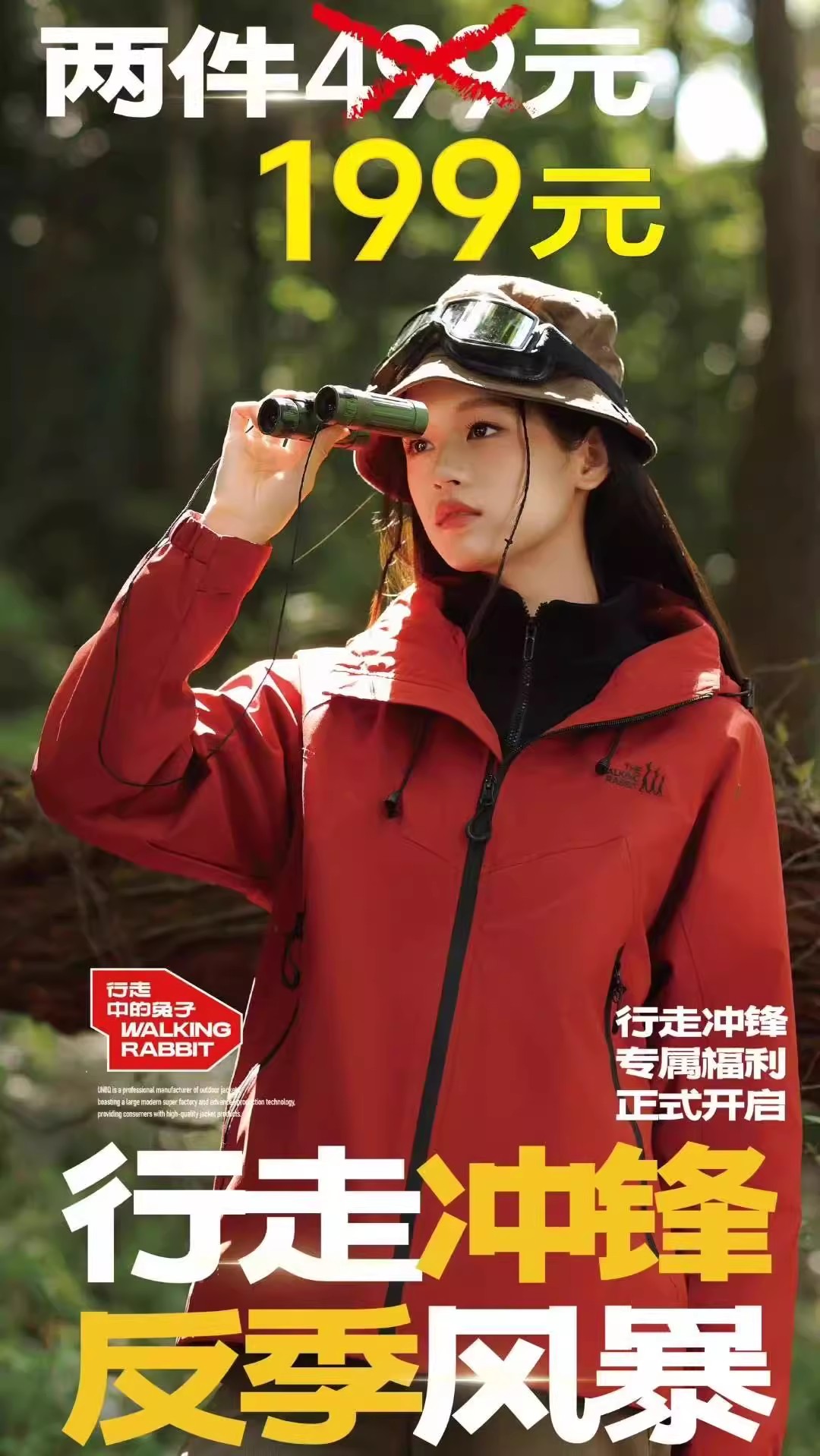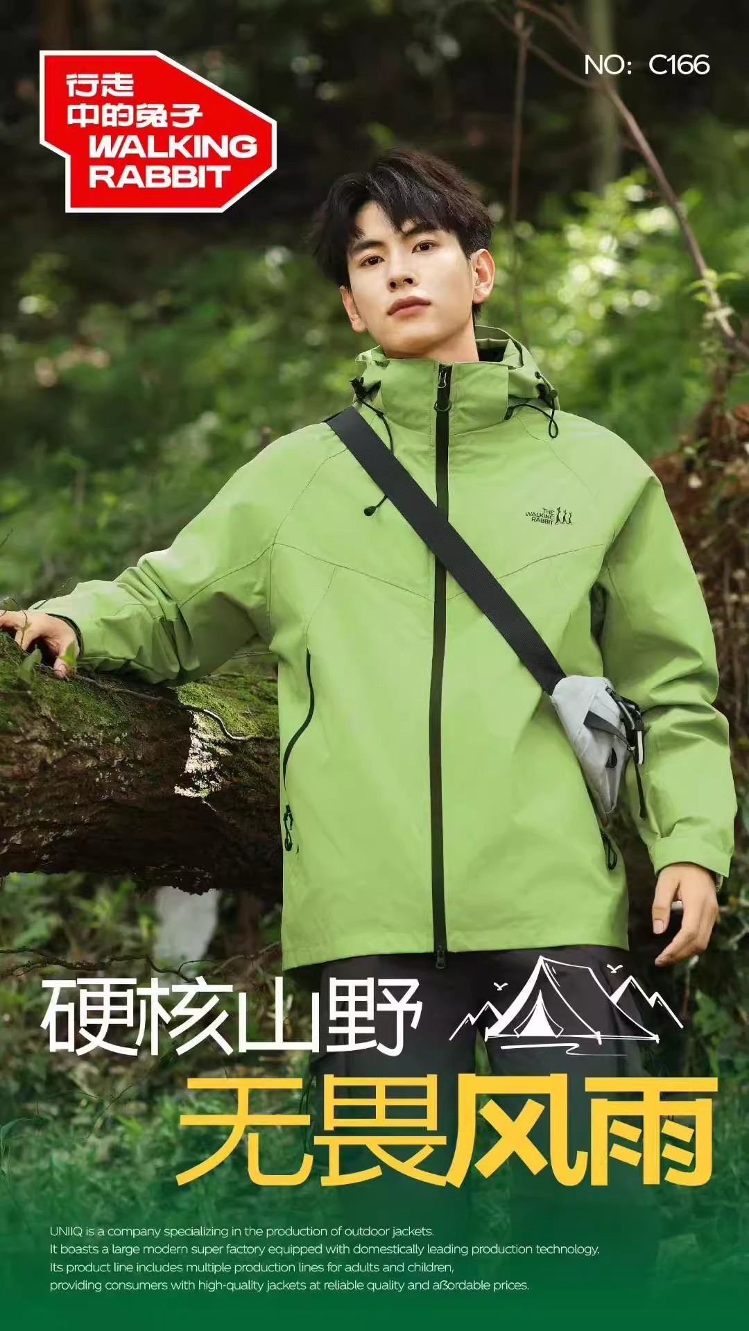 行走中的兔子沖鋒衣男女情侶款戶外單層可加羽絨內膽防風防水外套