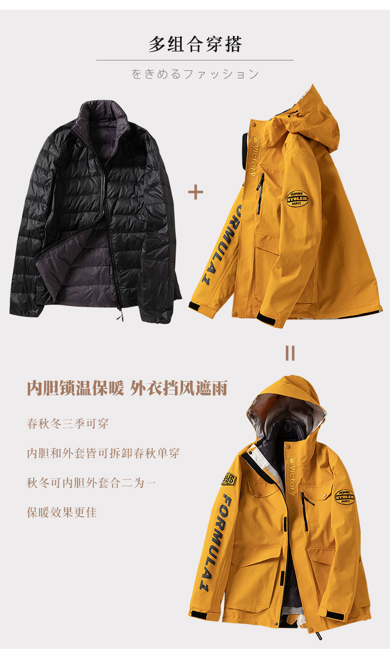 春季戶外服女三合一男潮沖鋒款式外套可拆卸羽絨西藏旅遊登山衣服
