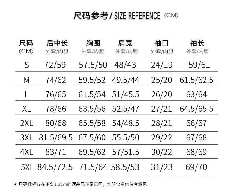 9008搖粒絨內膽/59008羽絨內膽尺碼表推薦