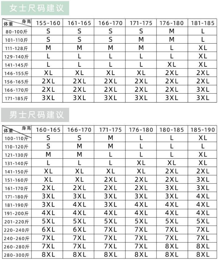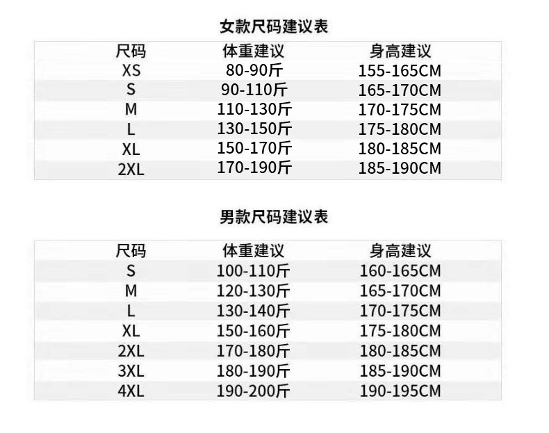 男女同款的尺碼是偏大的,女生購買要尺碼要選小一些,例如:165CM 110斤 推薦穿S碼 ;單獨標注男款或者女款的就按照平時正常尺碼選購!