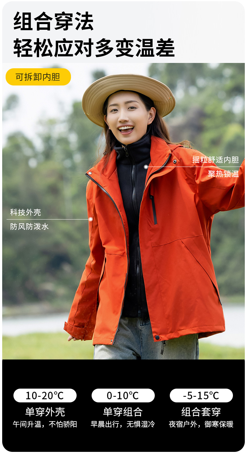 蕉下客沖鋒衣外套女款2025新款小個子三合一戶外防風防水登山服男
