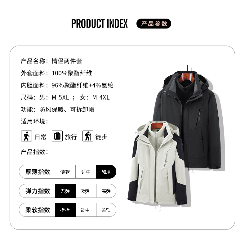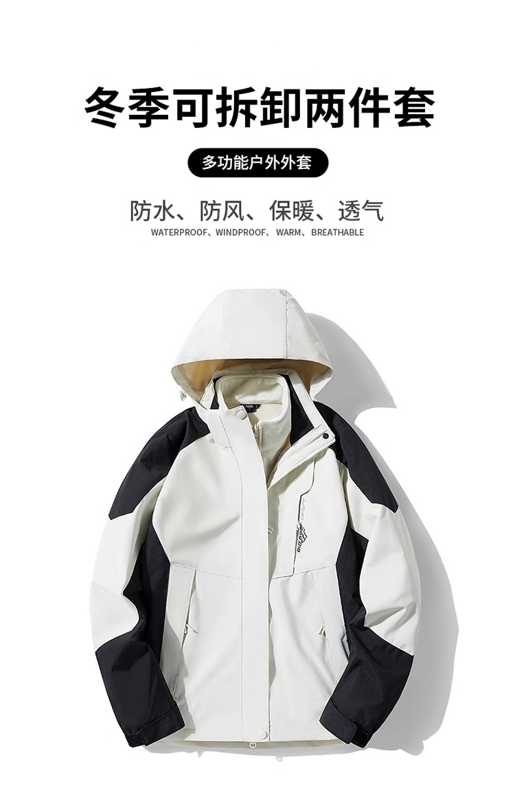 NASA戶外沖鋒衣男女三合一可拆卸秋冬加厚防風防水登山服進藏外套