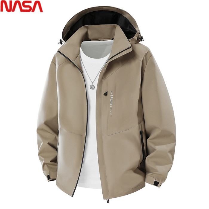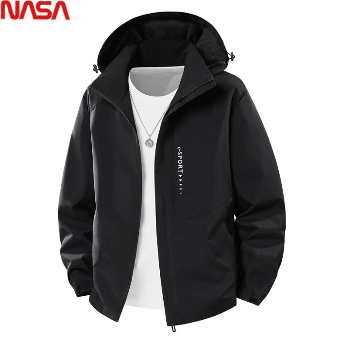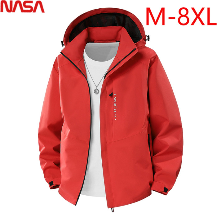 NASA大紅色本命年男士沖鋒衣夾克外套加肥加大碼春秋季胖子紅