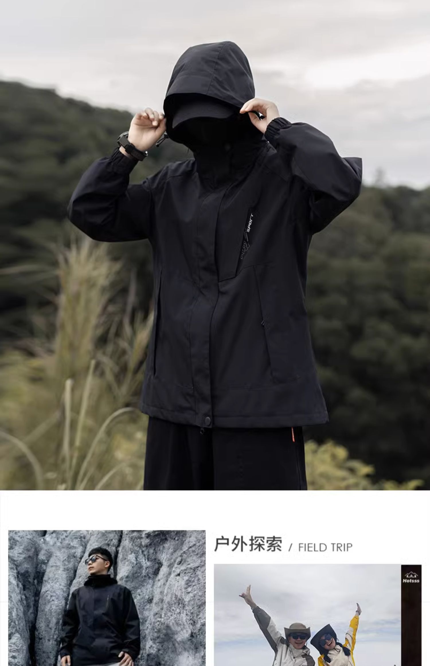 蕉下客春秋沖鋒衣男女三合一2025新款登山服防風防水小個子加絨加