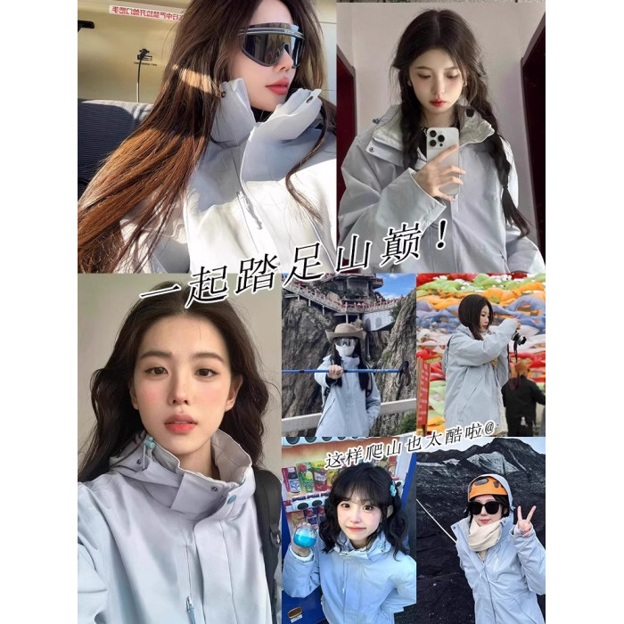 全棉純棉粉色沖鋒衣女款2025新款春秋季三合一小個子初春防風超好