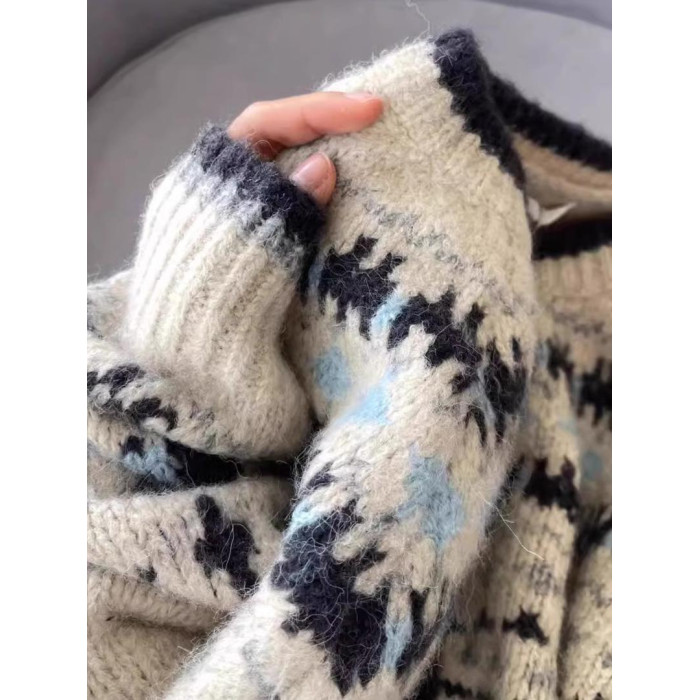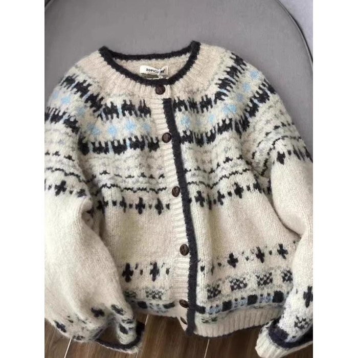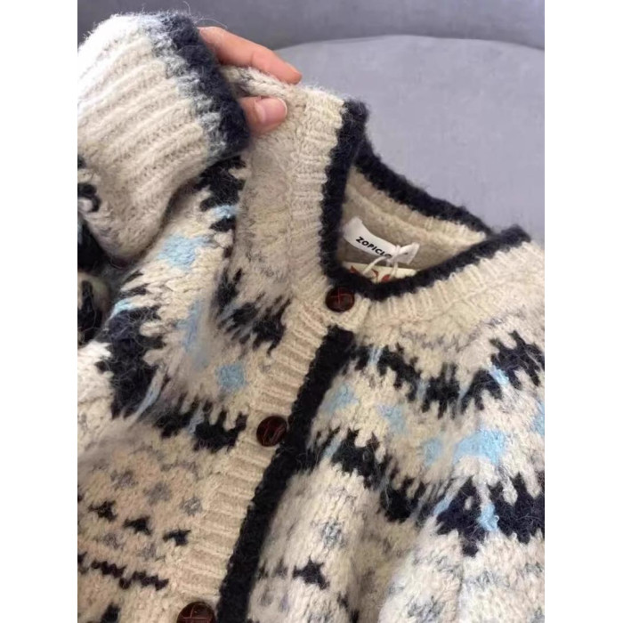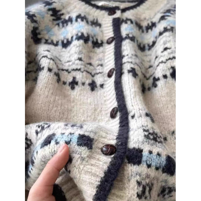 女裝秋冬季2024新款復古費爾島毛衣開衫設計感外穿加厚單排釦外套