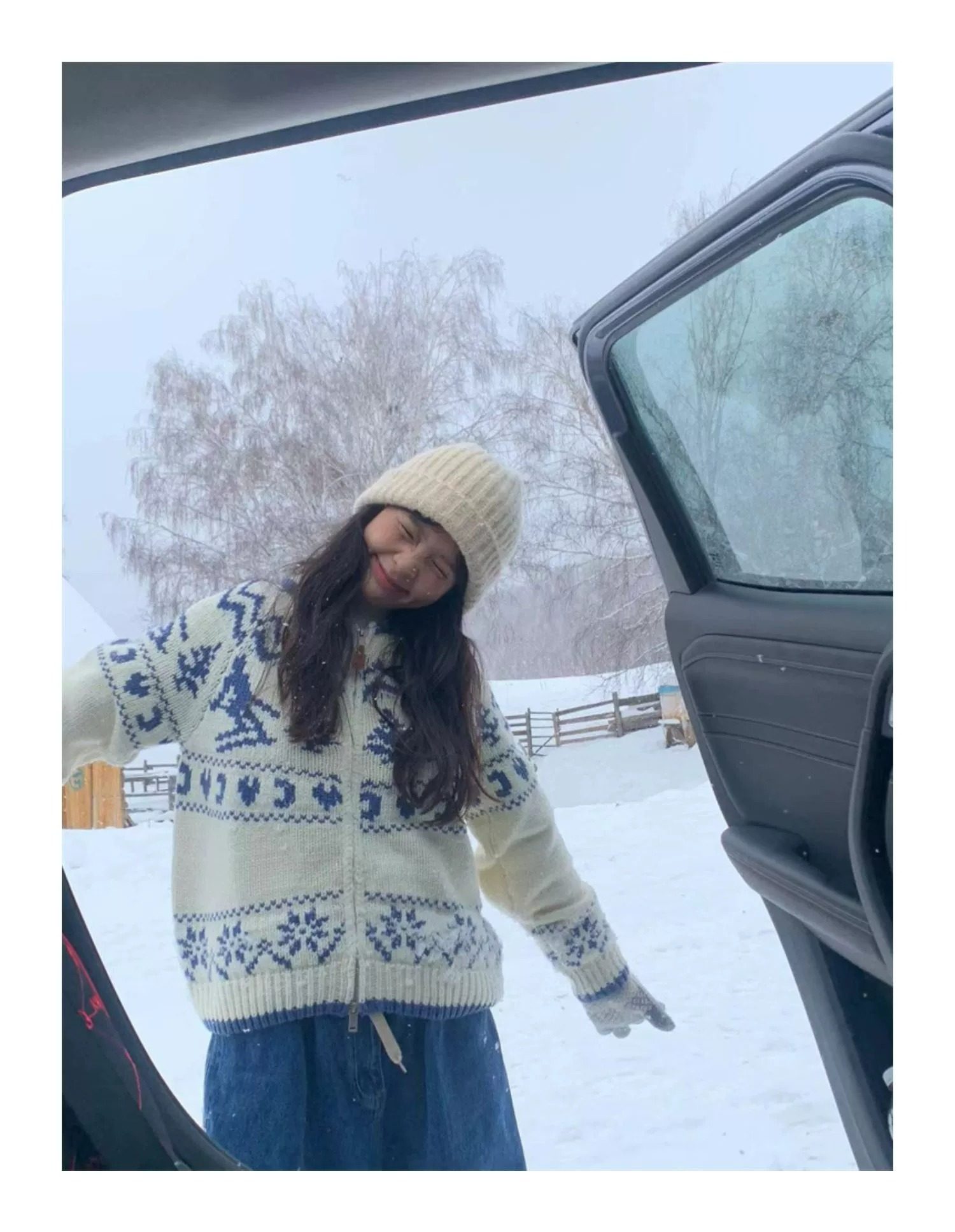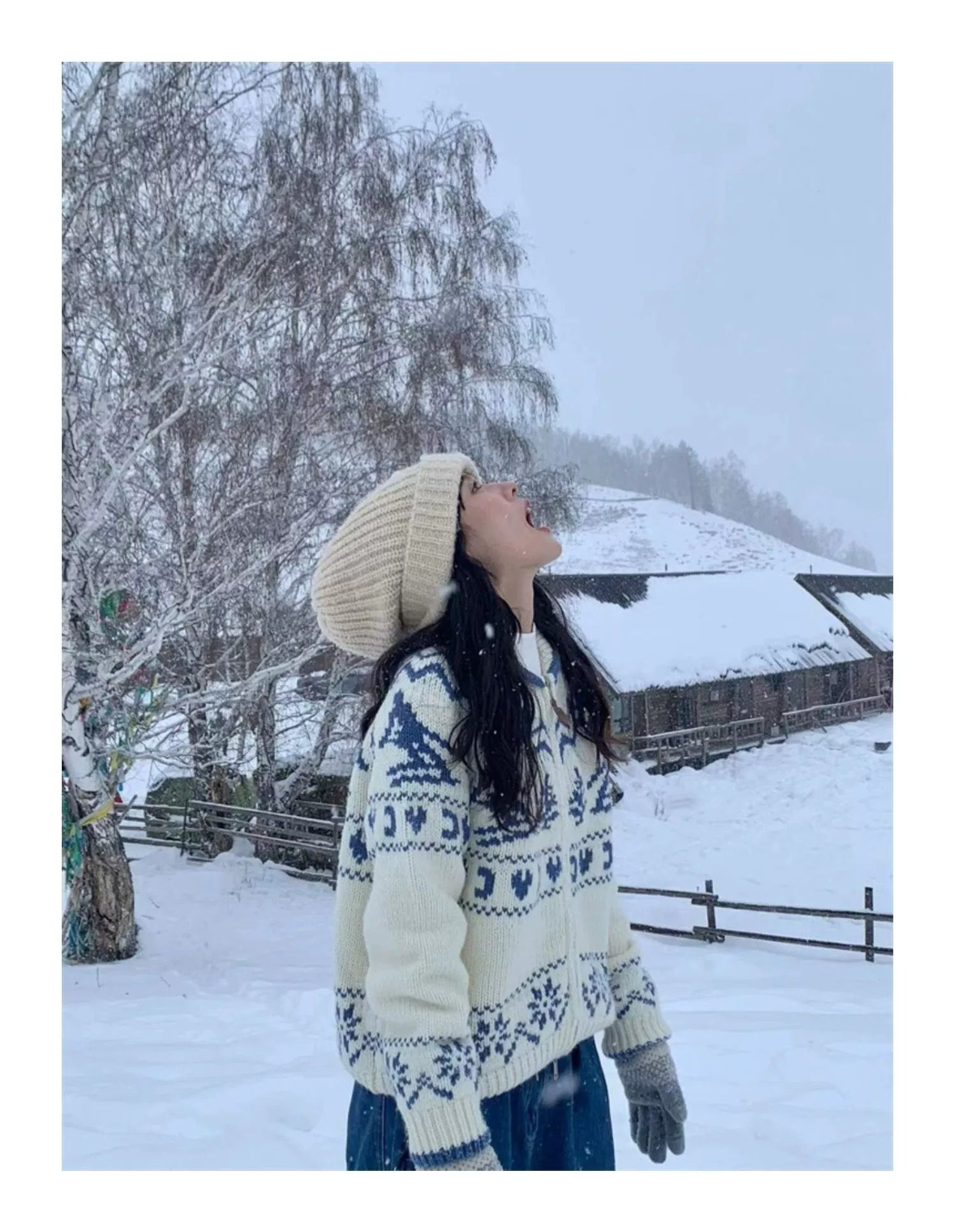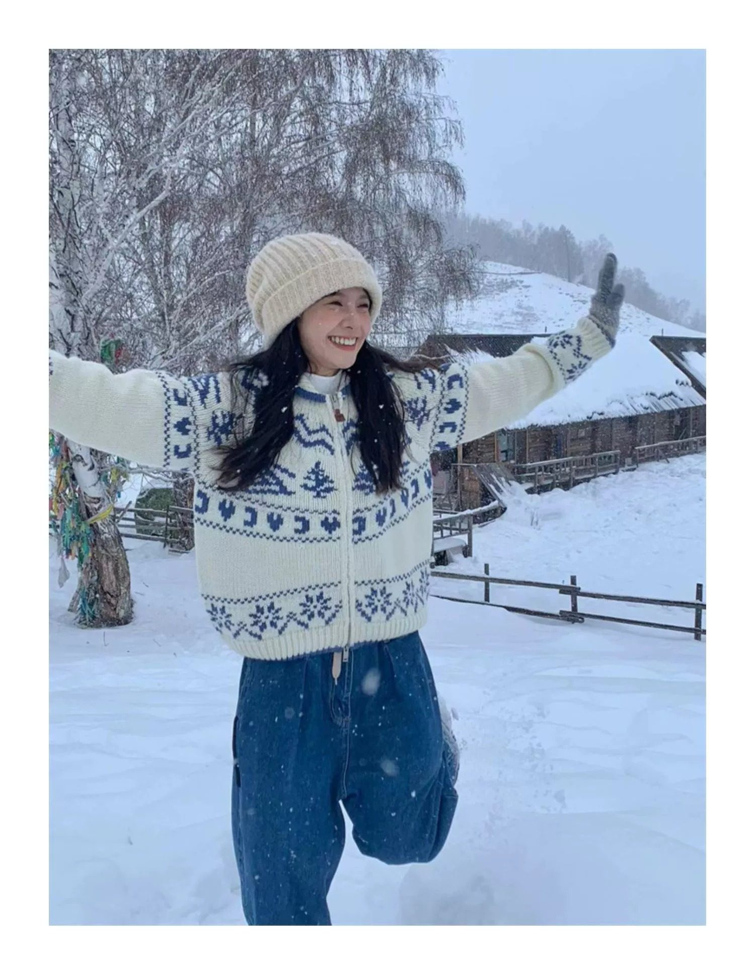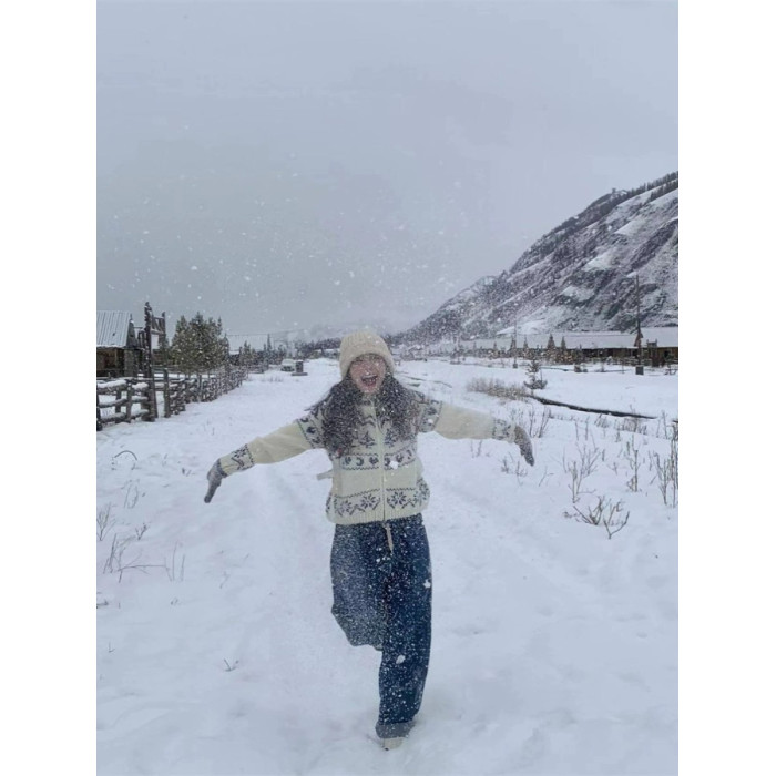 Pump/冬日滑雪 北歐復古費爾島聖誕樹毛衣寬松針織開衫外套女春季