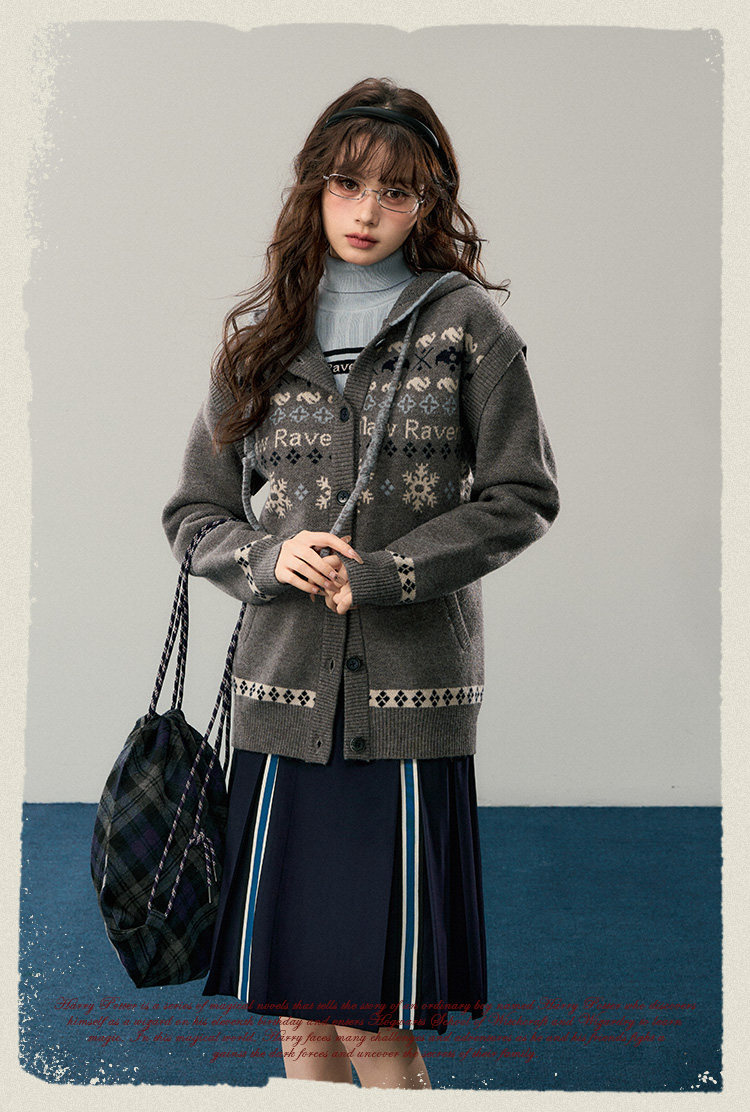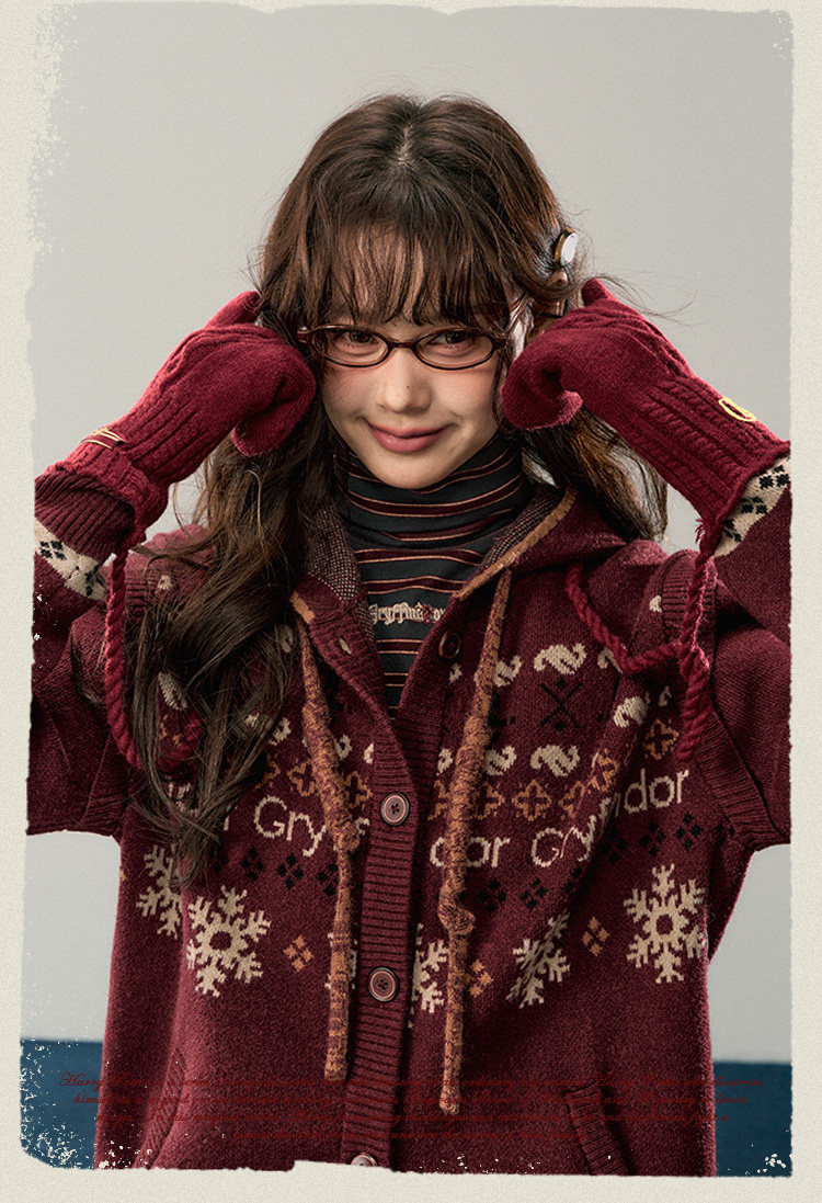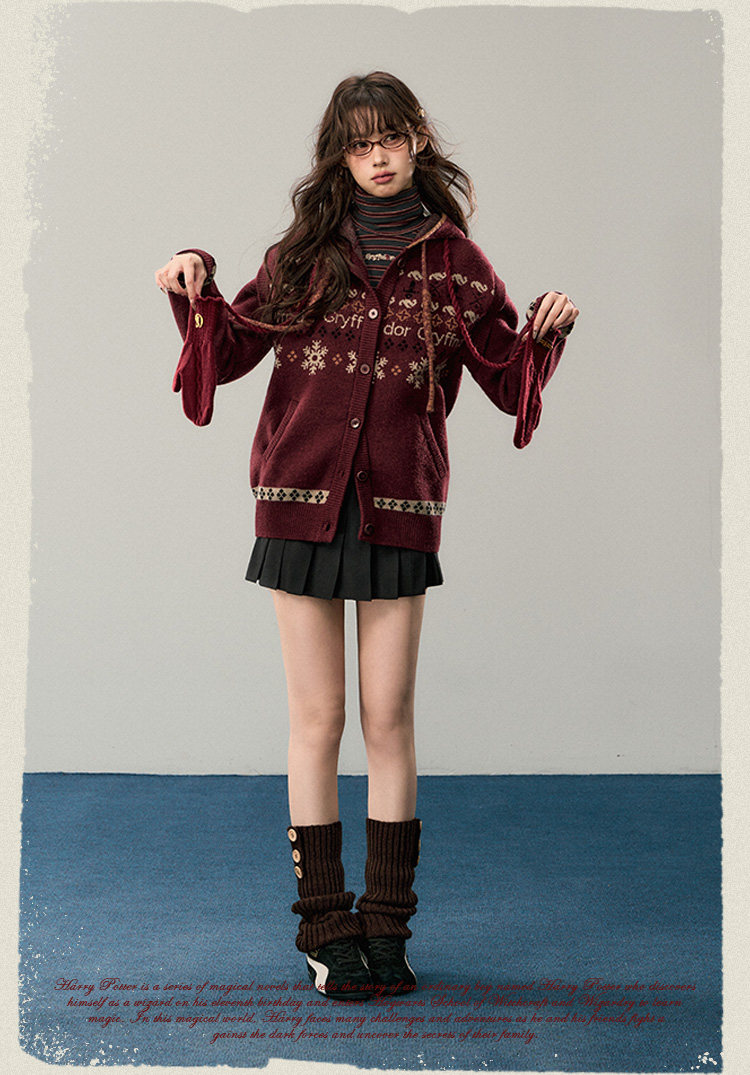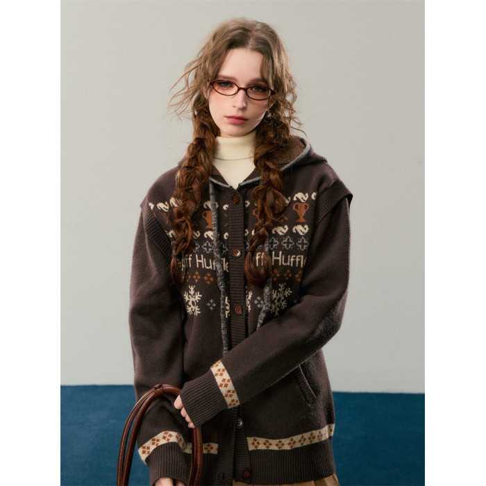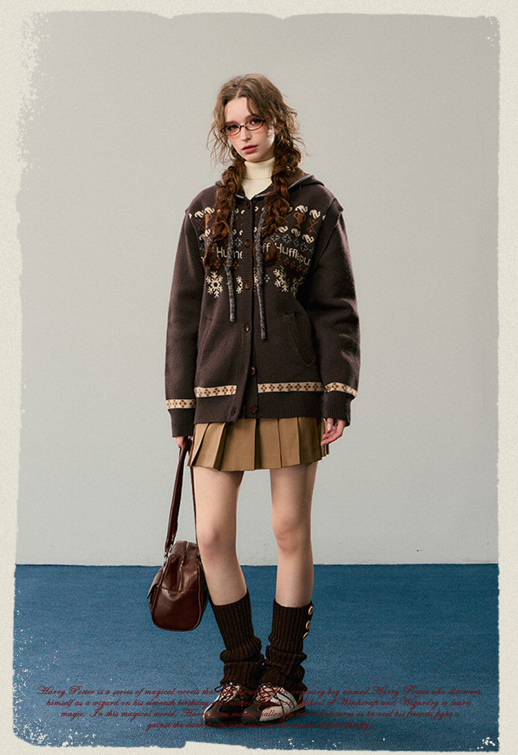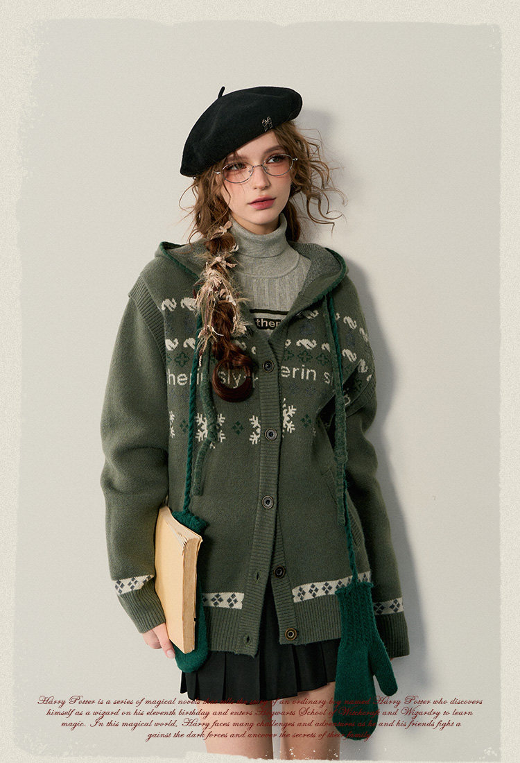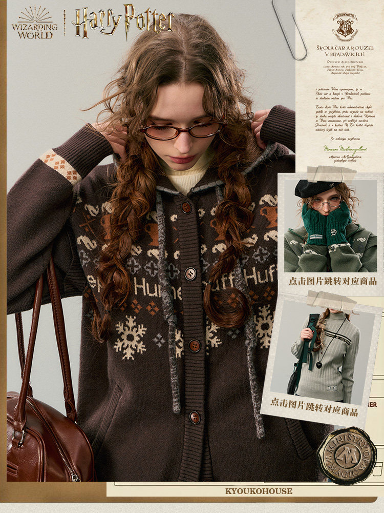 【Kyouko】梗豆哈利波特正版授權聯名復古費爾島針織外套連帽衛衣