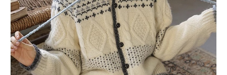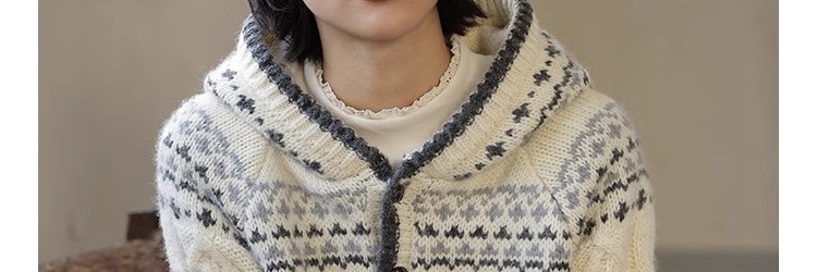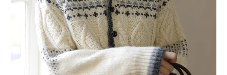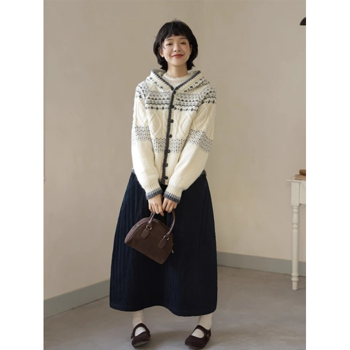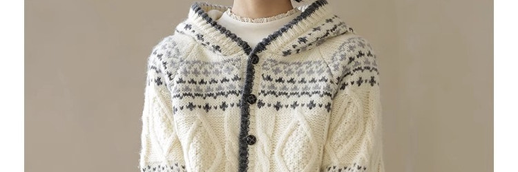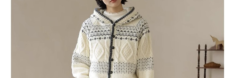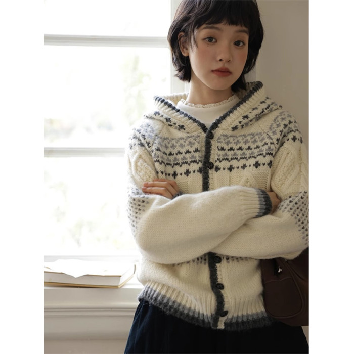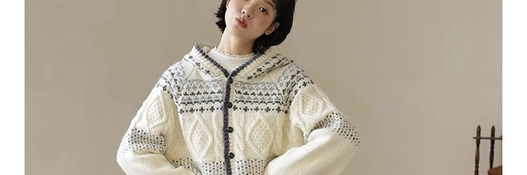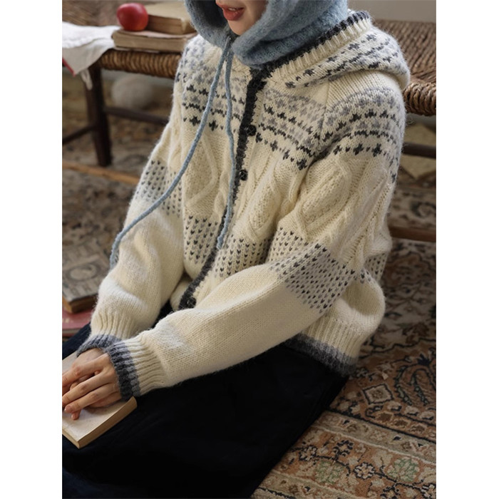 復古費爾島麻花連帽開衫毛衣外套女冬季加厚寬松慵懶風高級感上衣