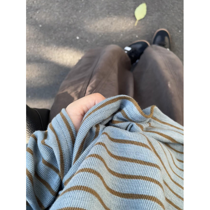 韓系復古撞色條紋長袖針織衫女秋季高級感慵懶風寬松打底衫上衣潮