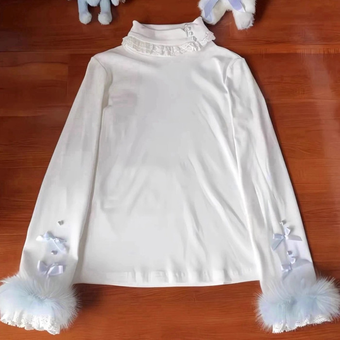 PINKGIRL【奶油甜心】Lolita百搭高領內搭打底衫長袖秋冬修身上衣
