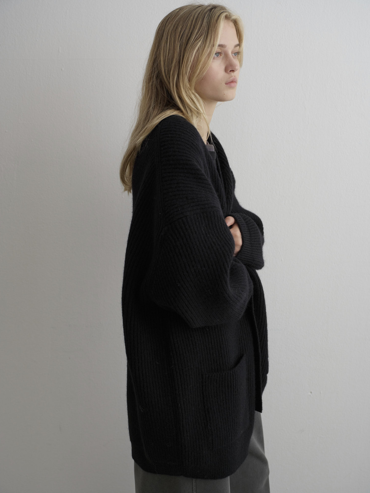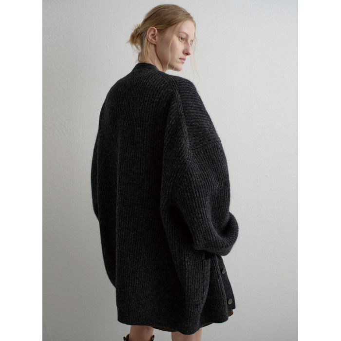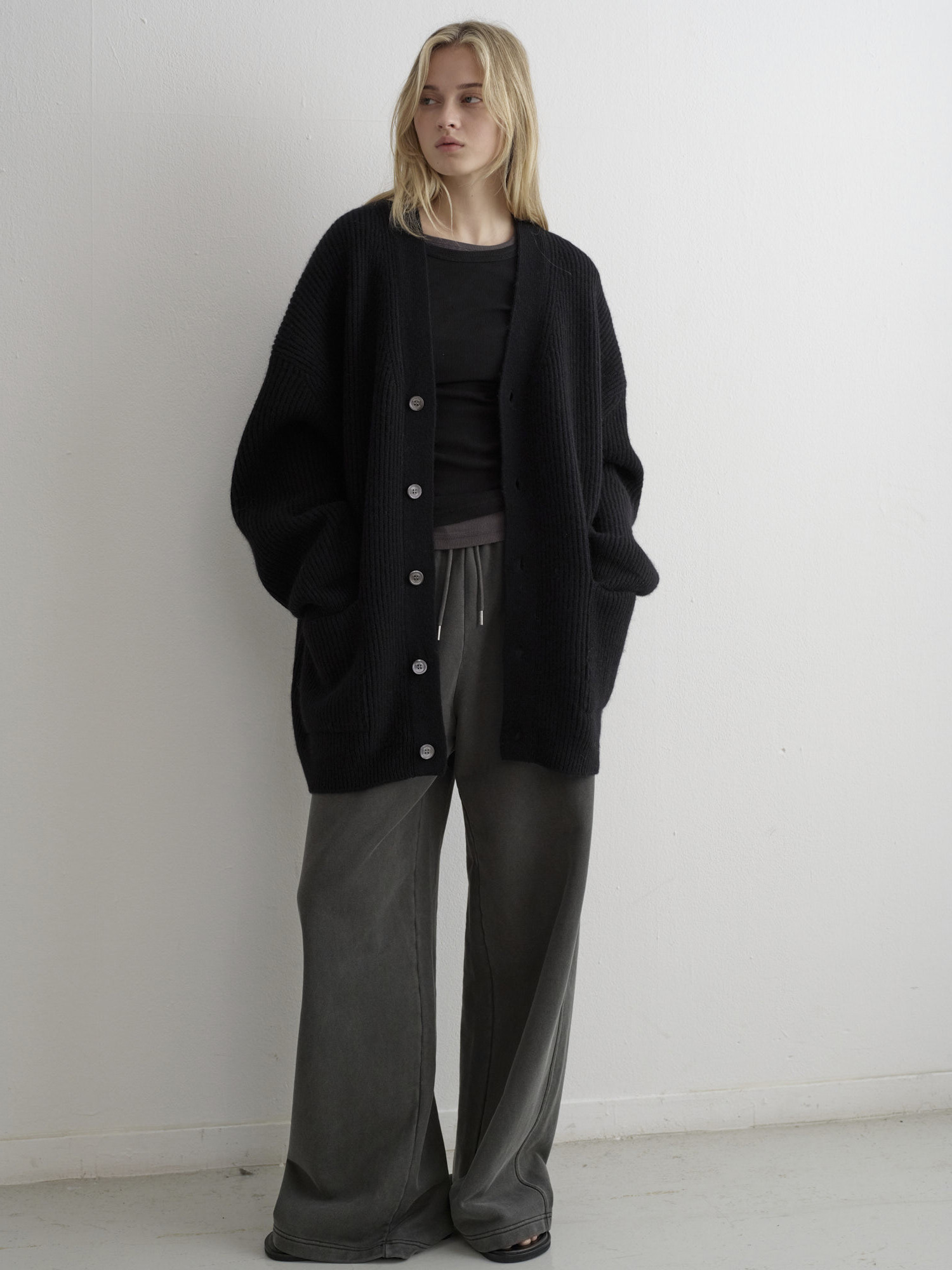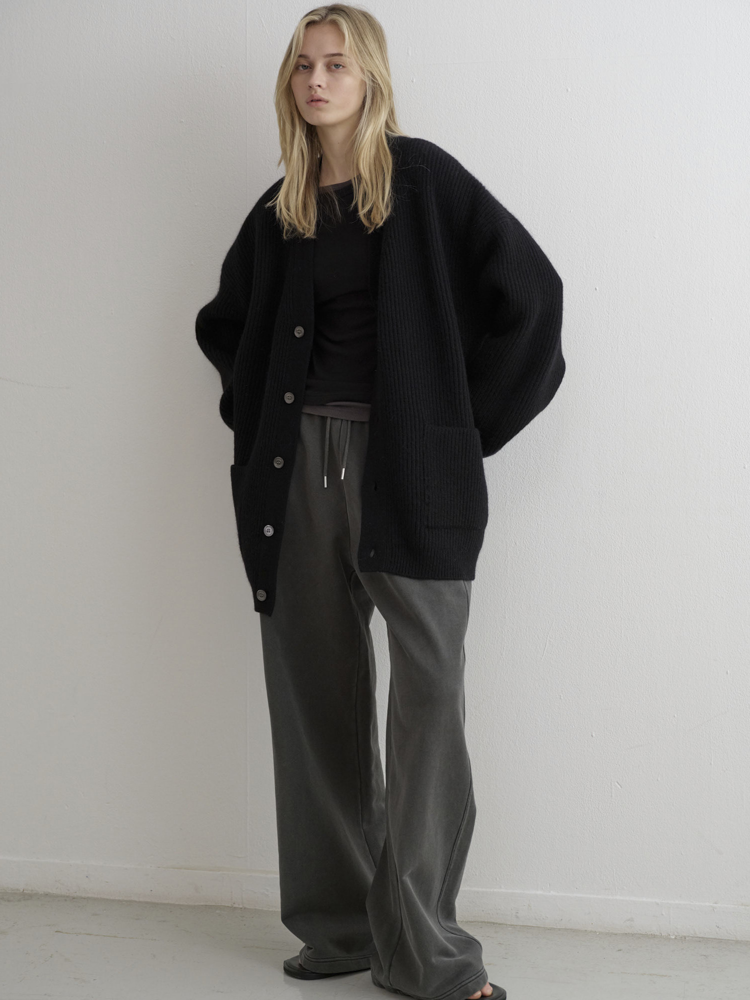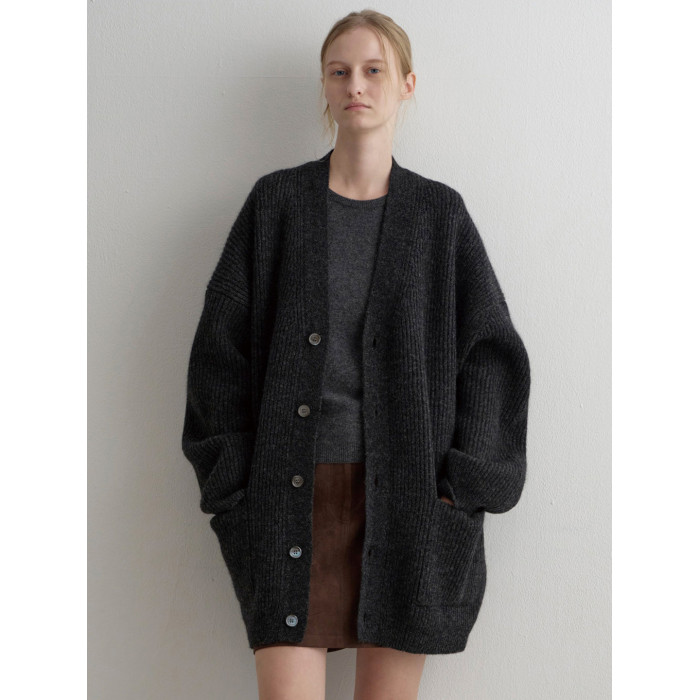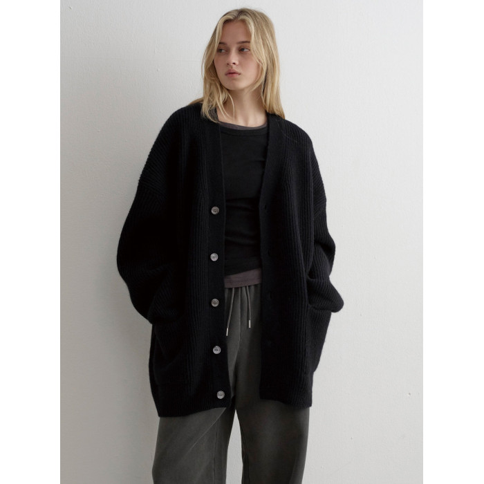 秋冬慵懶黑色v領羊毛中長款針織外套毛衣女2025新款法式開衫上衣