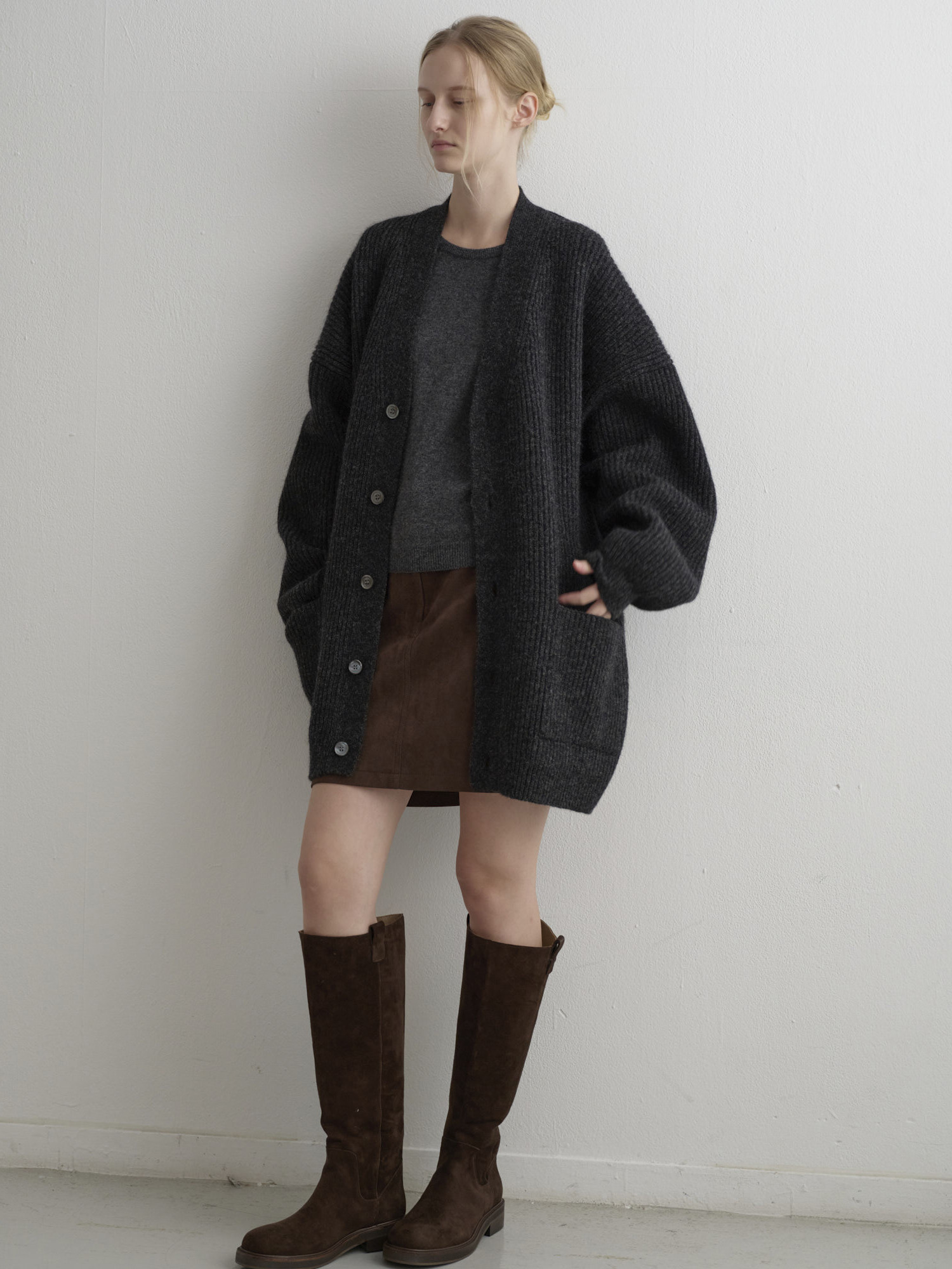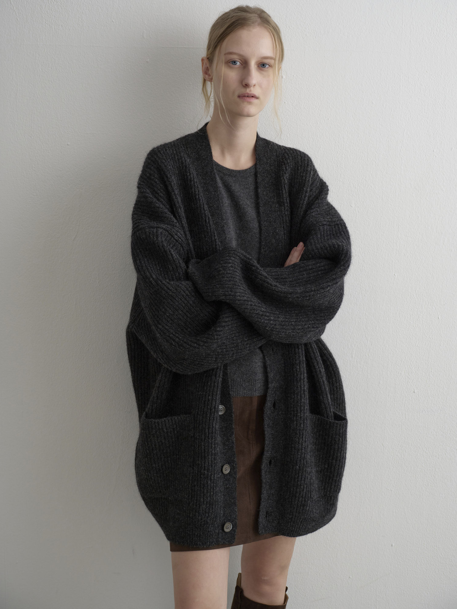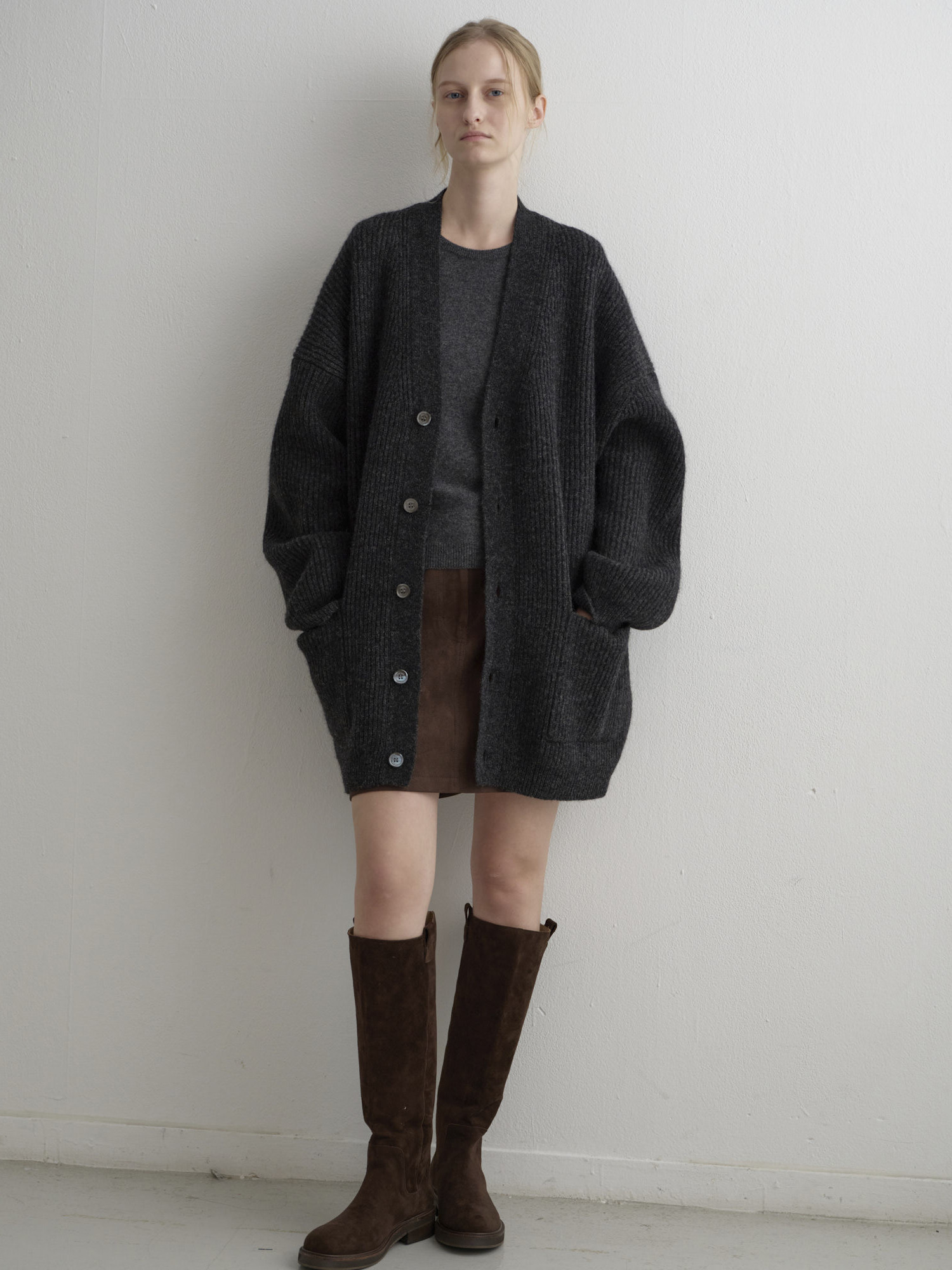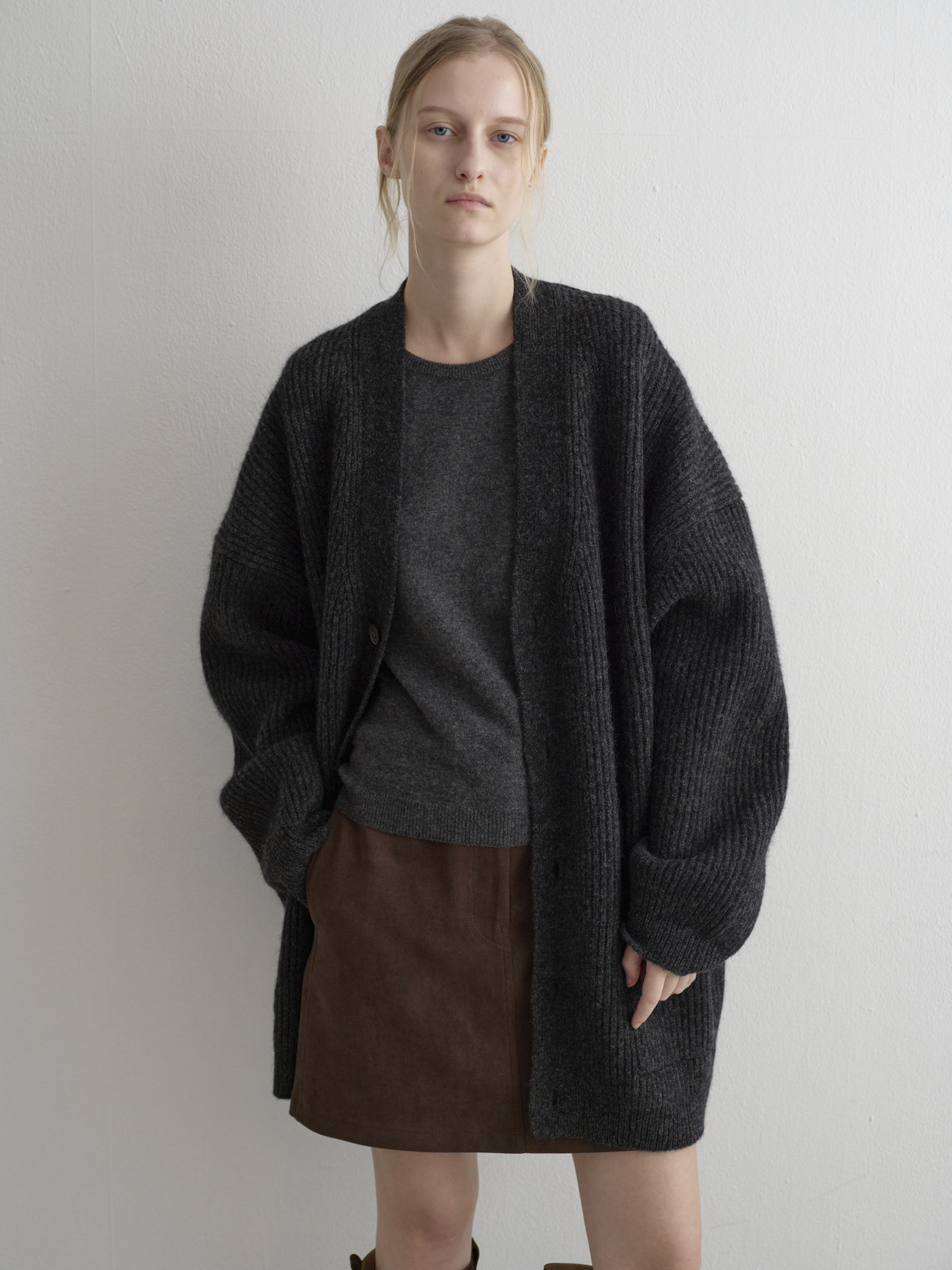 秋冬慵懶黑色v領羊毛中長款針織外套毛衣女2025新款法式開衫上衣