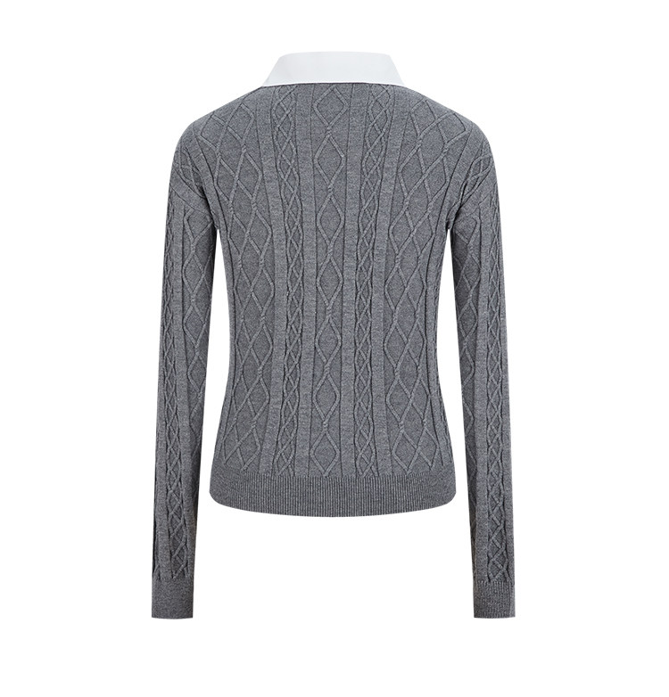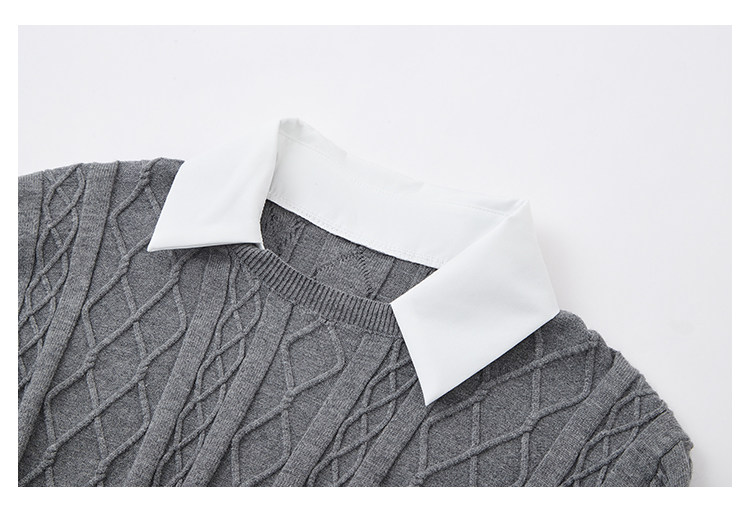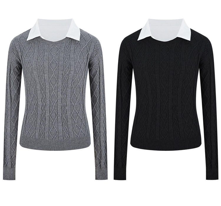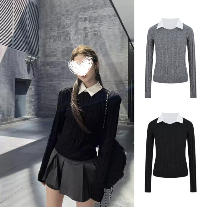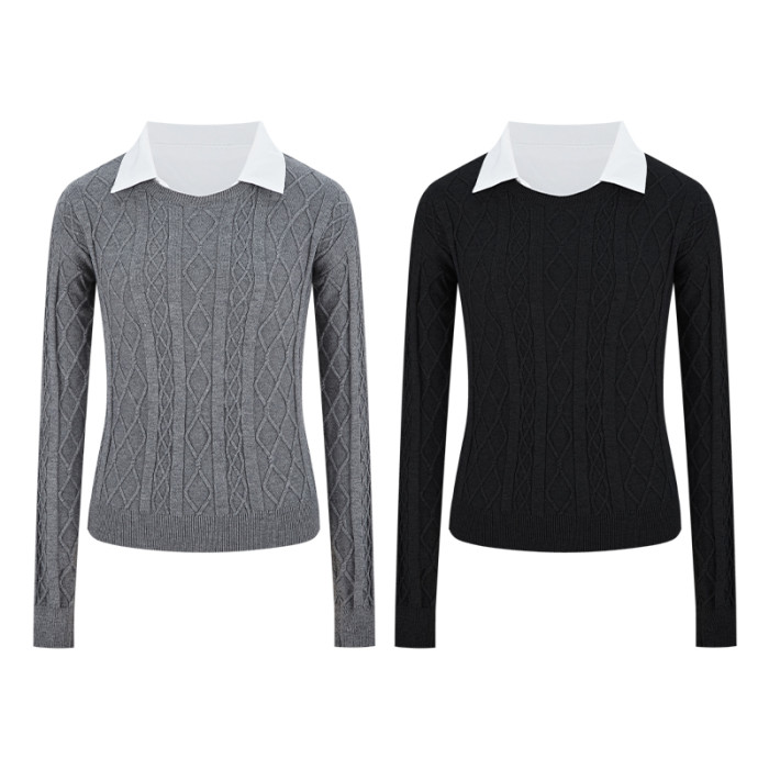 MosesQueen魔西女王假兩件黑色麻花毛衣女秋冬內搭打底衫針織上衣