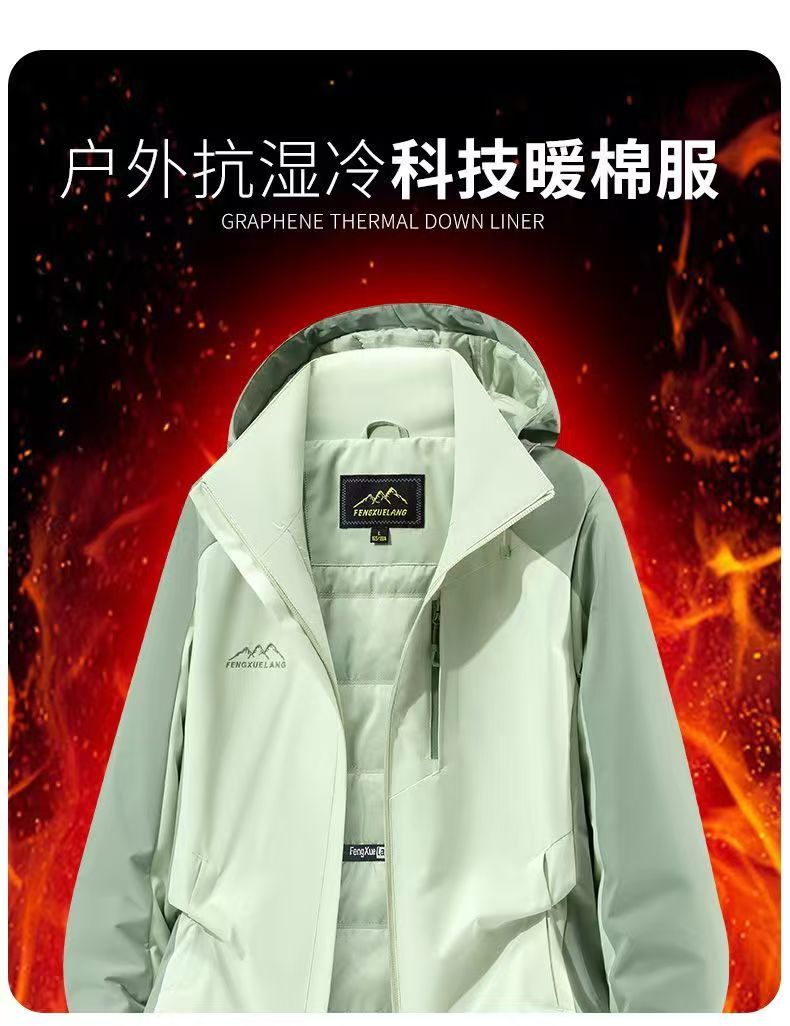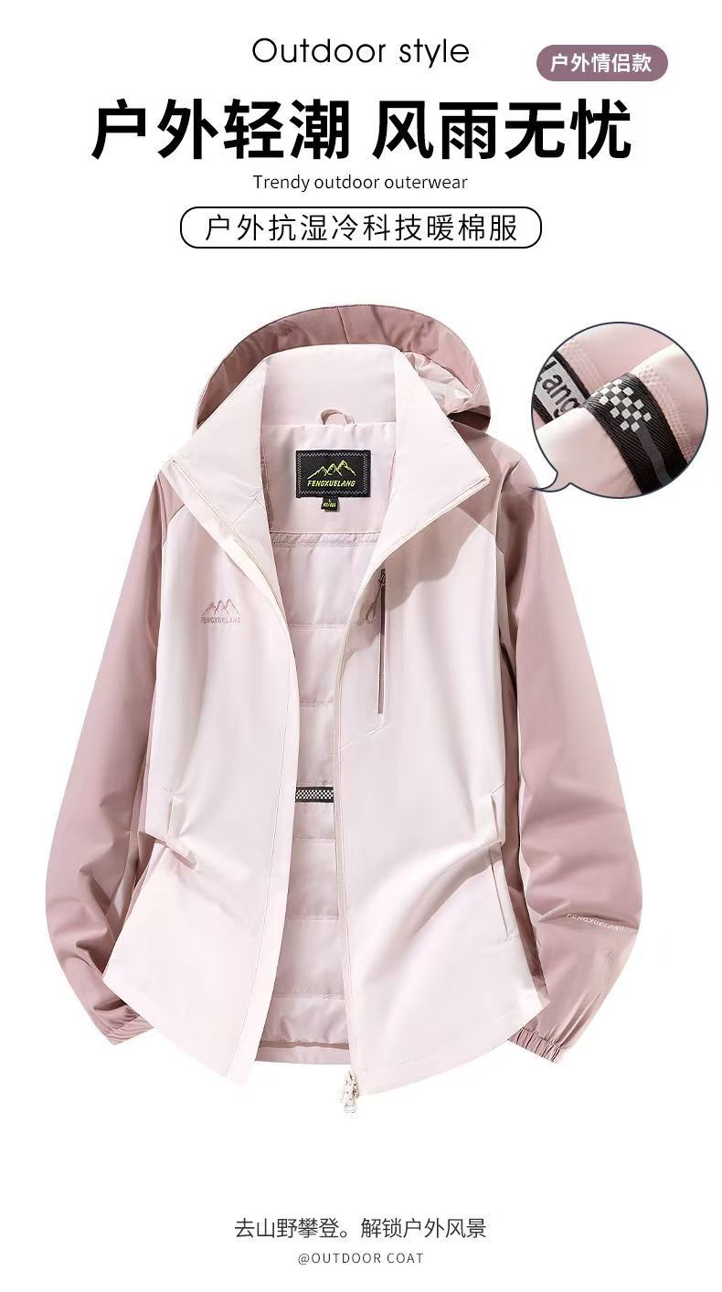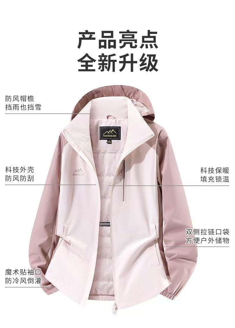 風雪狼沖鋒衣女秋冬季加絨保暖防風外套男大碼登山服加棉沖鋒衣