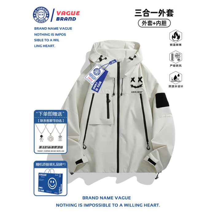NASA聯名潮牌沖鋒衣男款秋冬季新款戶外三合一防風防水加厚外套女