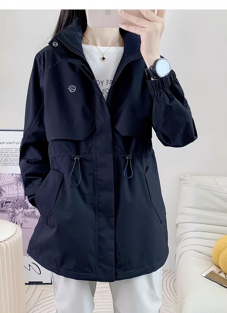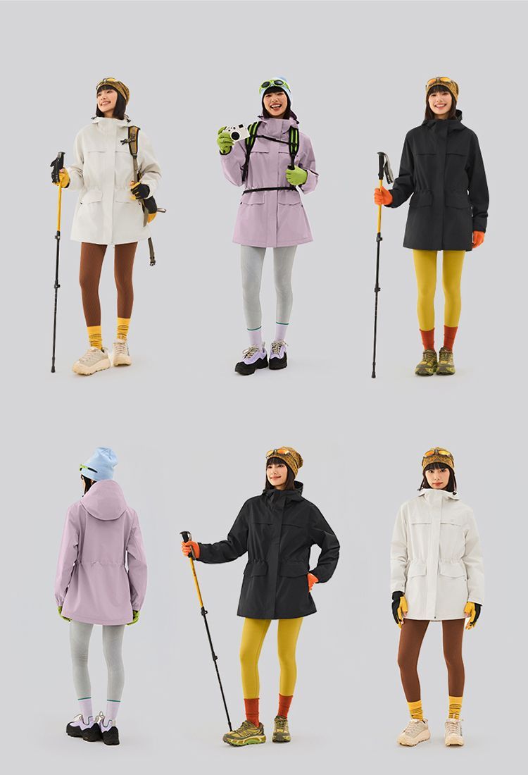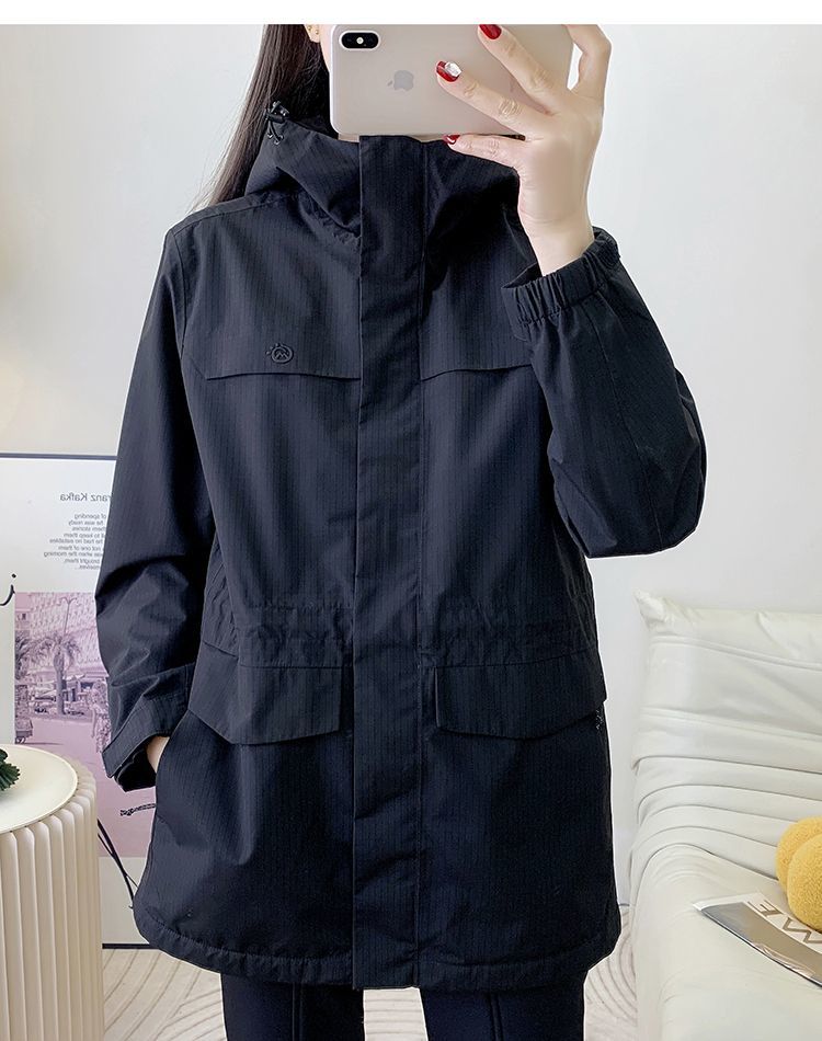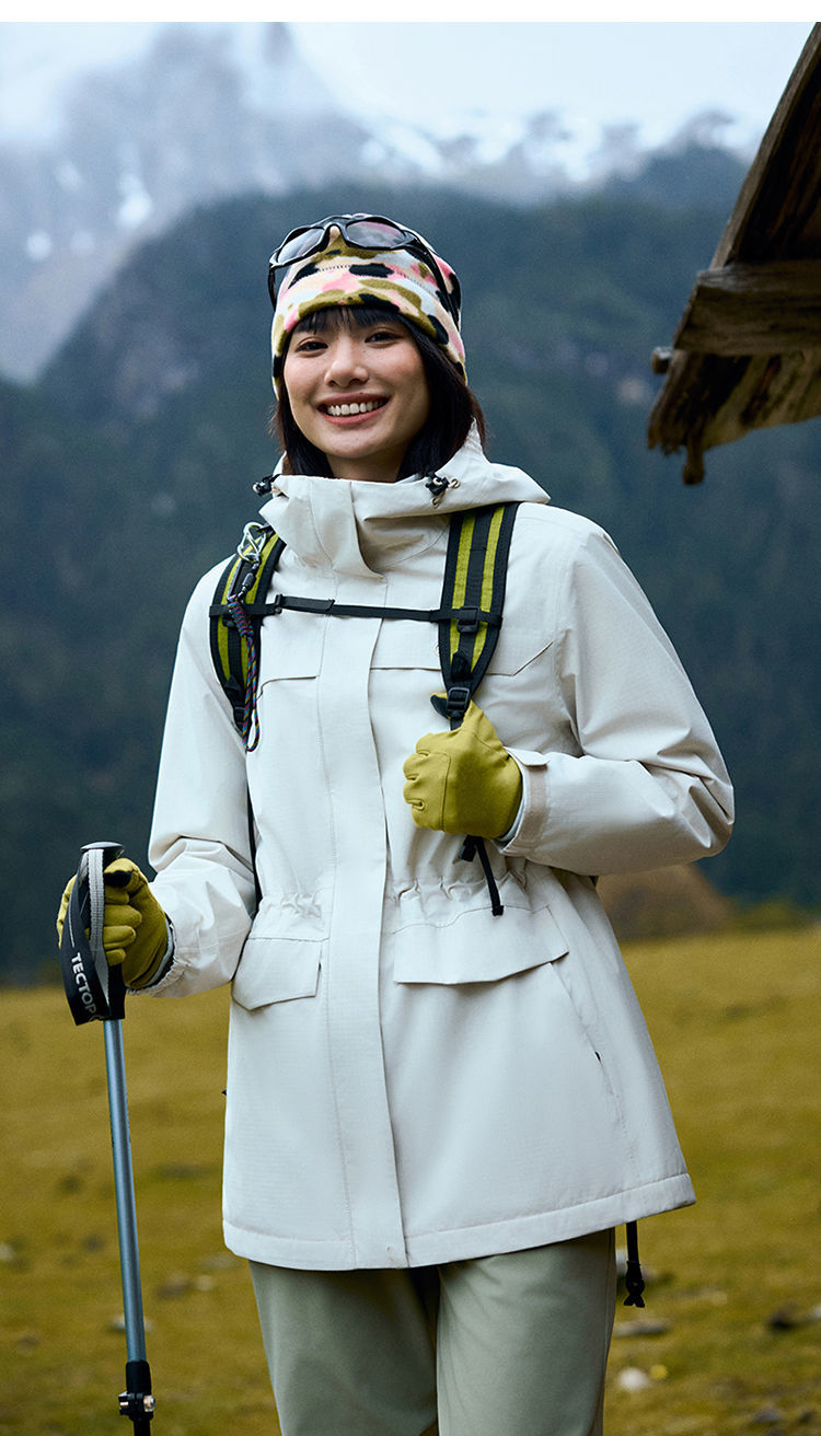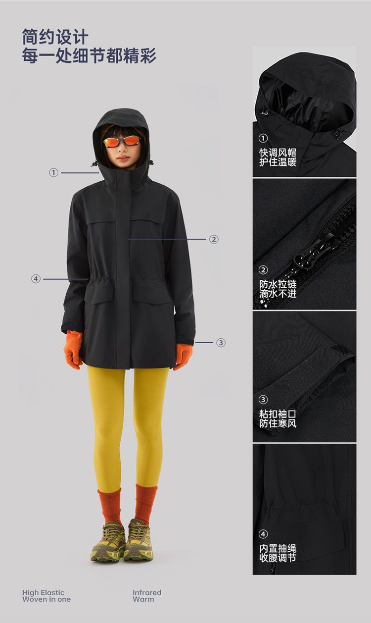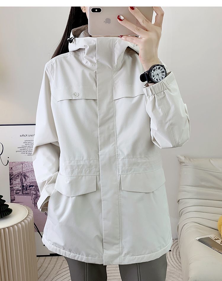 探拓戶外沖鋒衣外套女中長款收腰顯瘦秋冬防風防水保暖加絨登山服