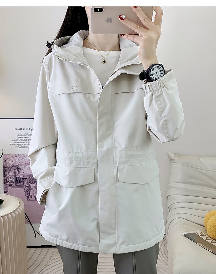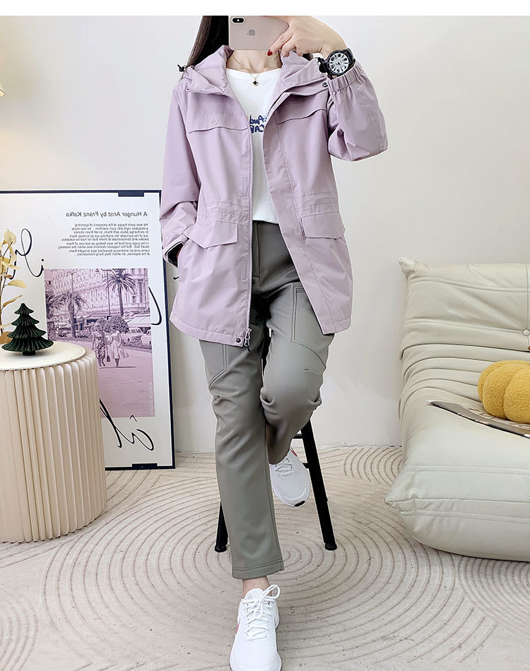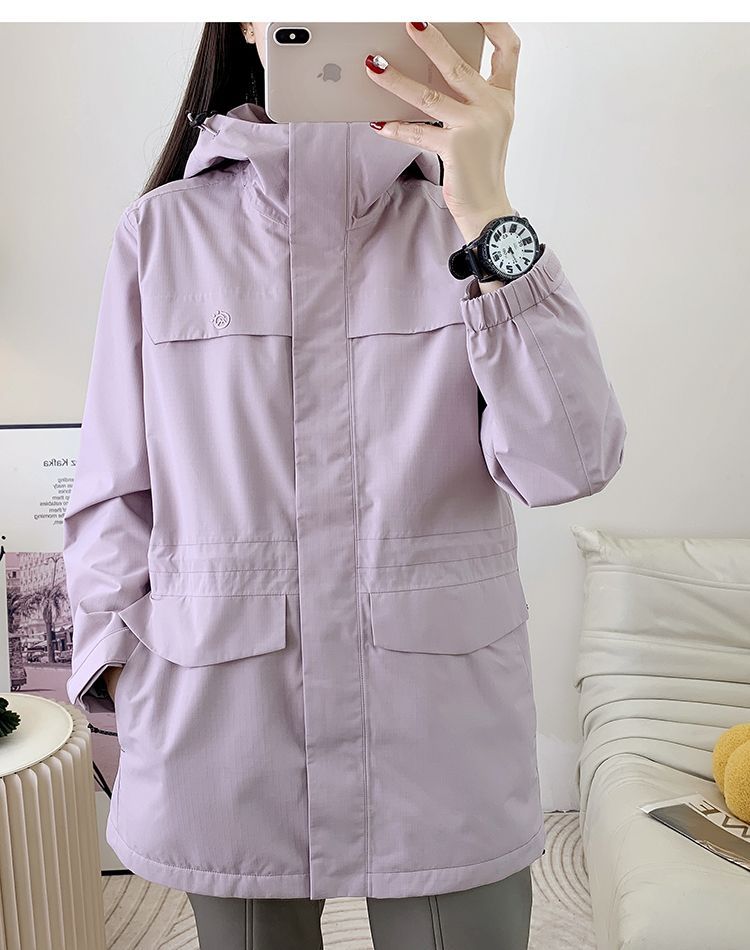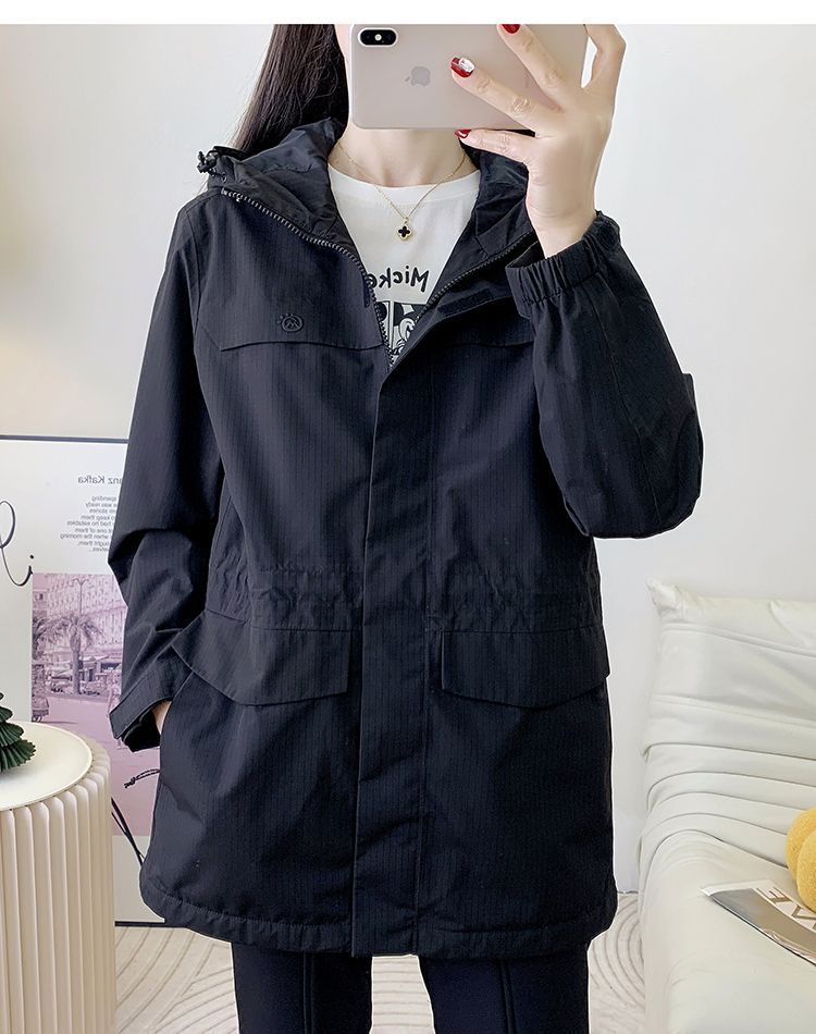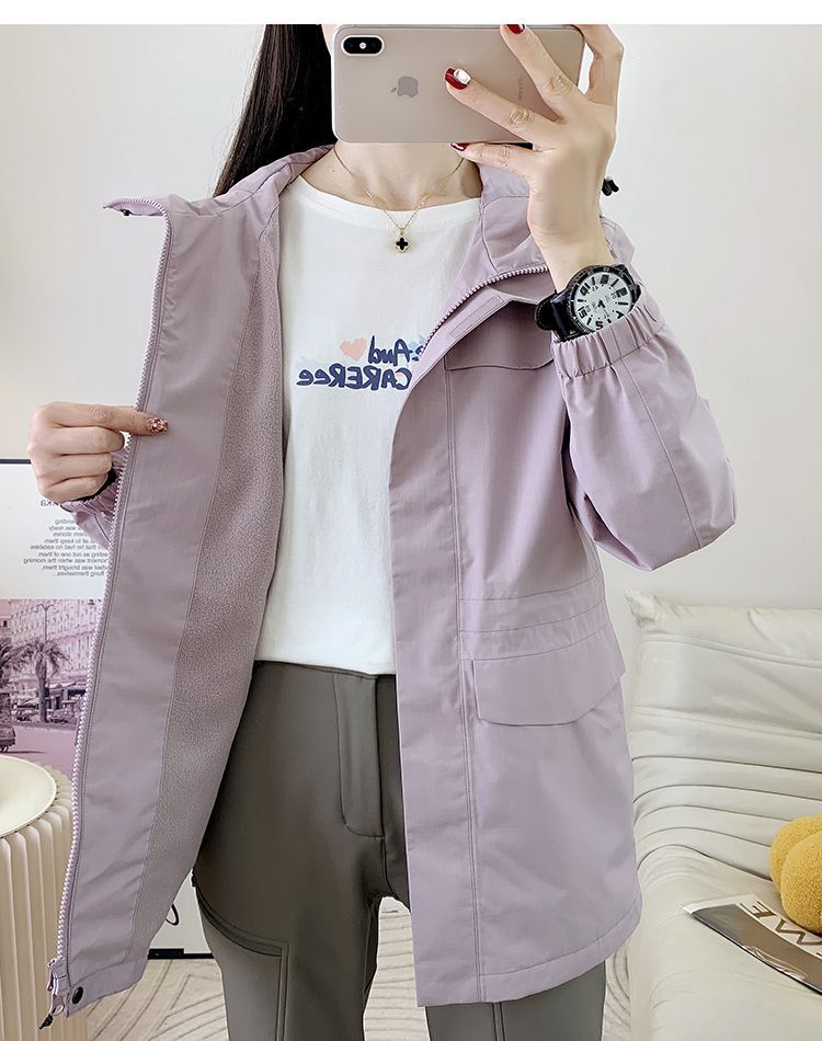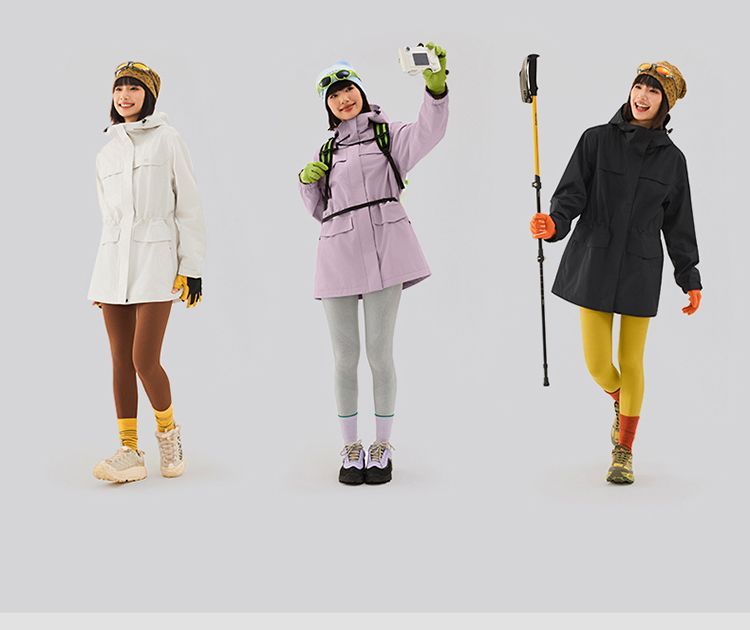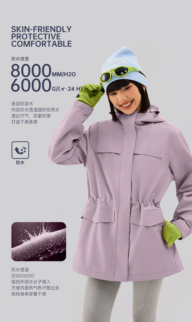 探拓戶外沖鋒衣外套女中長款收腰顯瘦秋冬防風防水保暖加絨登山服