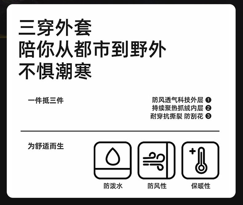 蕉下客戶外三合一沖鋒軟殼春秋冬季戶外加絨保暖防風登山服外套男