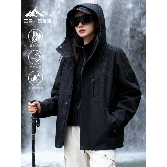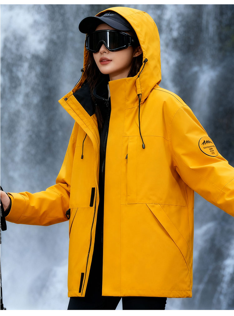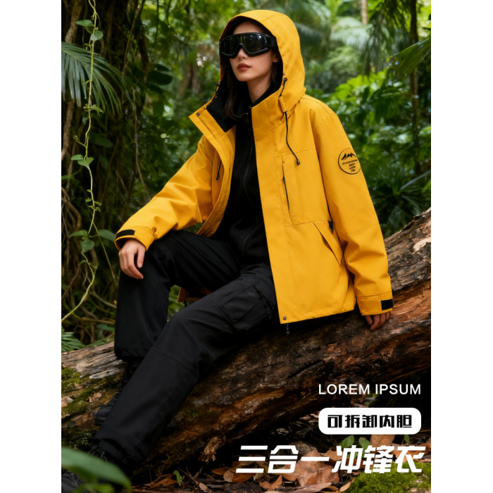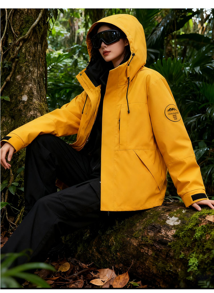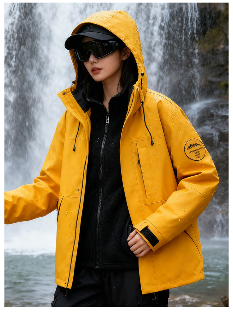 沖鋒衣女2025新款防風防水三合一登山戶外旅行外套男女款黃色上衣