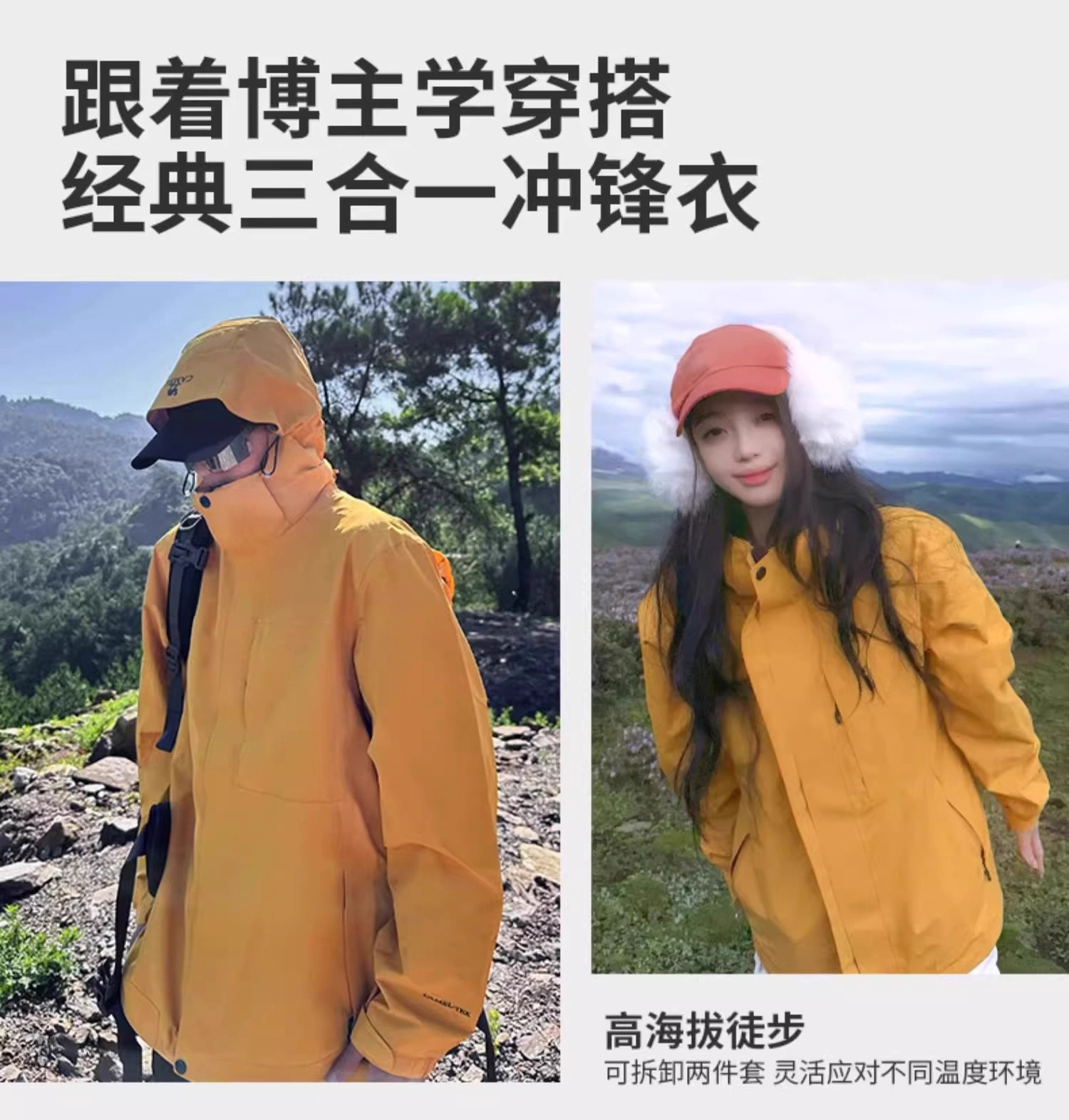 唐獅集團DESSO沖鋒衣女款春秋季2025新款戶外三合一防風防水外套