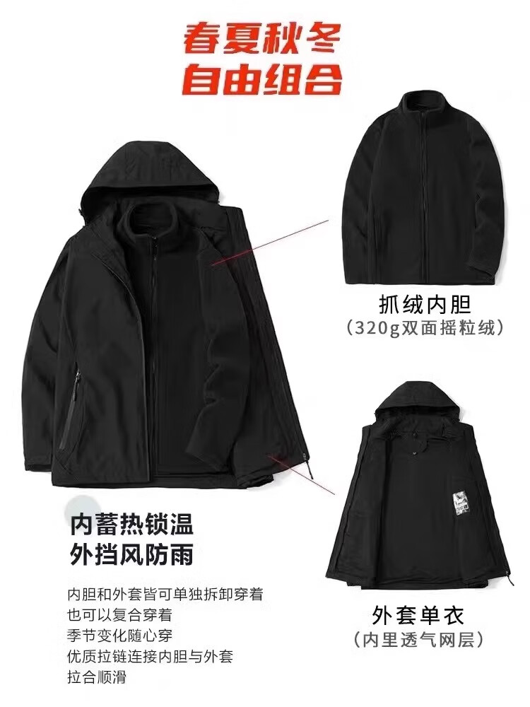 2025新款沖鋒衣男士防風大碼秋季戶外運動夾克三合一風衣連帽外套