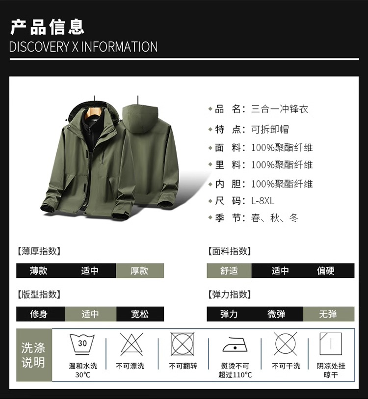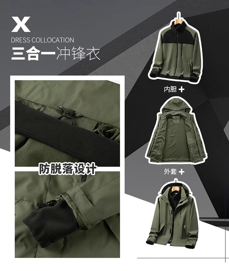NASA加肥加大男士沖鋒衣外套加絨三合一特大碼300斤可穿8XL青少年