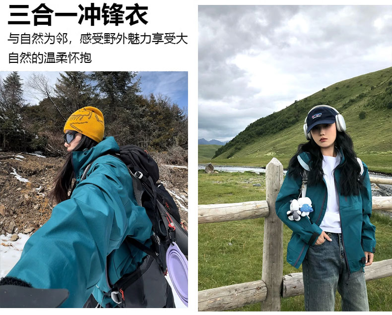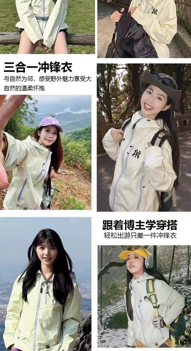 奧萊沖鋒衣女2025新款小個子三合一外套爬山穿搭戶外防水登山服男