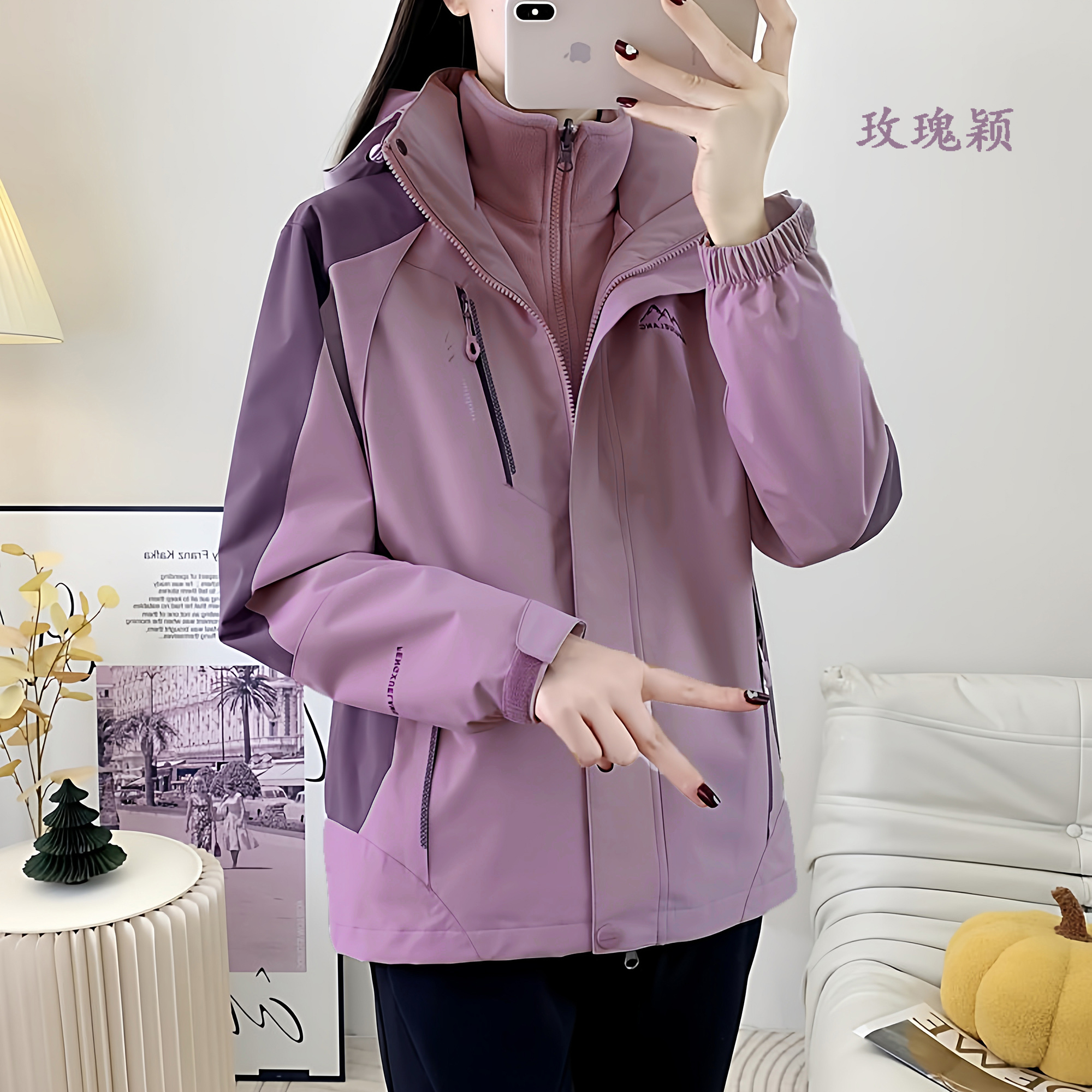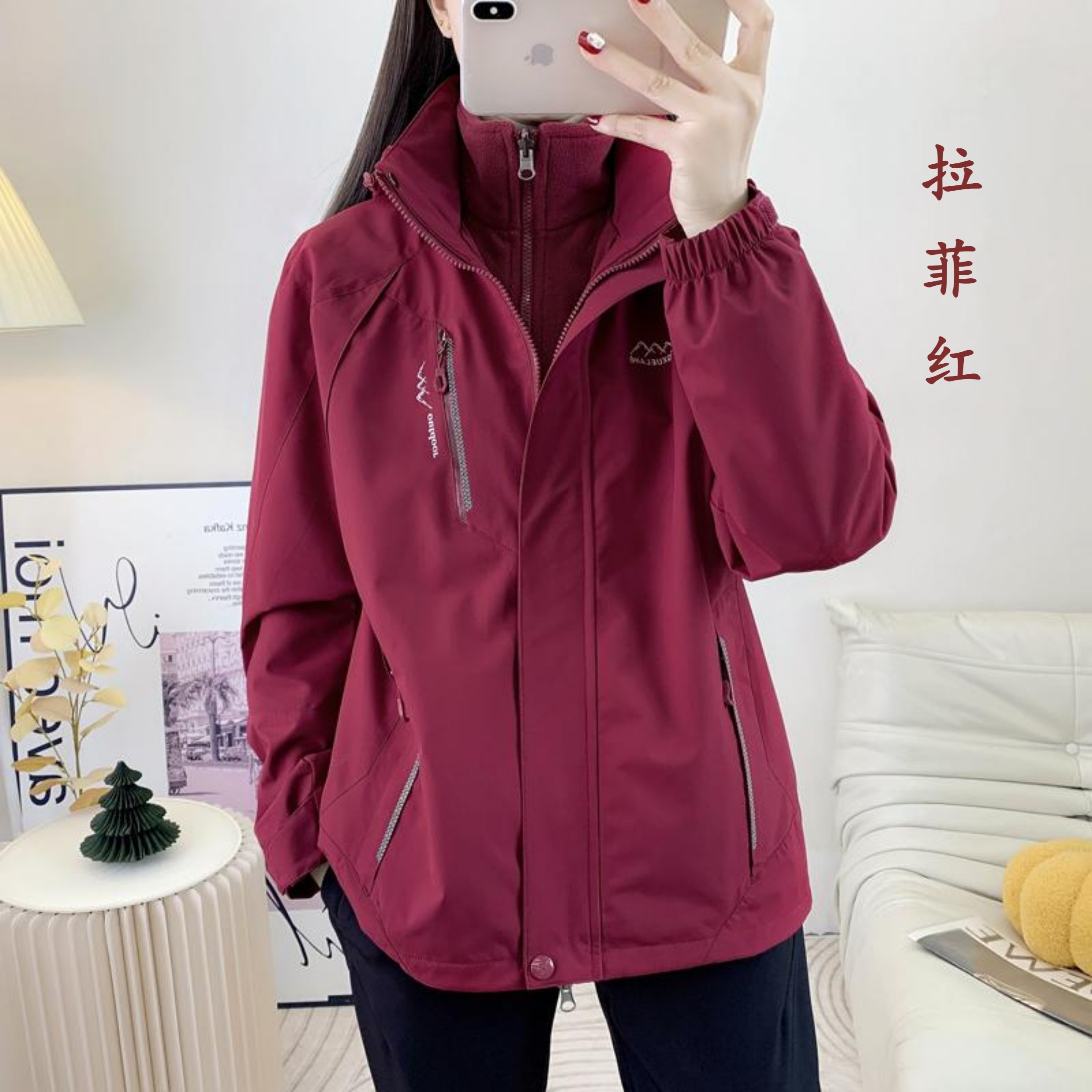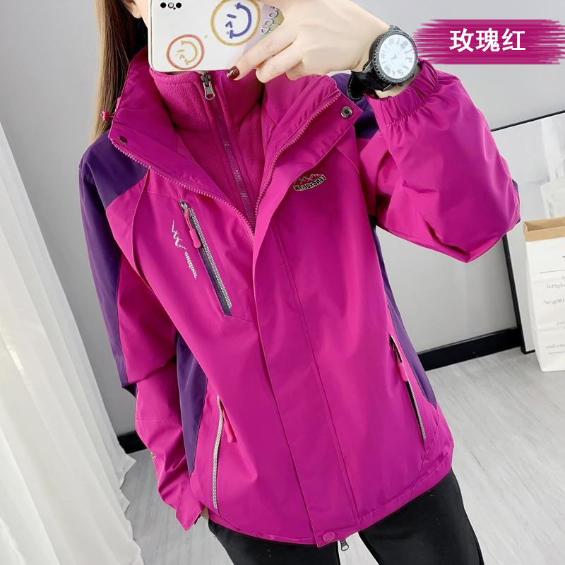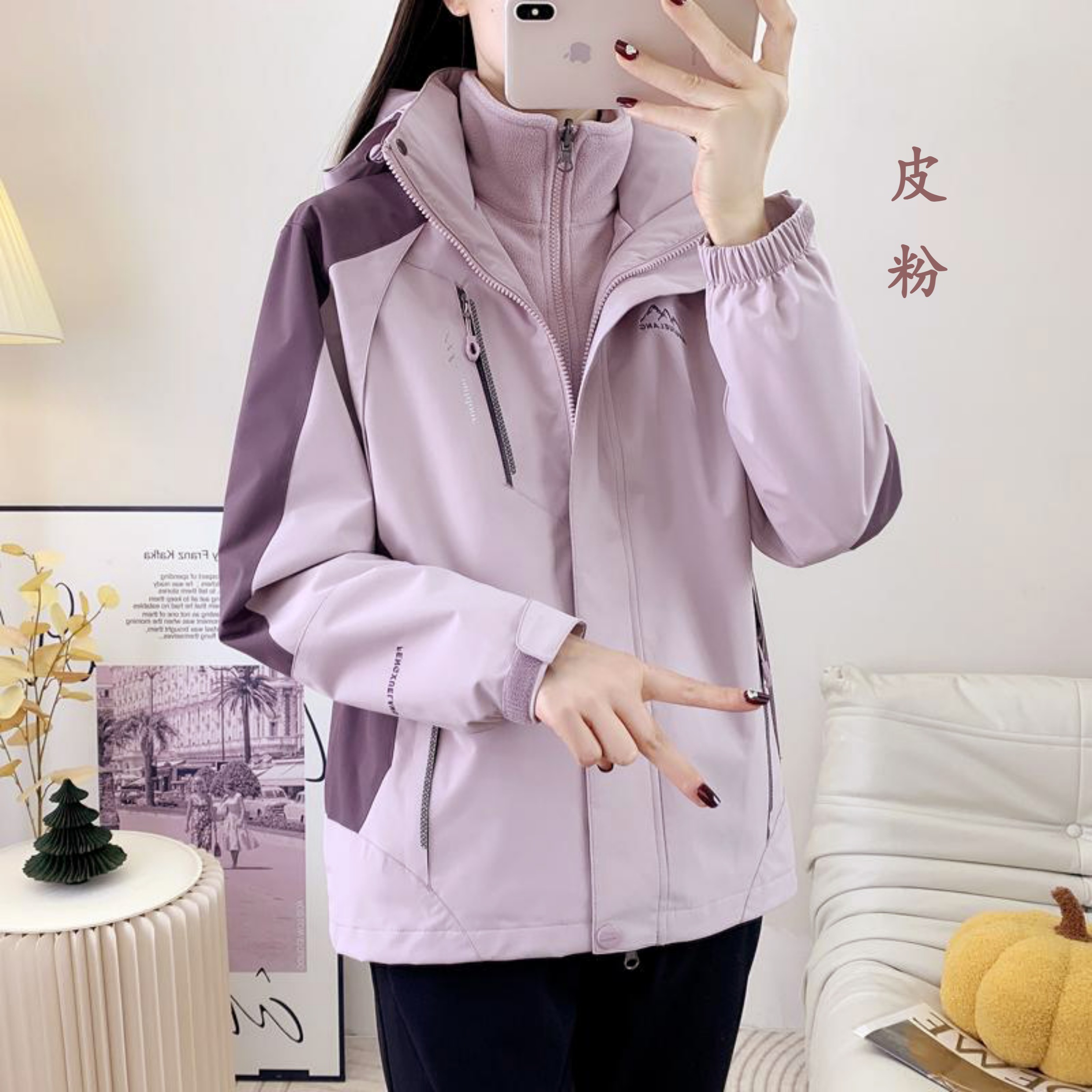沖鋒衣三合一女冬季加絨加厚中老年可拆卸抓絨衣媽媽外套登山服男