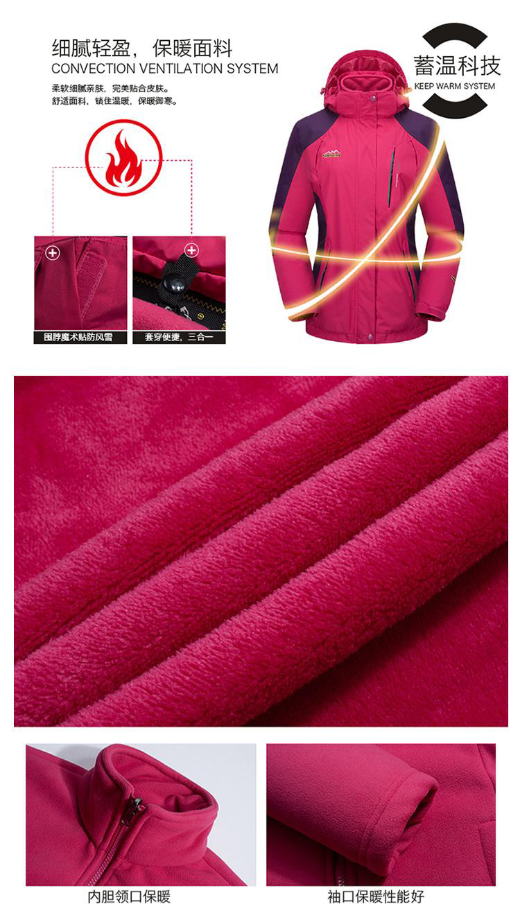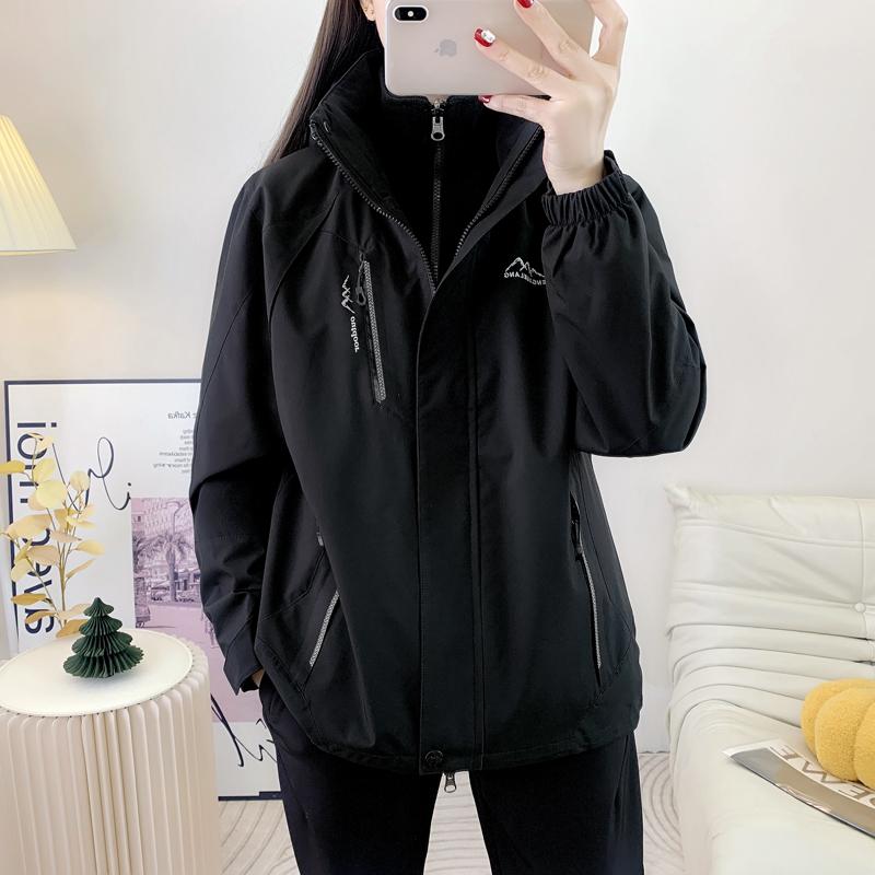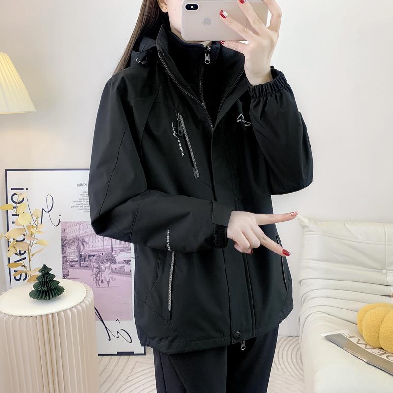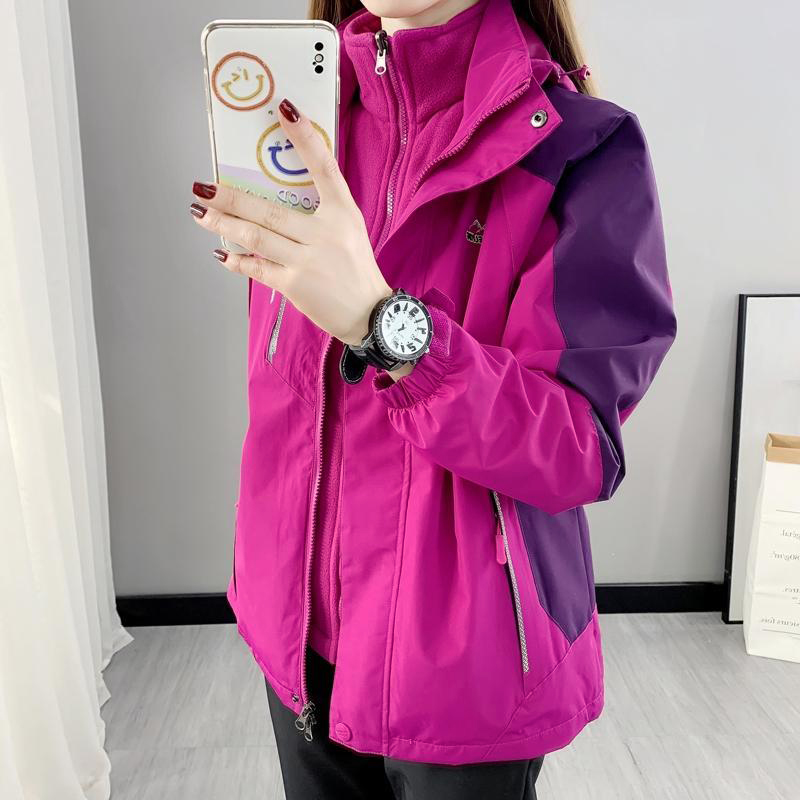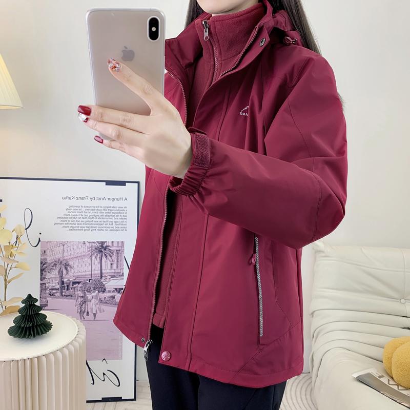 沖鋒衣三合一女冬季加絨加厚中老年可拆卸抓絨衣媽媽外套登山服男