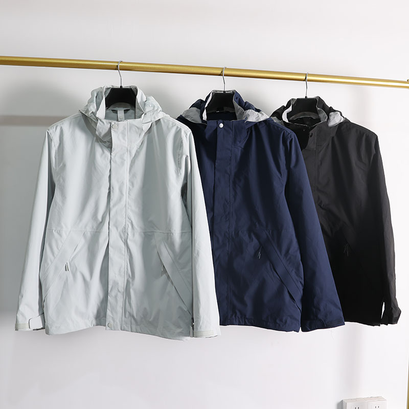 戶外防風防水透氣沖鋒衣男 三合一單外殼連帽徒步登山服j93