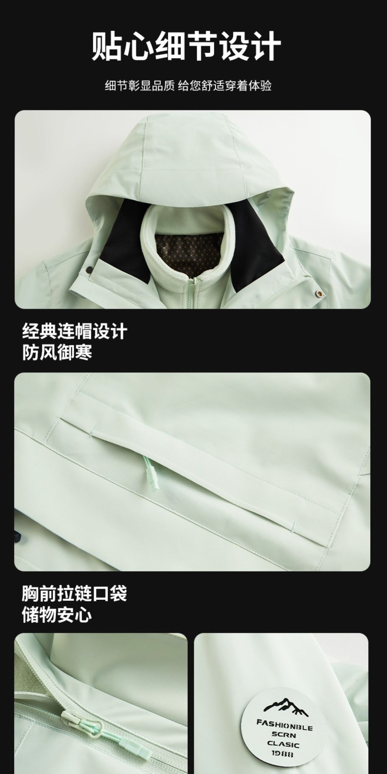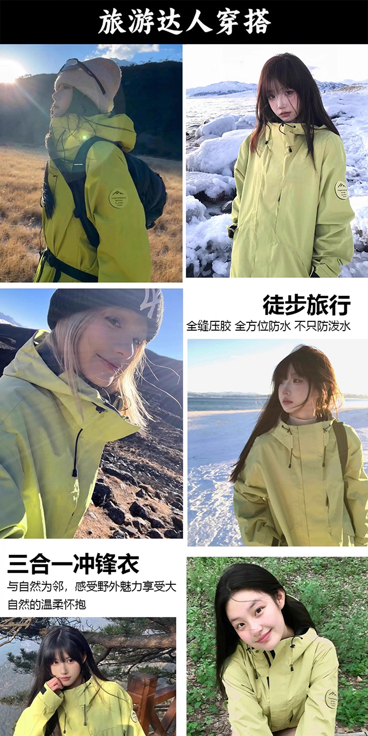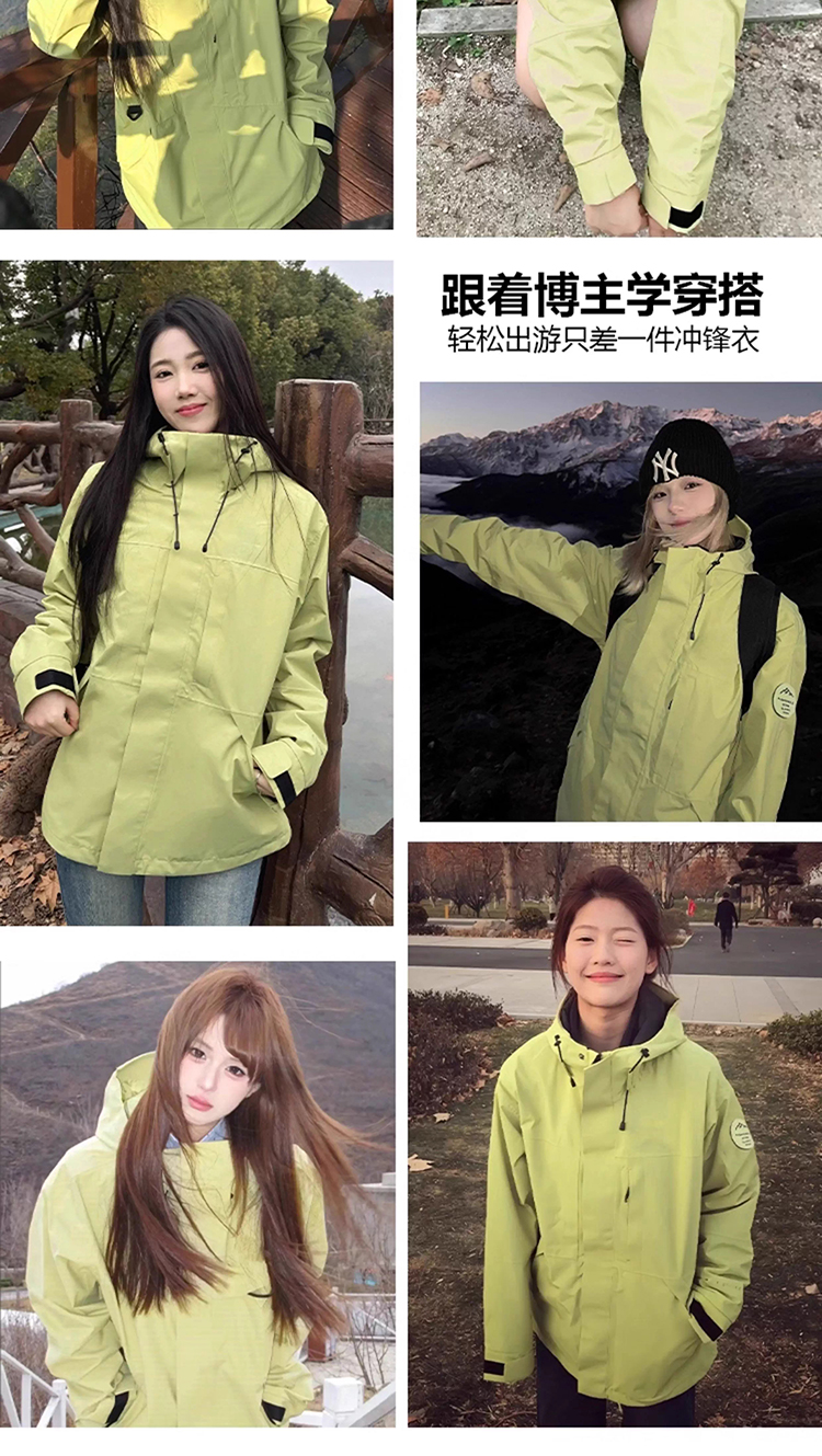 唐獅集團DESSO青果綠沖鋒衣女款春秋季戶外三合一川西情侶外套男