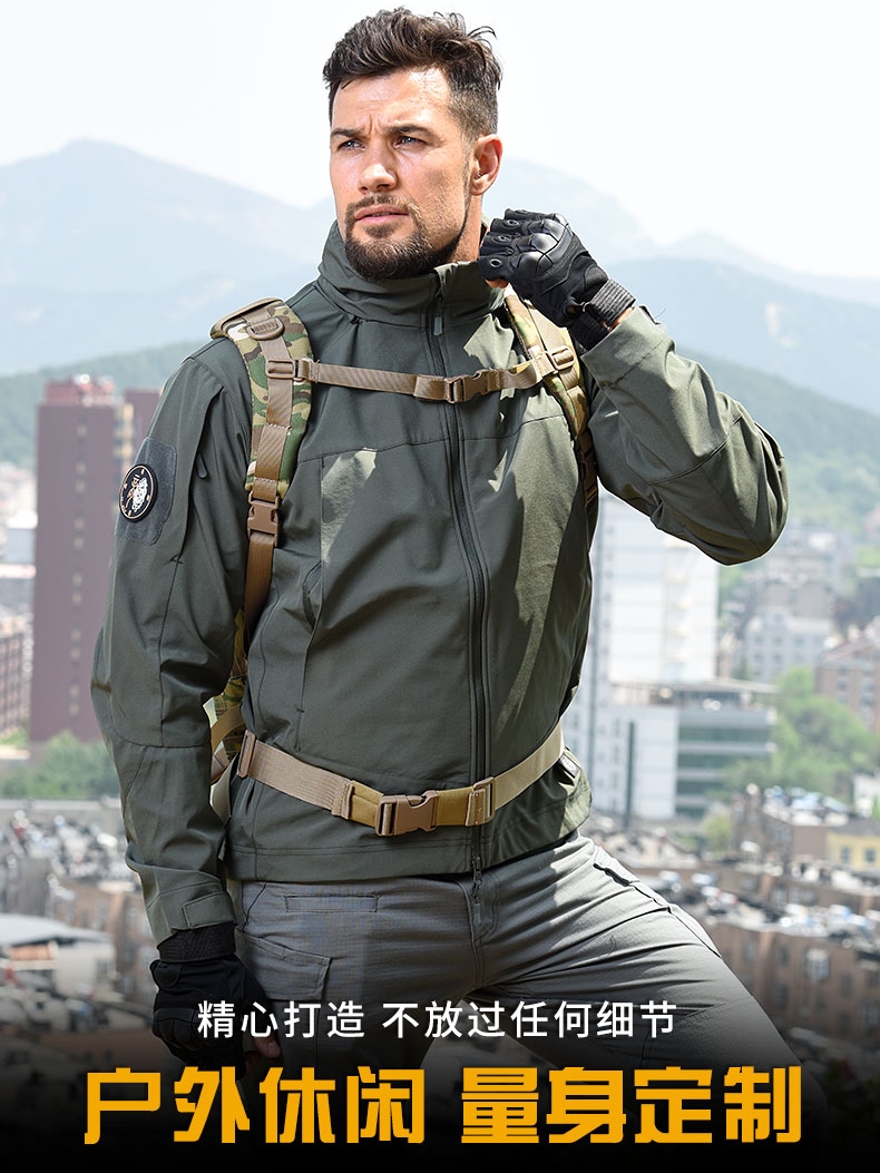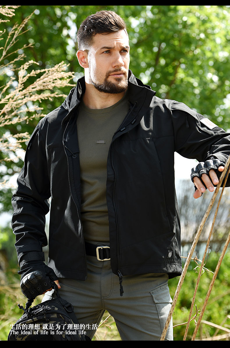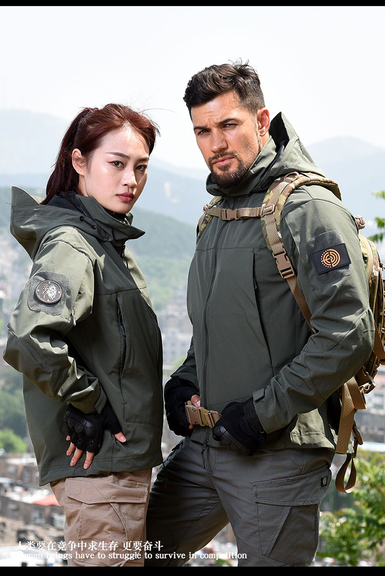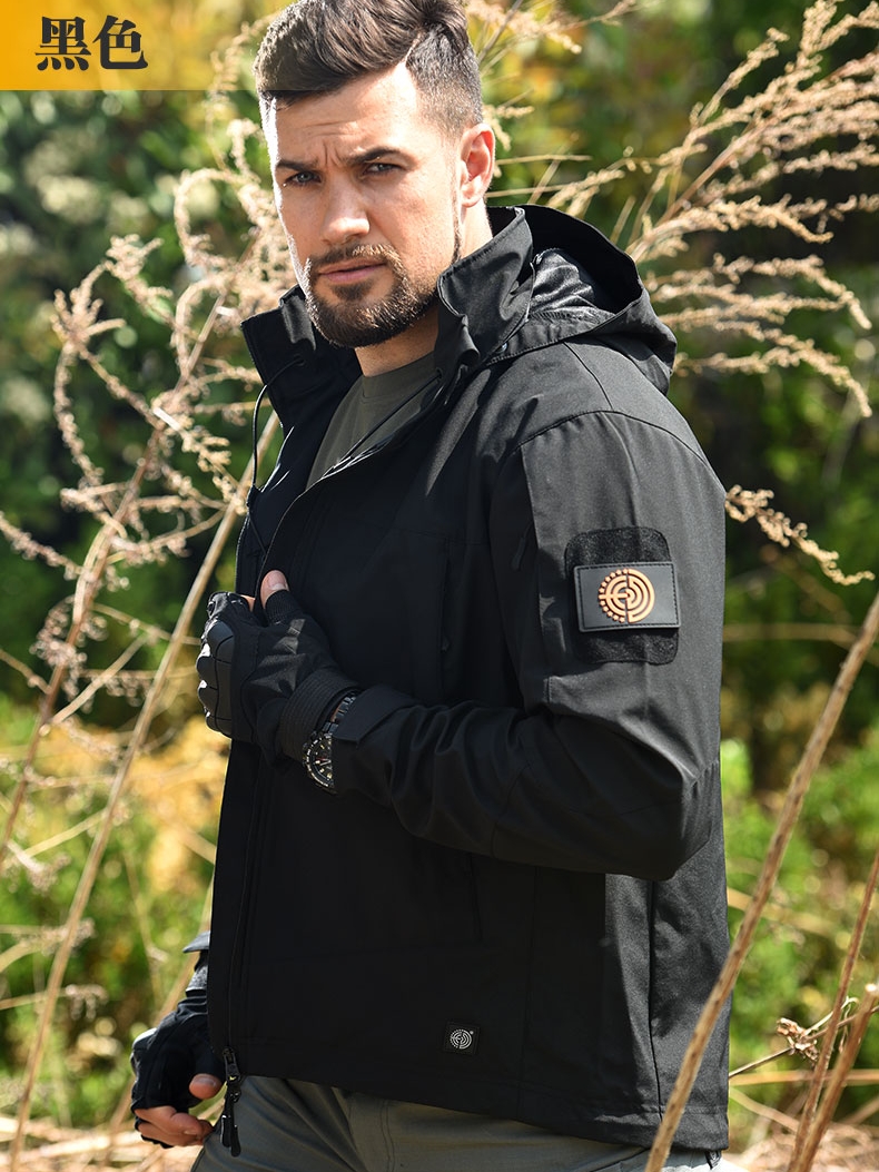 戶外輕量化軟殼外套男女 防風防雨水加絨黑色保暖沖鋒衣戰術迷彩