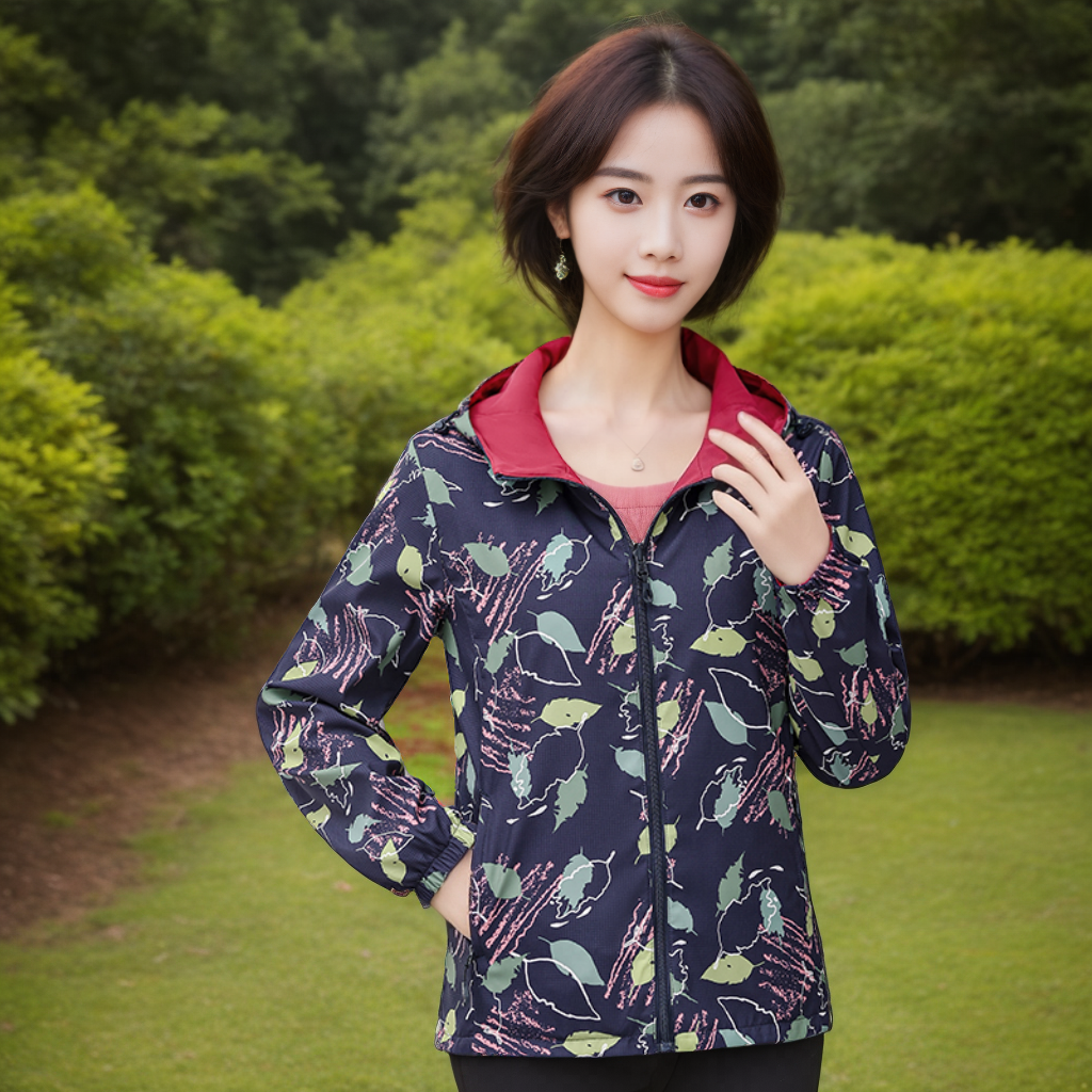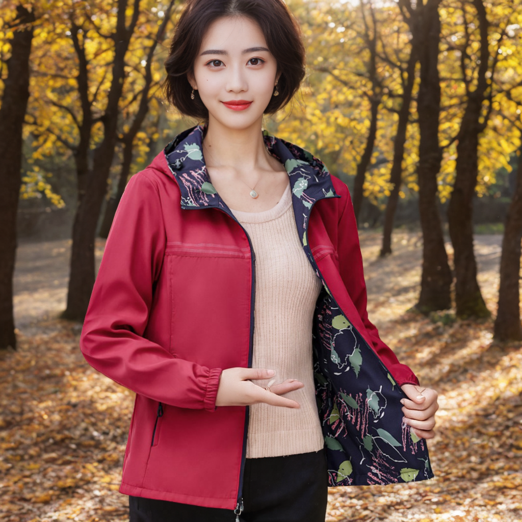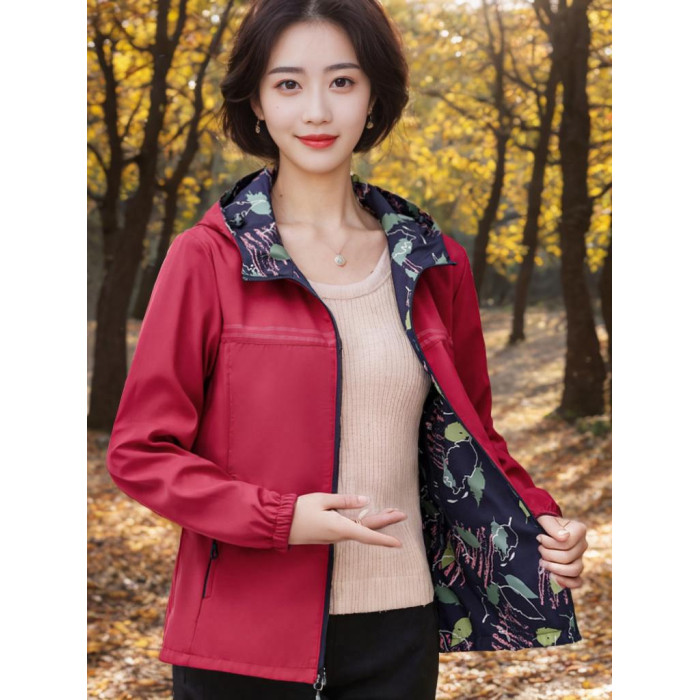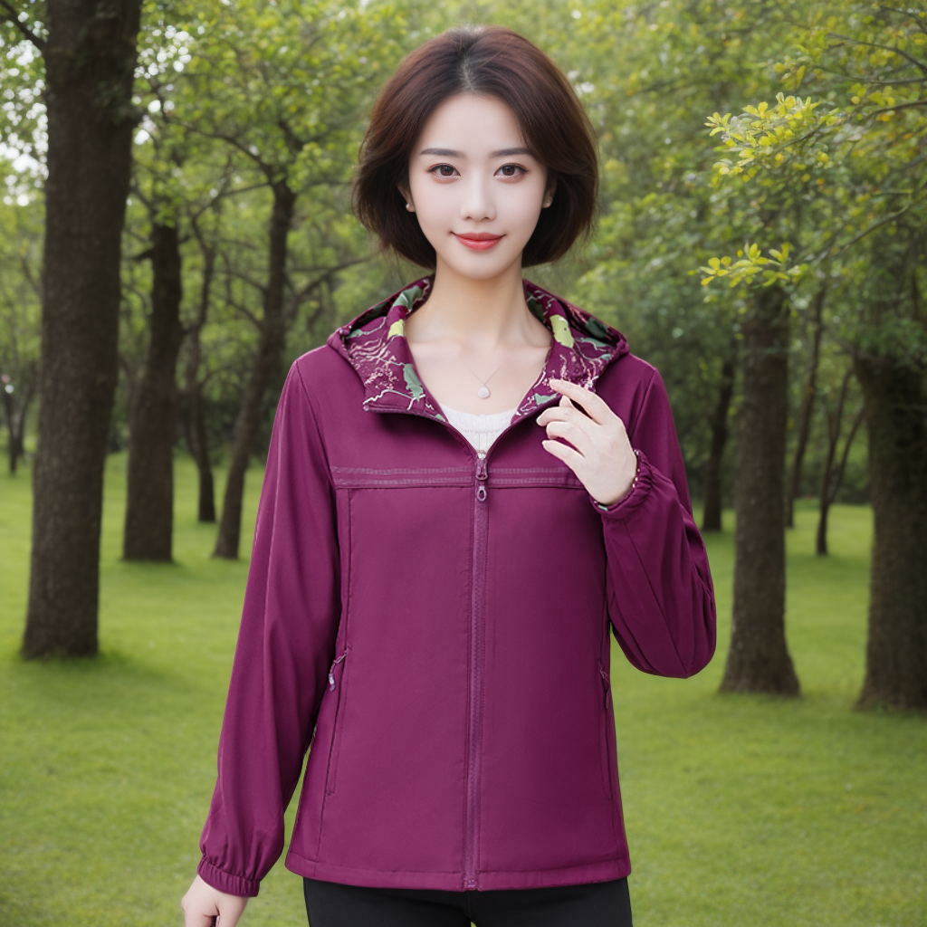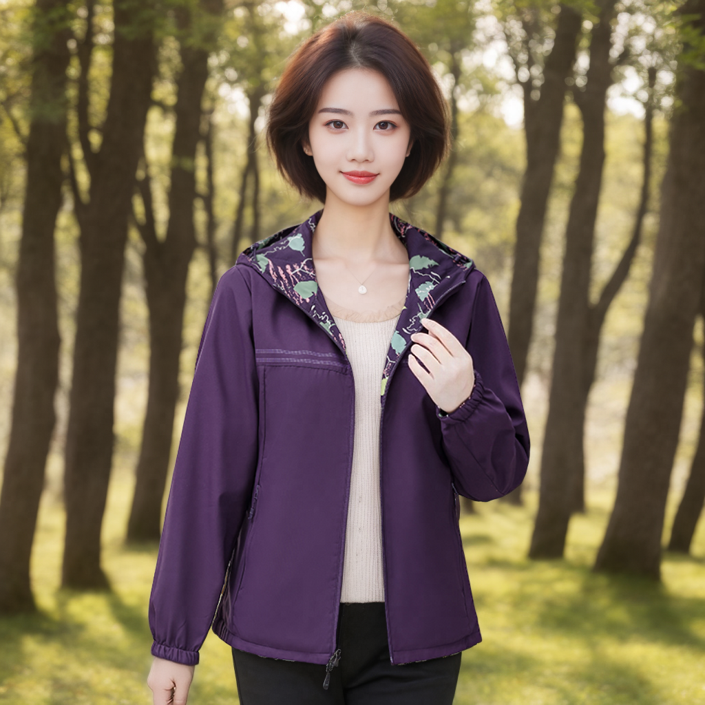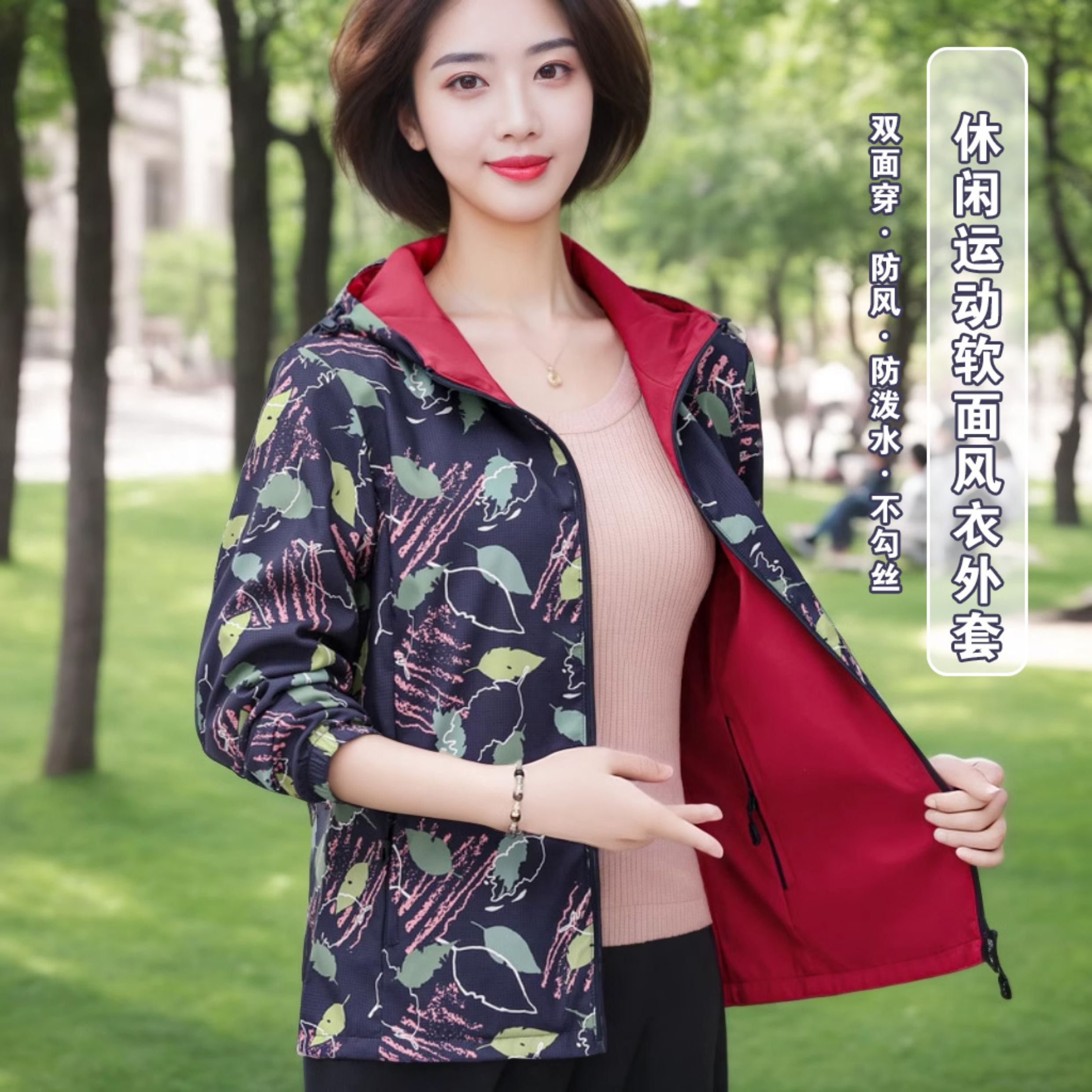 春秋季雙面穿連帽外套女休閒戶外旅遊沖鋒衣媽媽裝防風登山軟殼衣