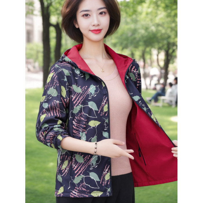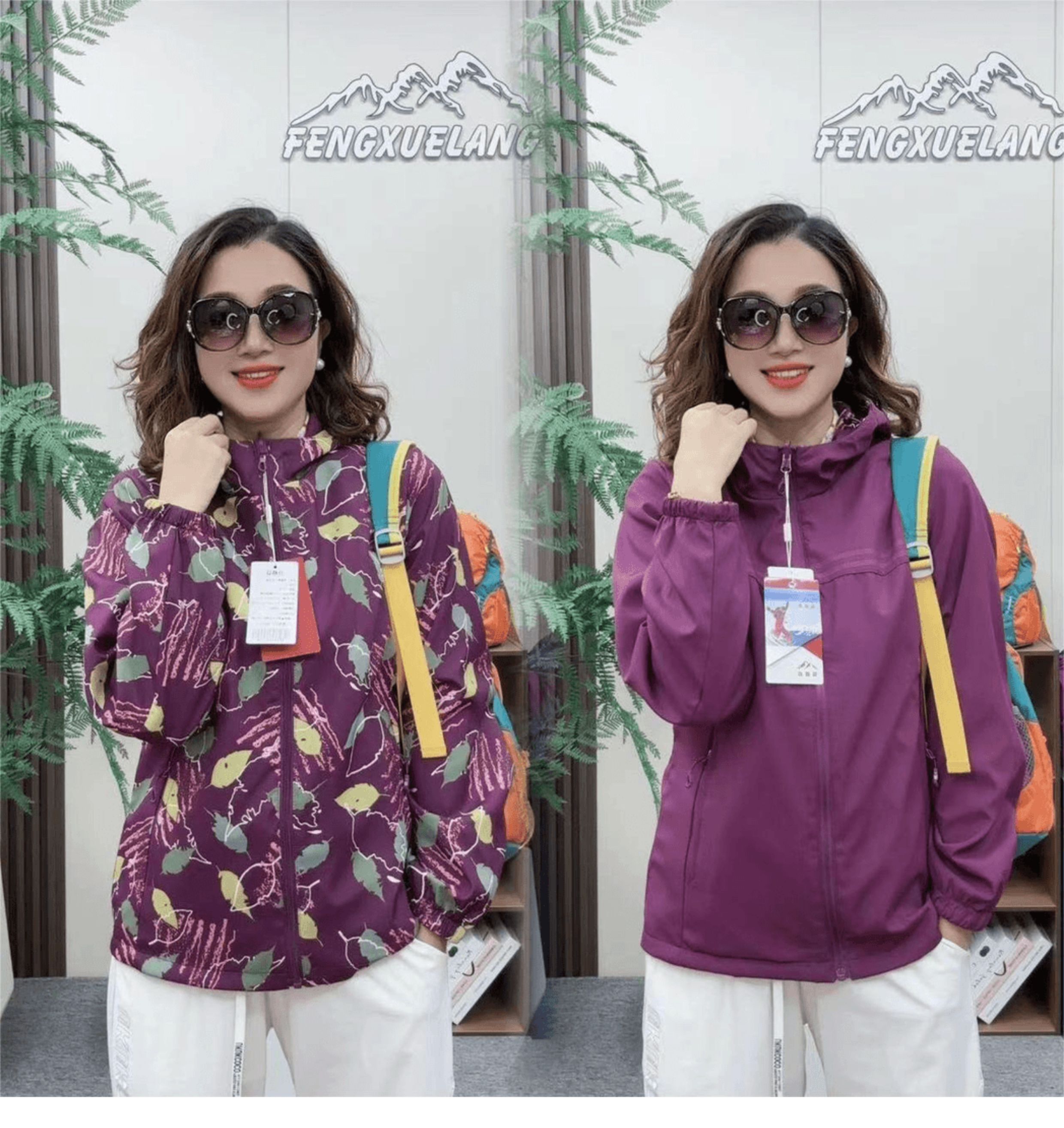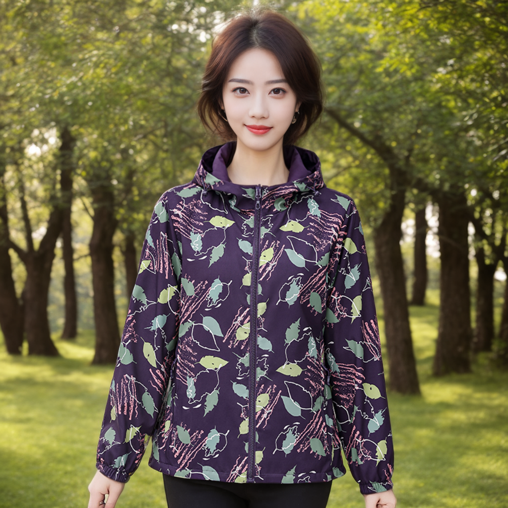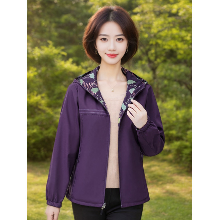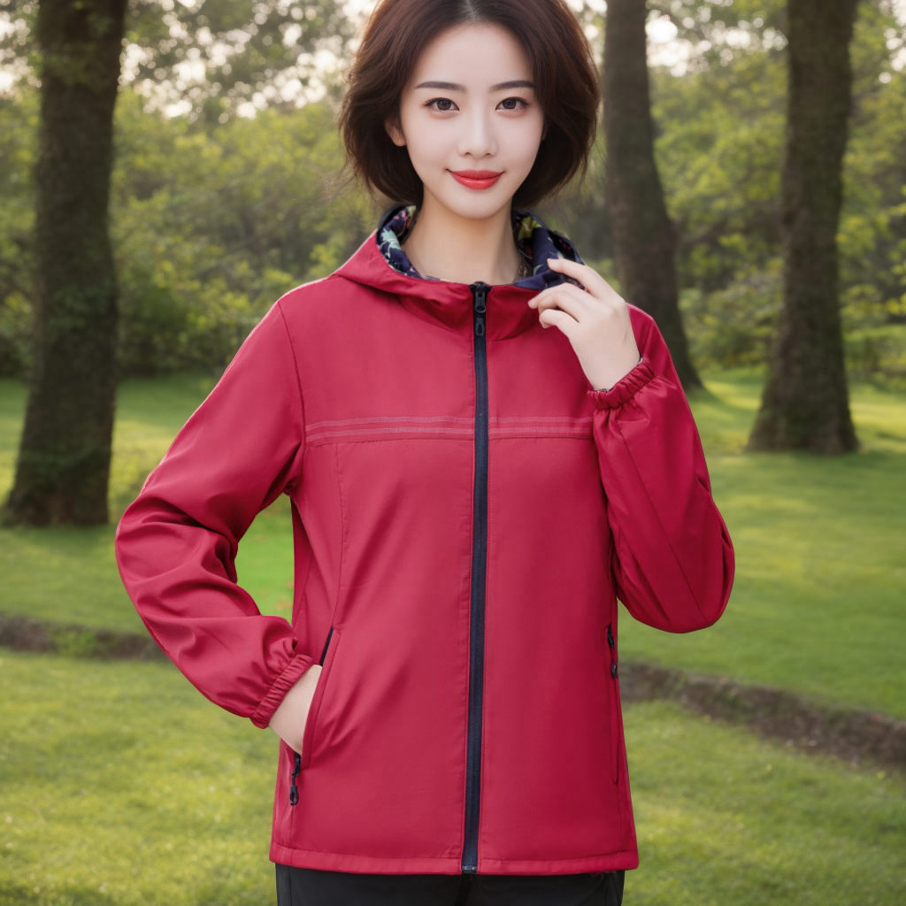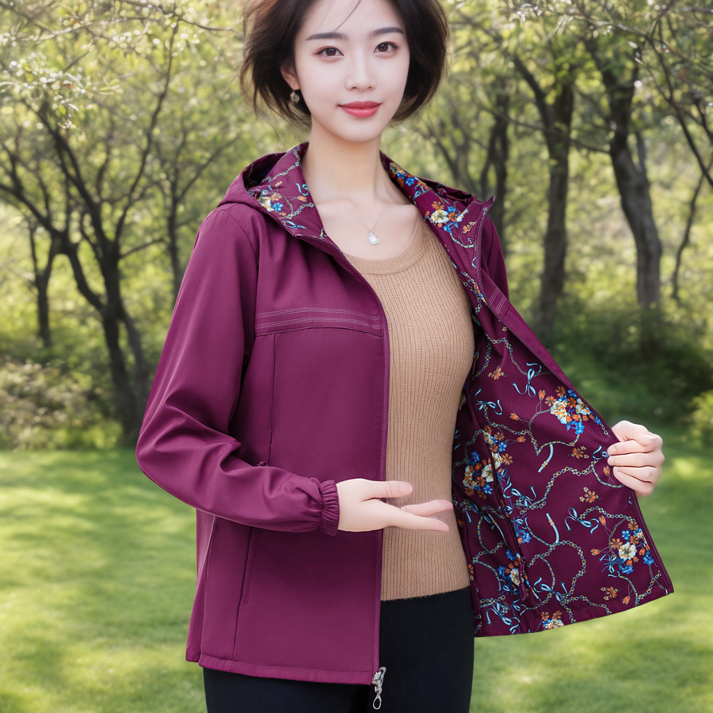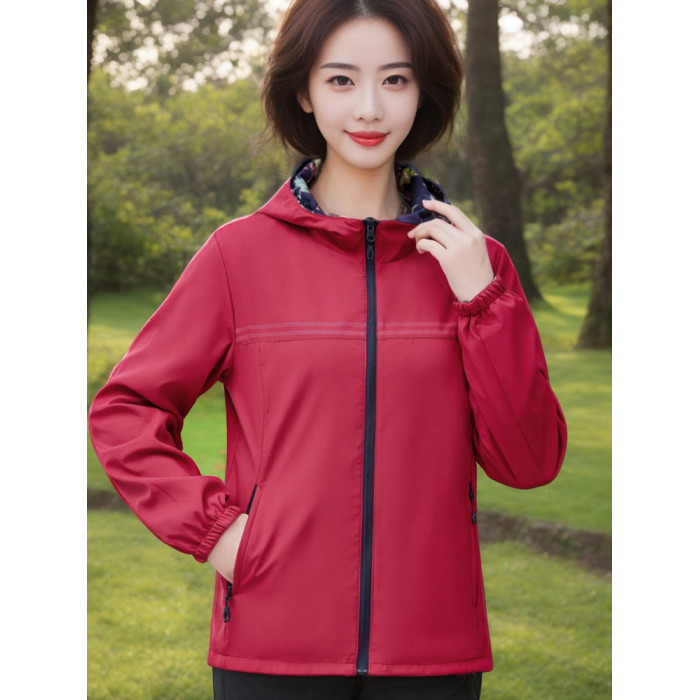 春秋季雙面穿連帽外套女休閒戶外旅遊沖鋒衣媽媽裝防風登山軟殼衣
