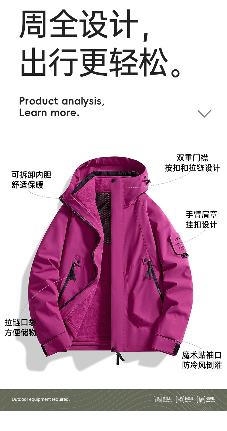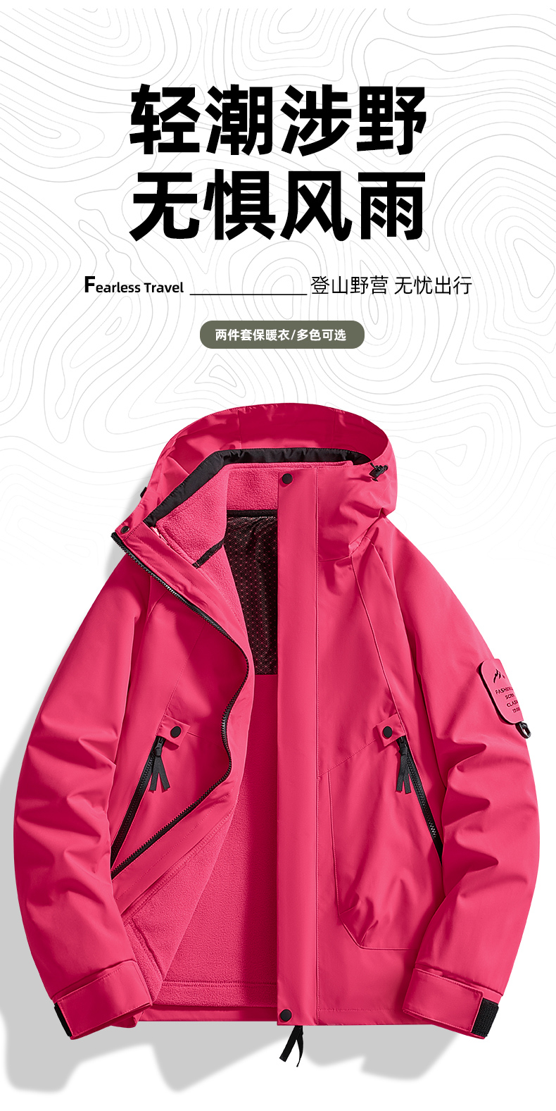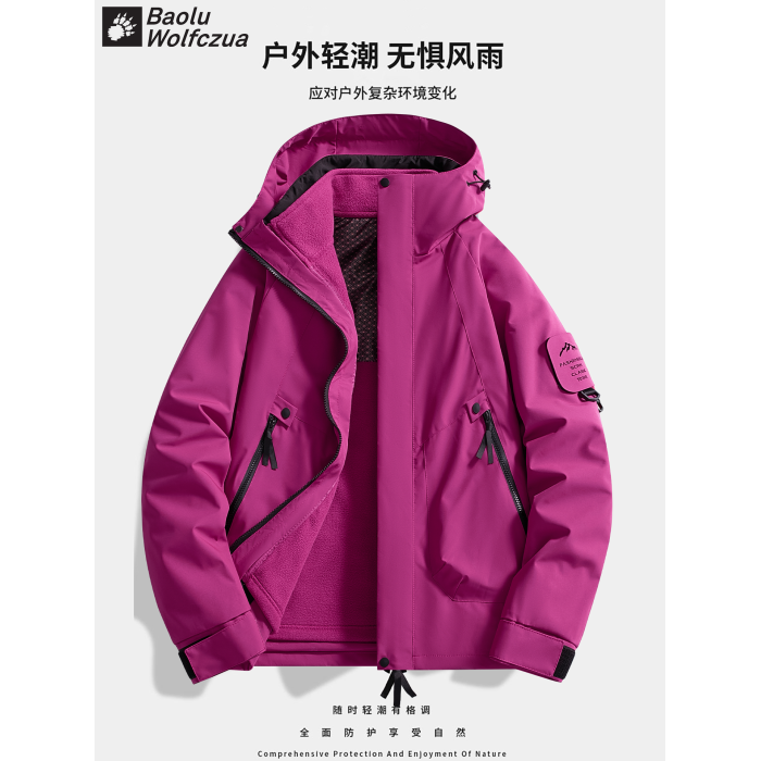 沖鋒衣女三合一可拆卸內膽秋冬加絨加厚保暖登山戶外防風防水外套