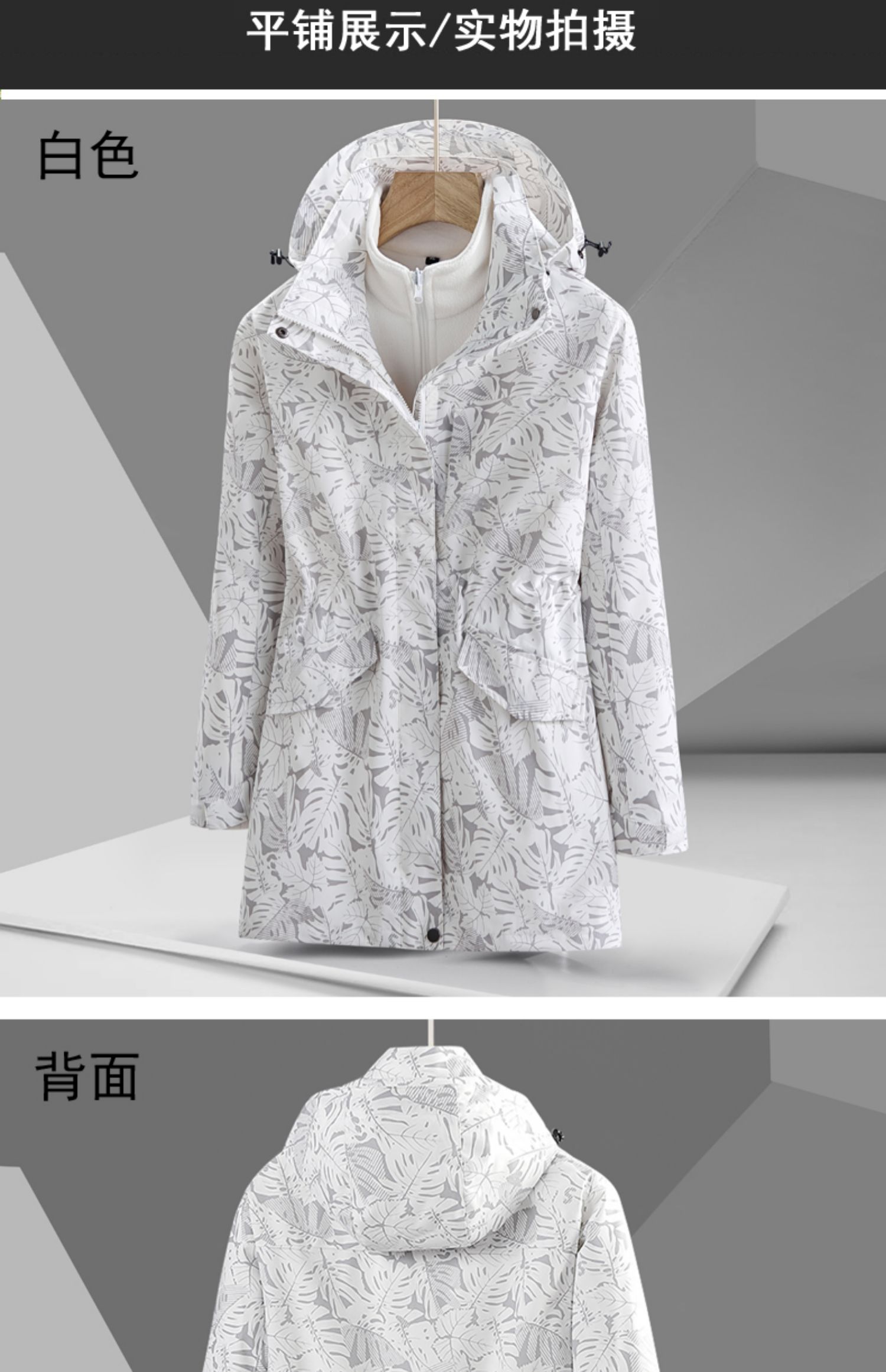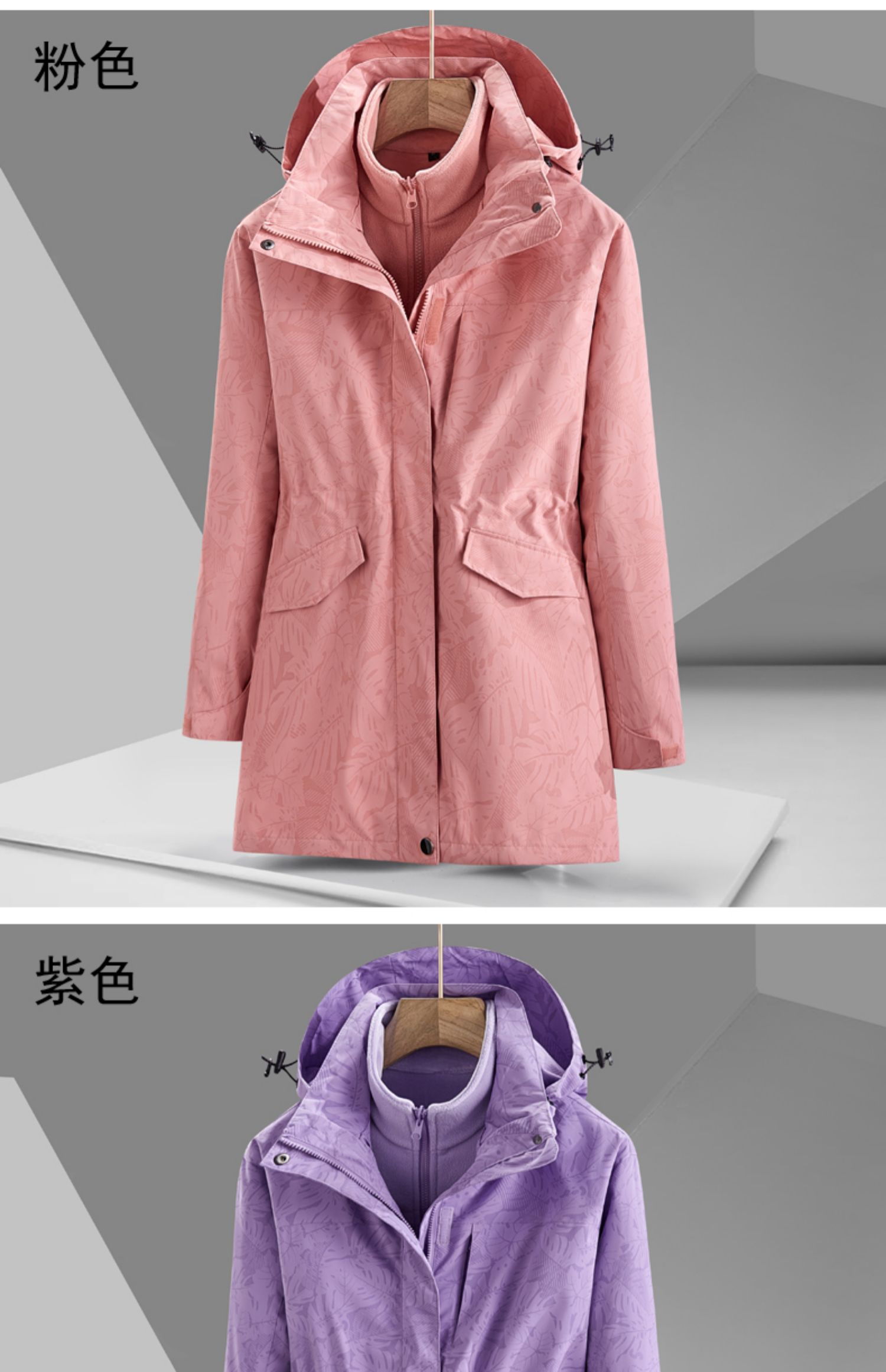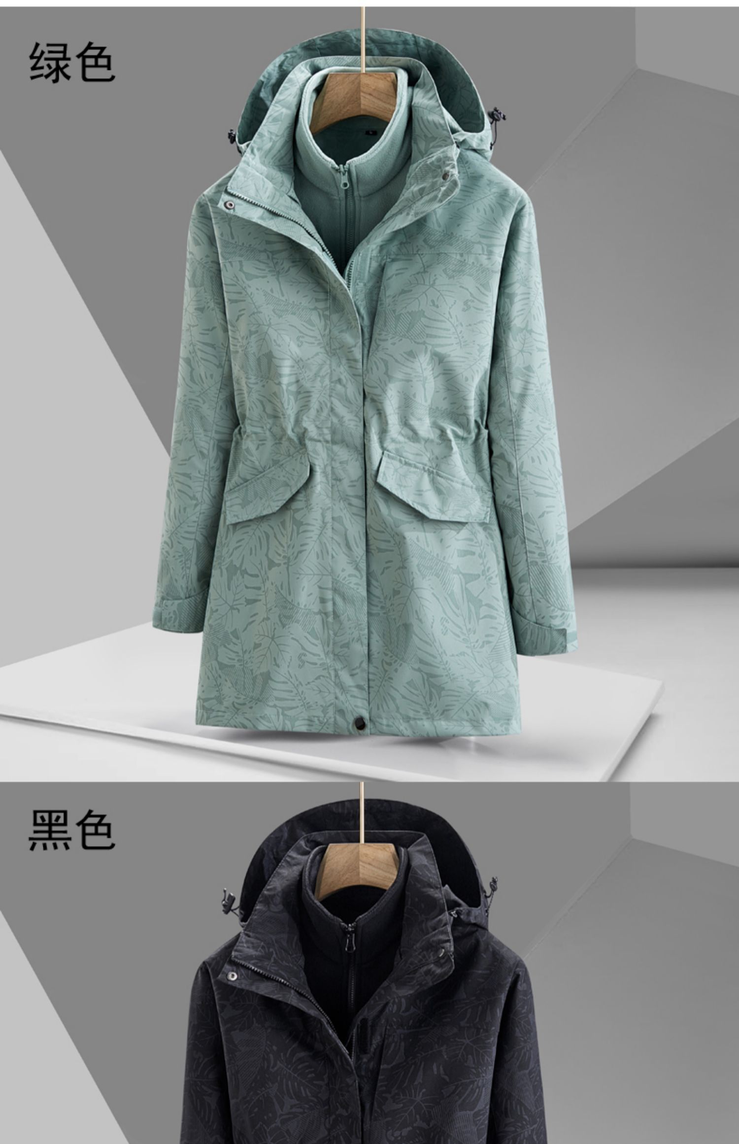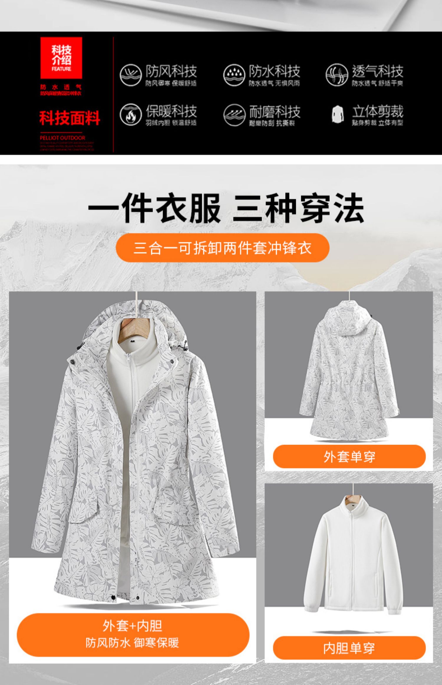 啄木鳥迷彩沖鋒衣女中長款2025冬季新款三合一可拆卸兩件套戶外潮