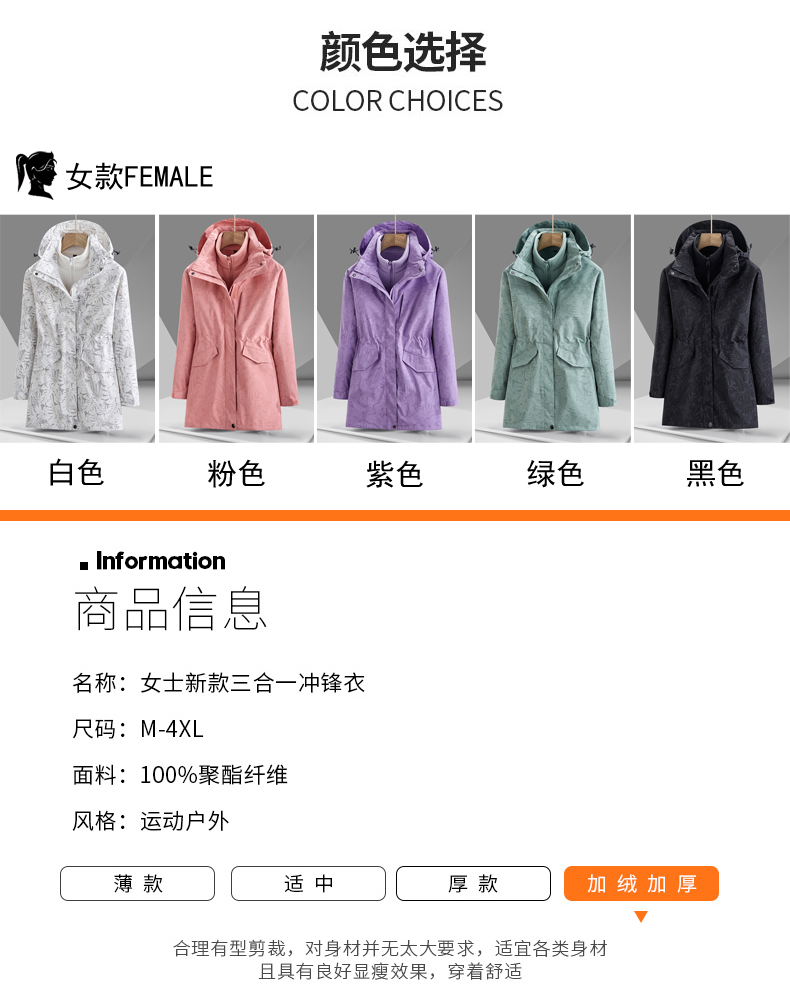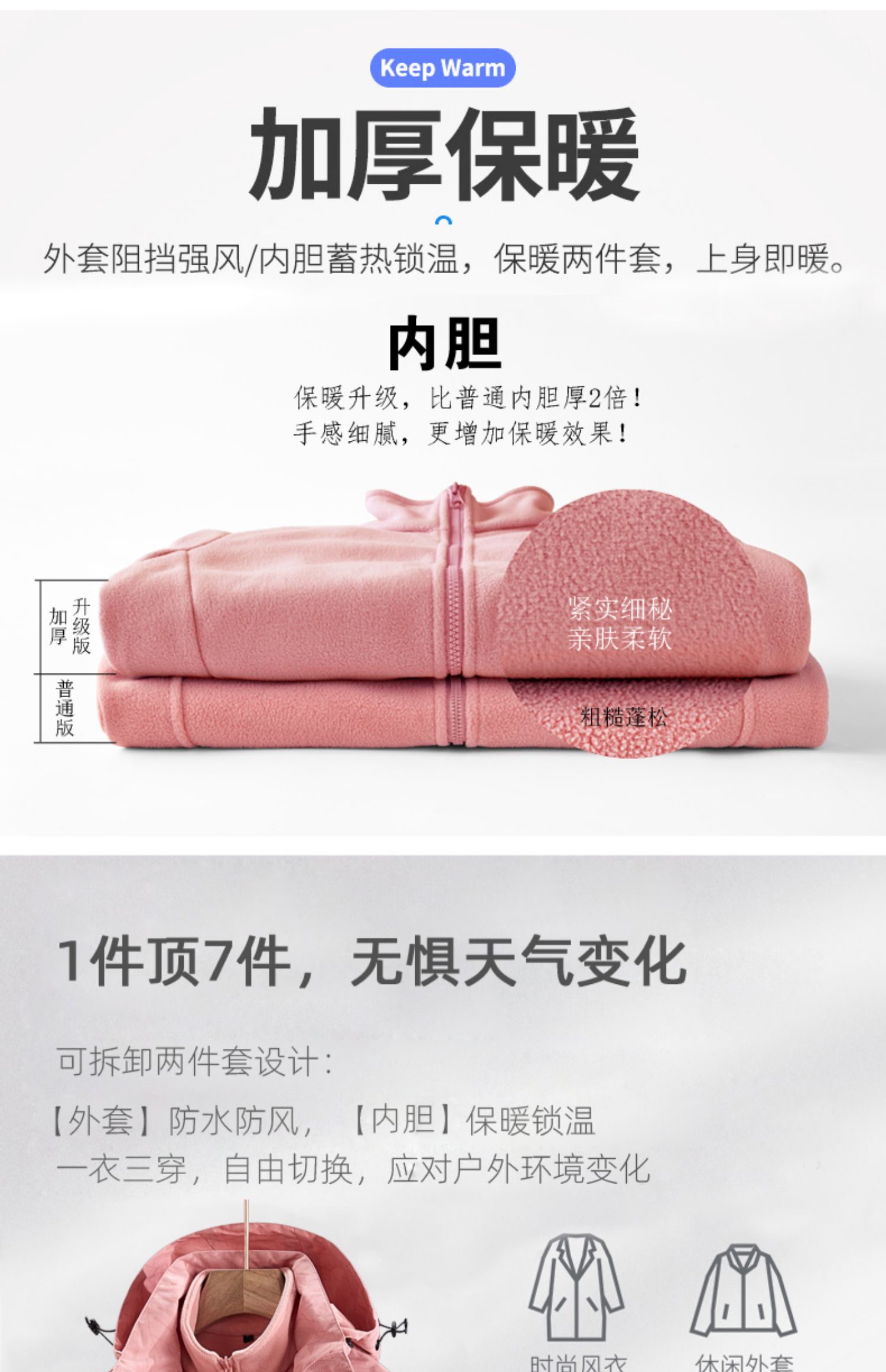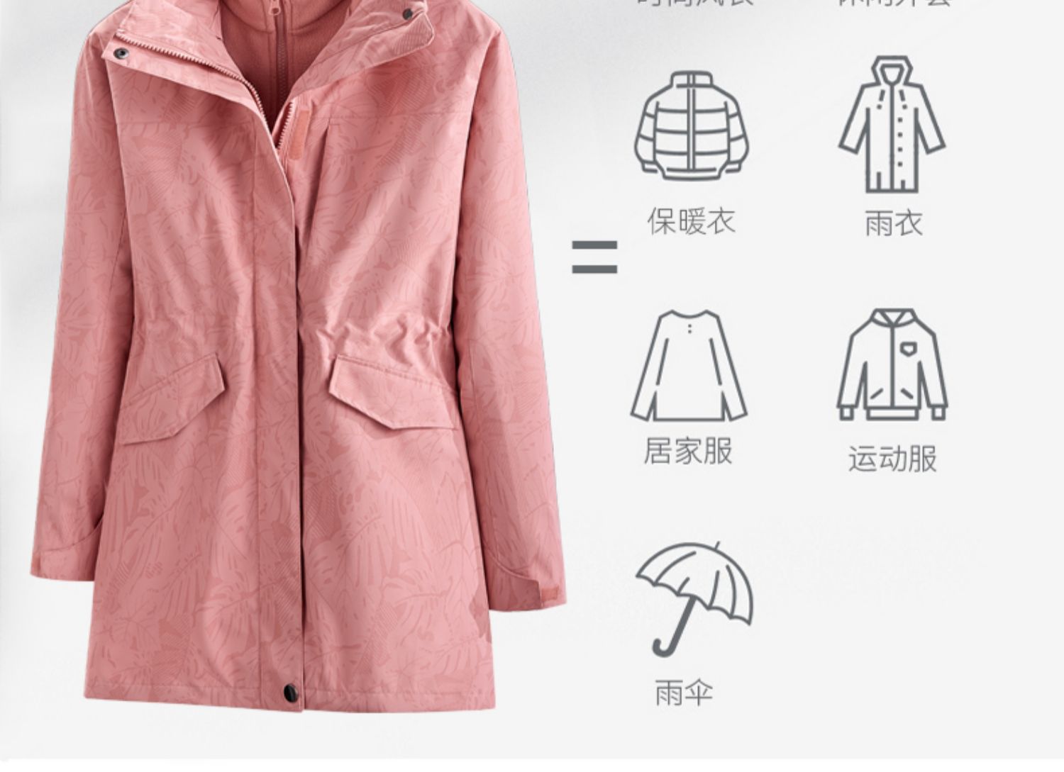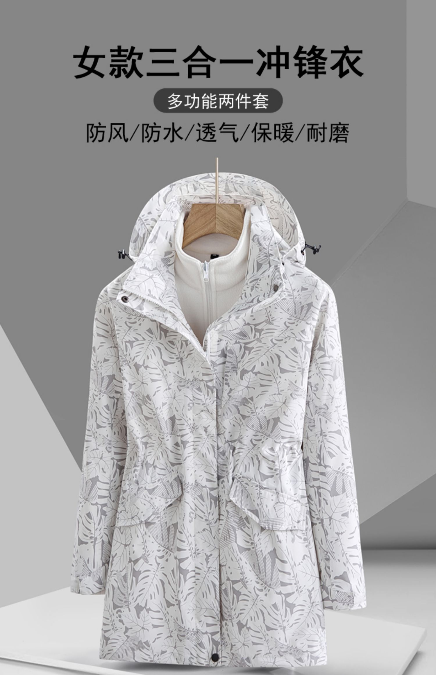 啄木鳥迷彩沖鋒衣女中長款2025冬季新款三合一可拆卸兩件套戶外潮